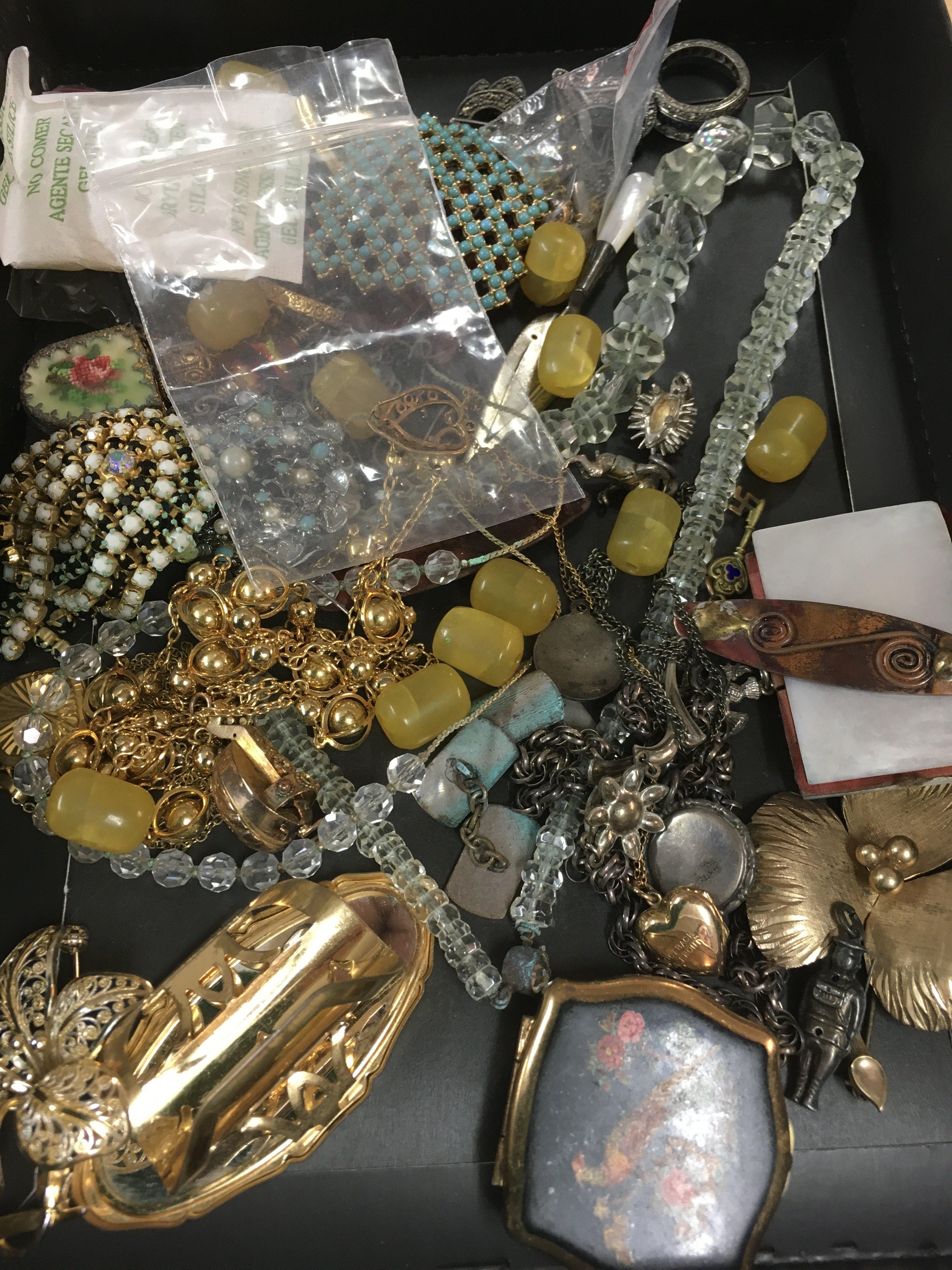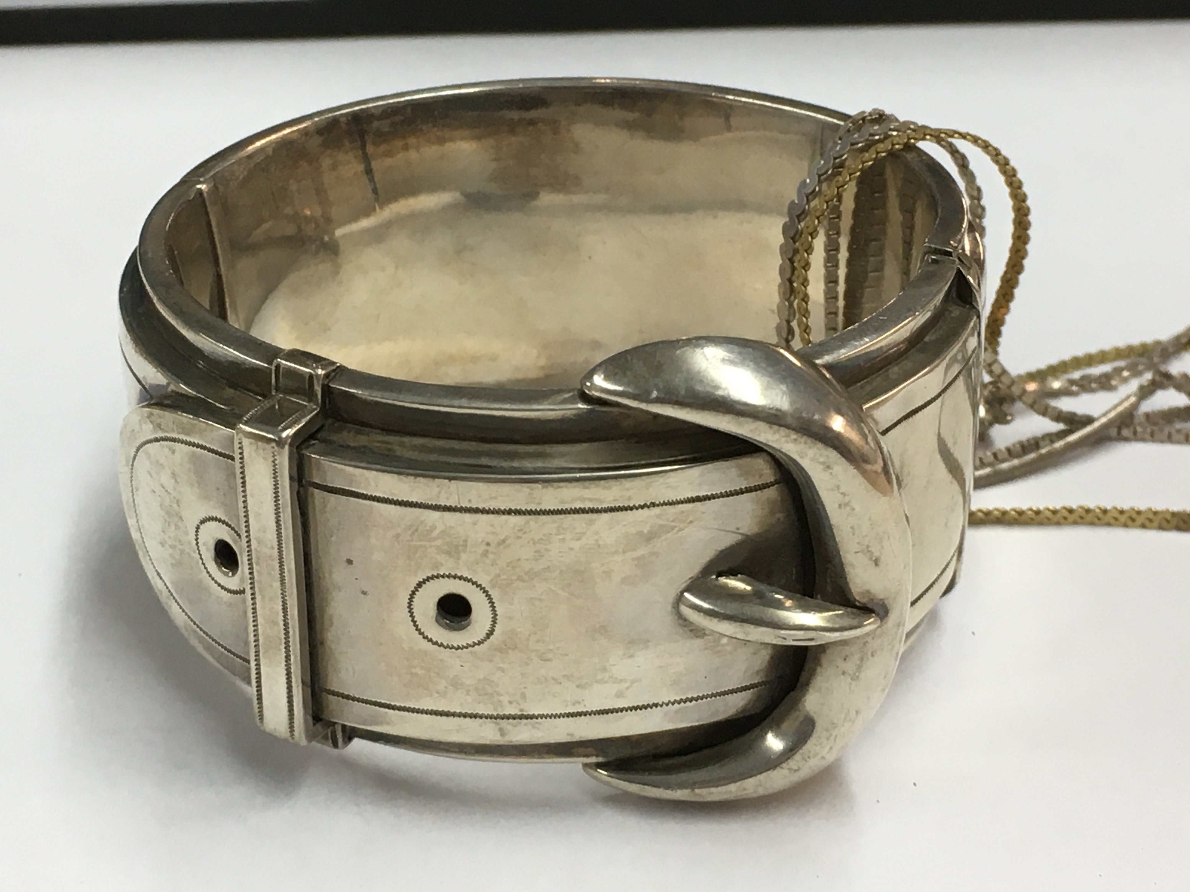 A buckle bangle- unmarked silver together with various other costume jewellery
