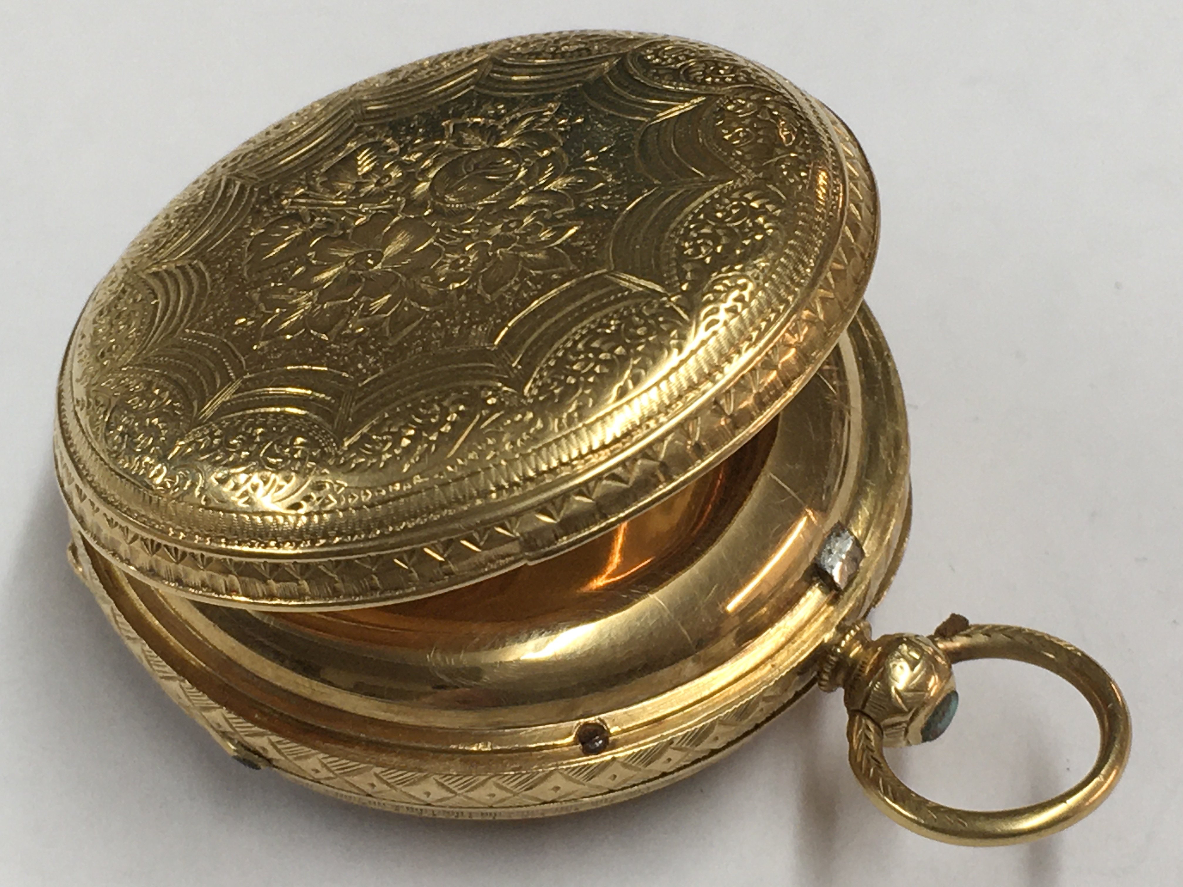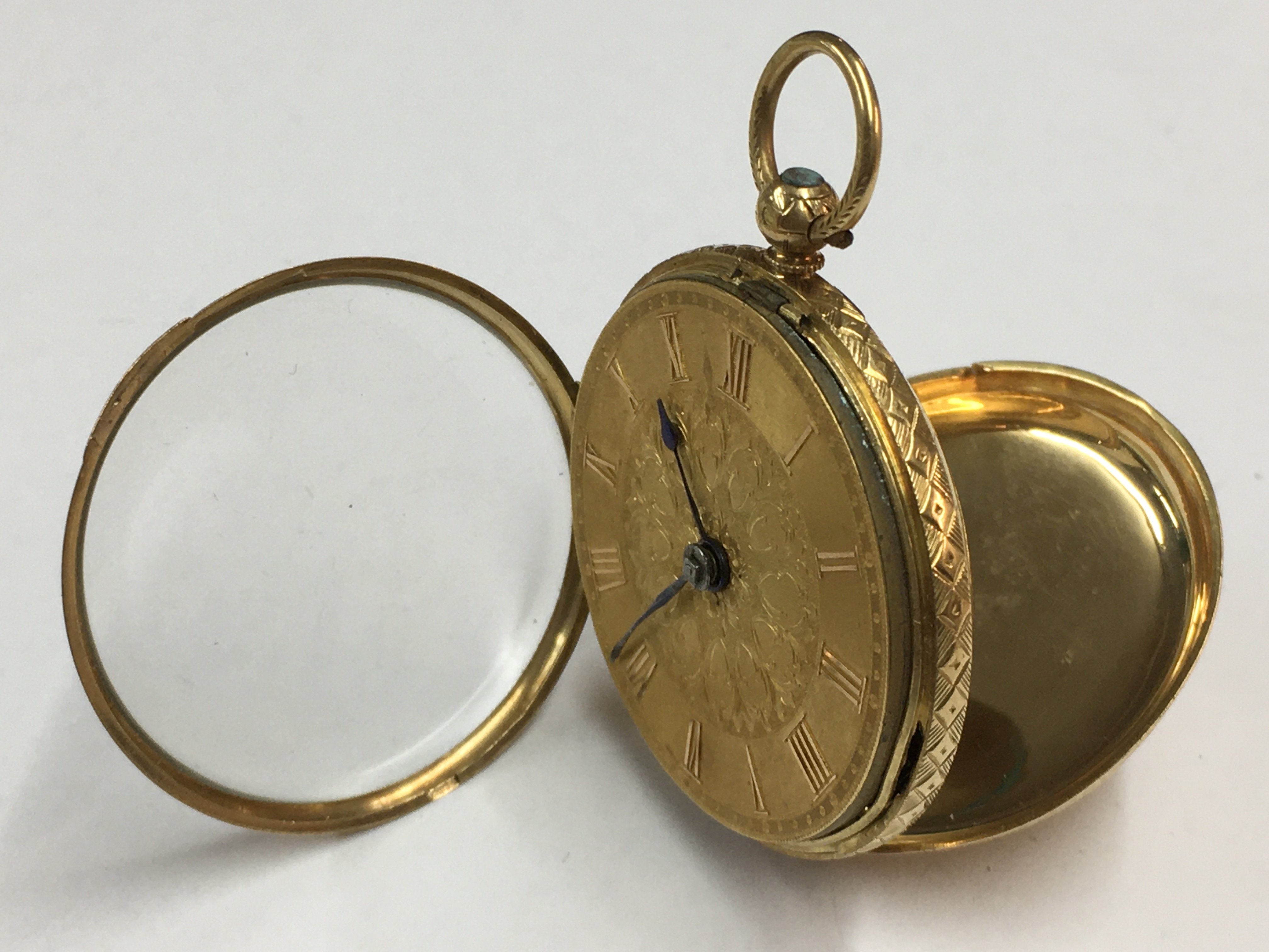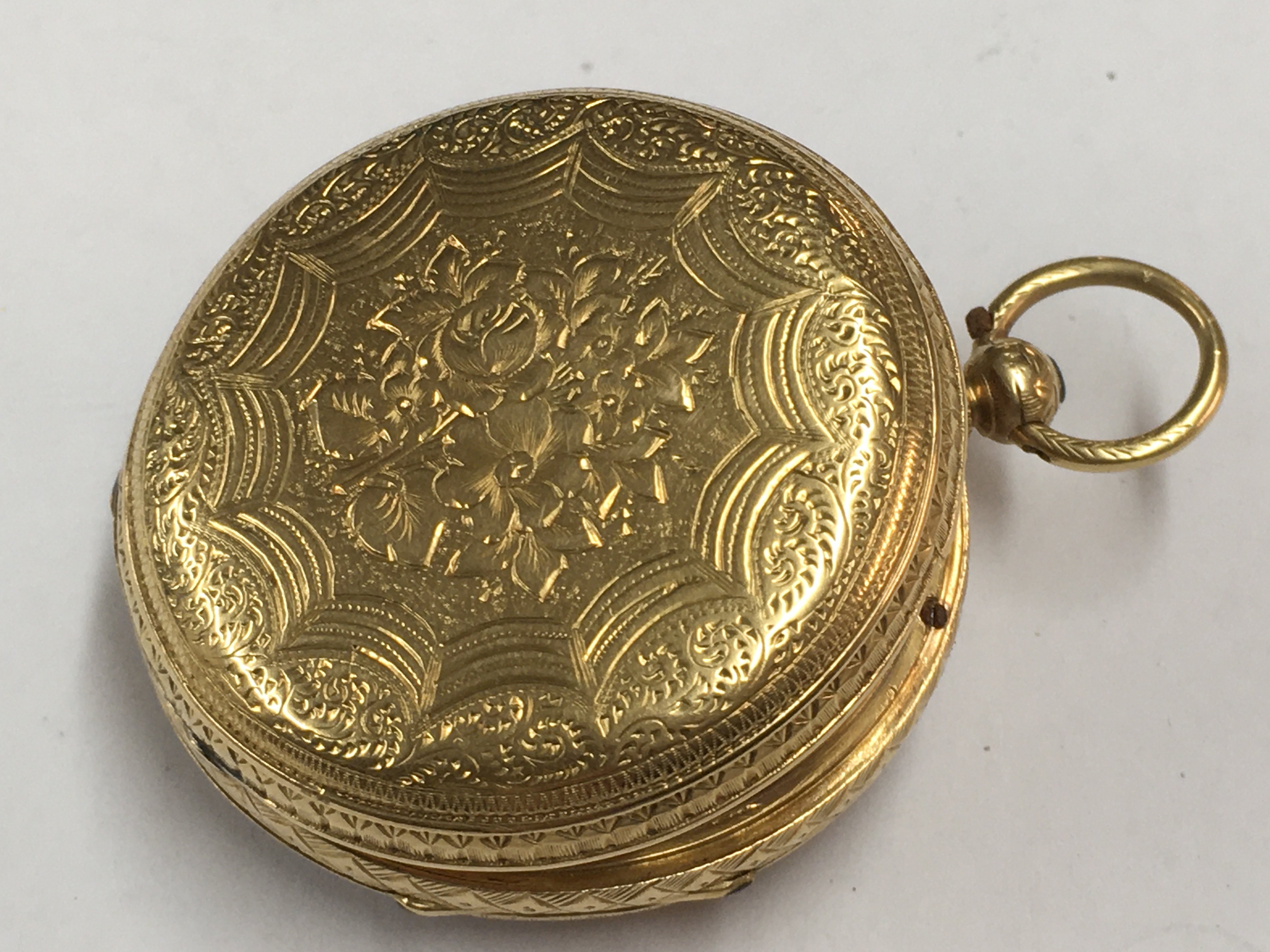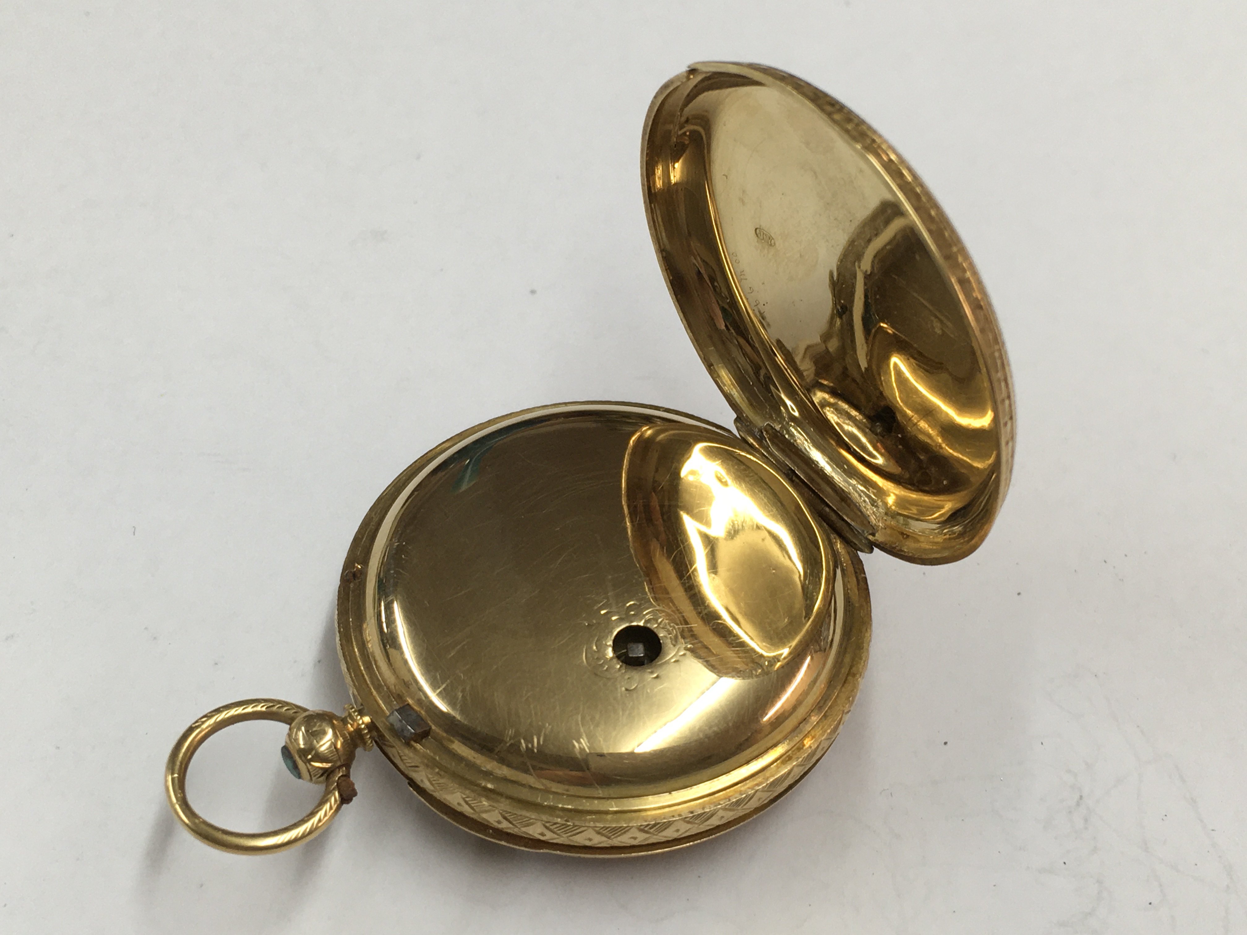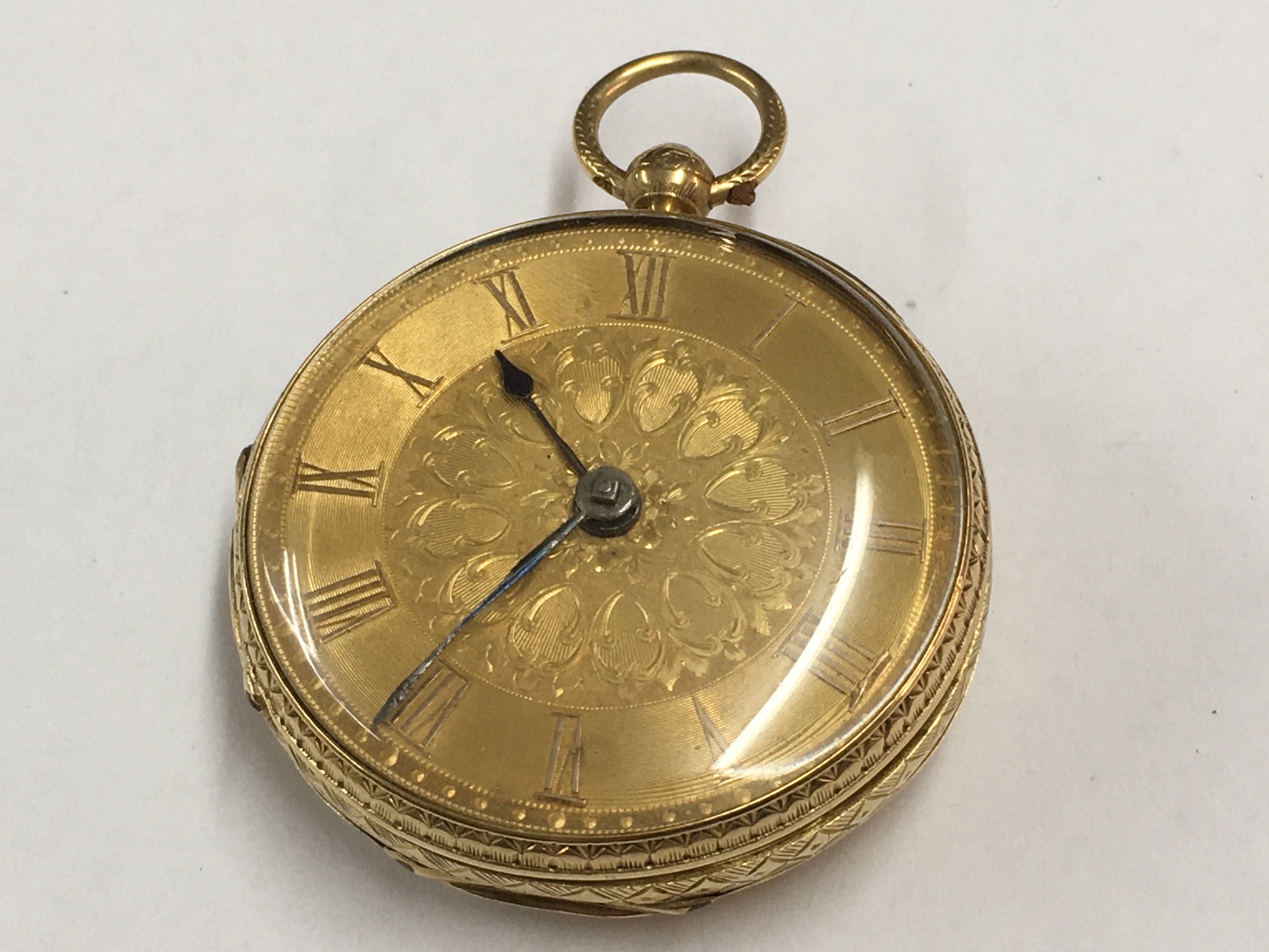 A 18ct gold key wind pocket watch, the gilded dial with Roman numerals