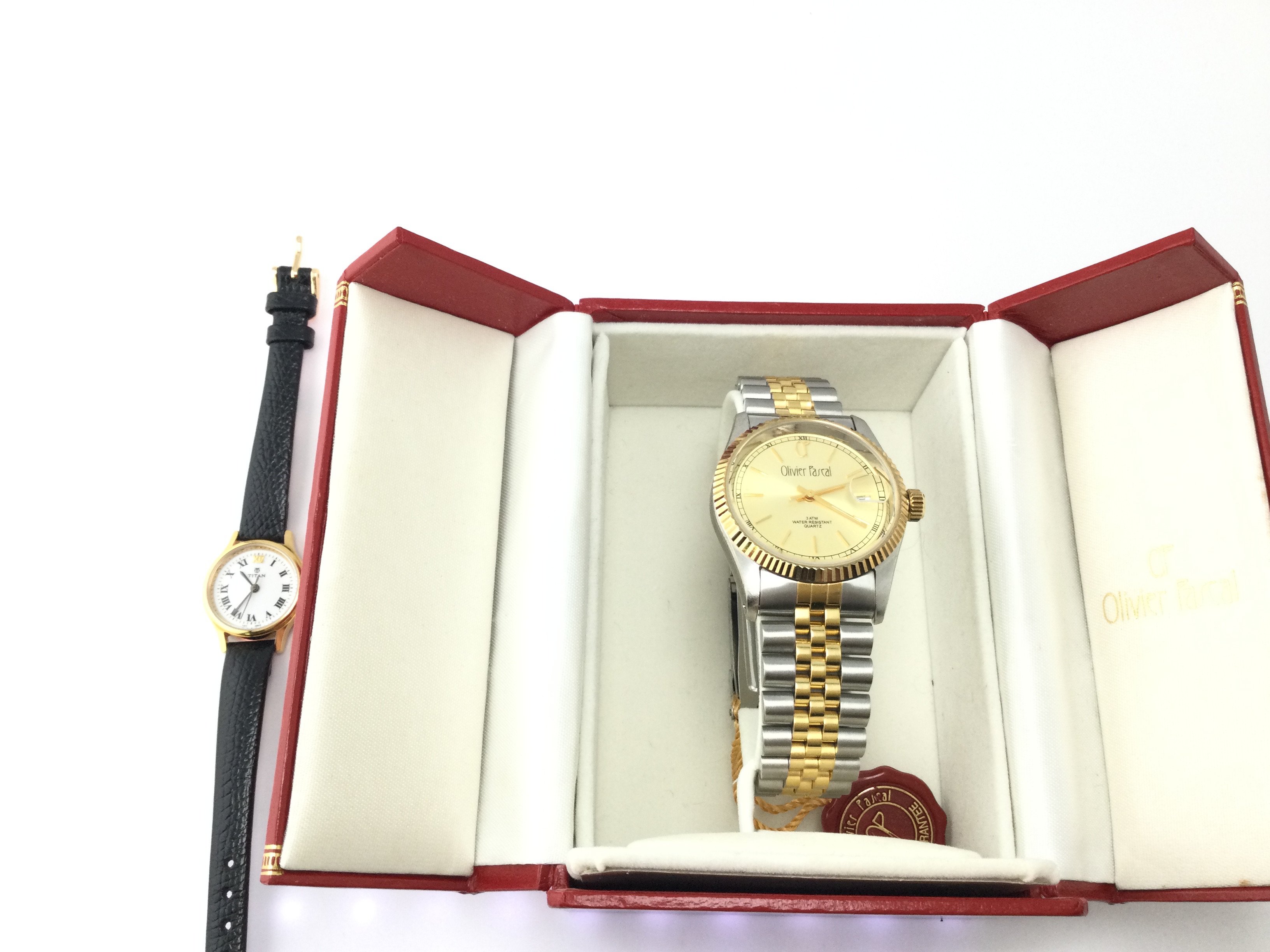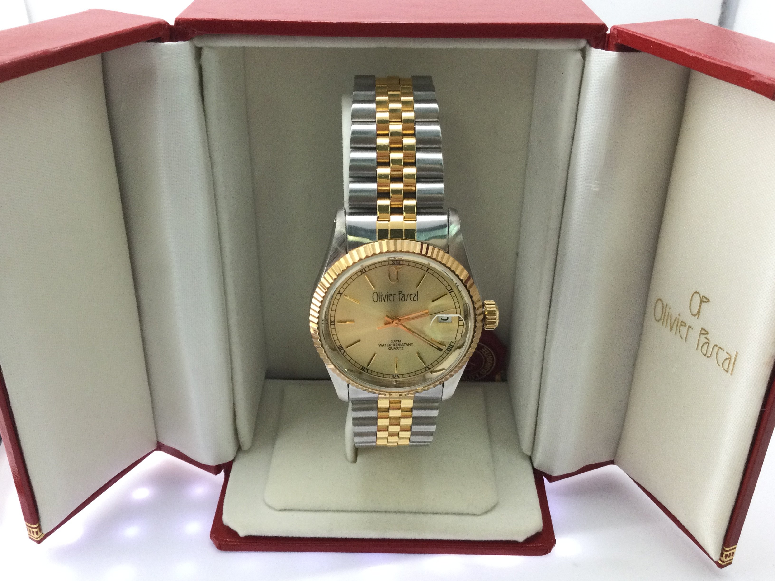 An Olivier Pascal gents watch with box and a ladies watch. Postage B
