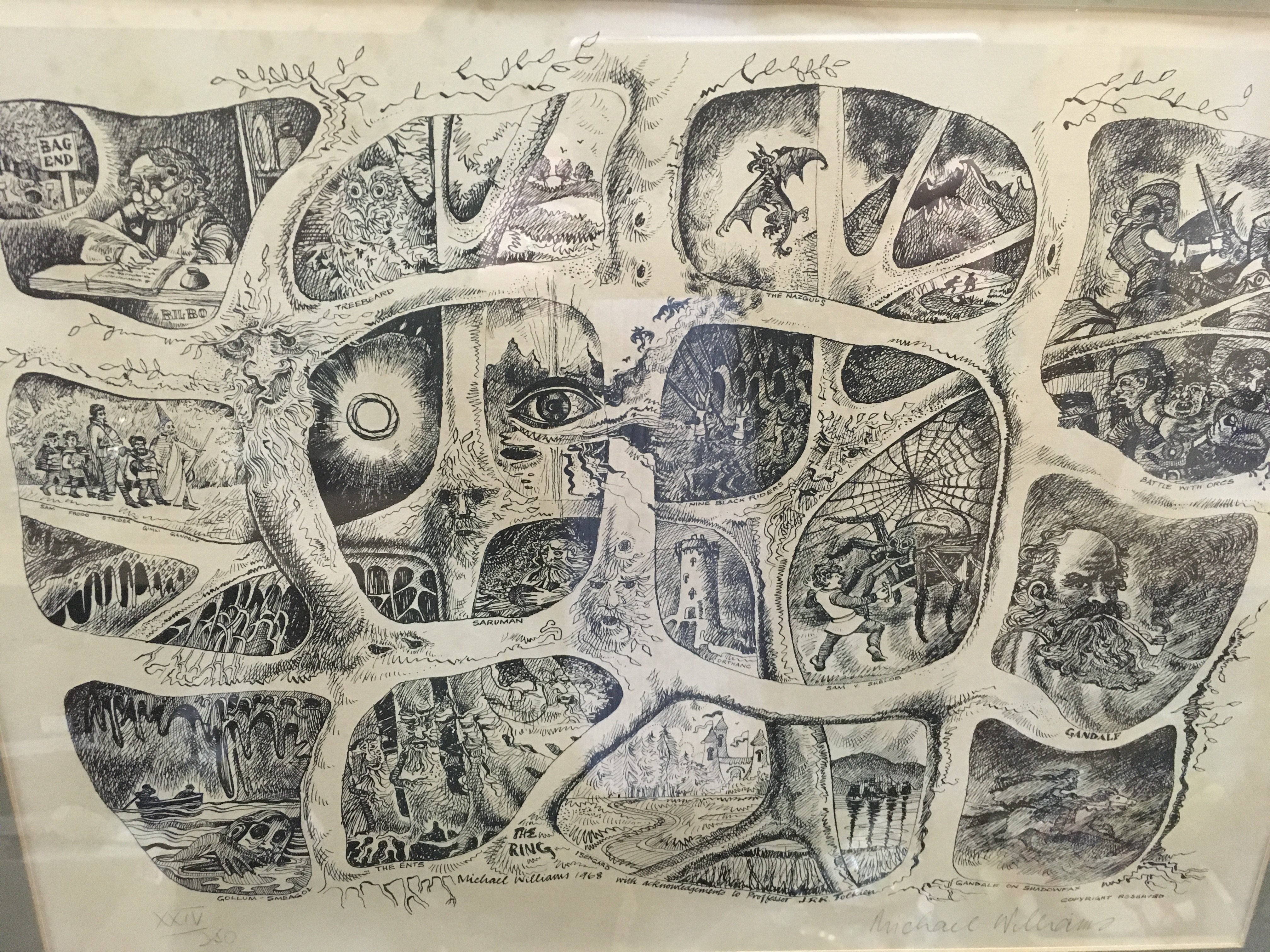 Two framed prints- Lord of the Rings and Alice in Wonderland