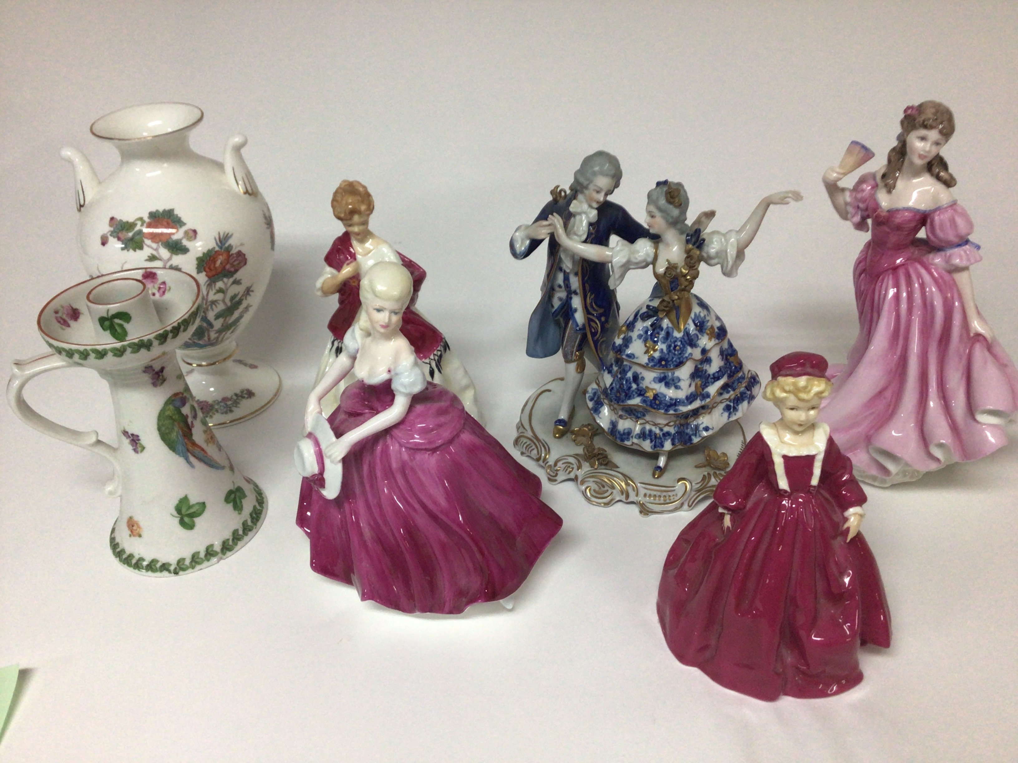 A collection of Coalport Doulton Worcester and other Porcelain figures and ceramics no obvious damage