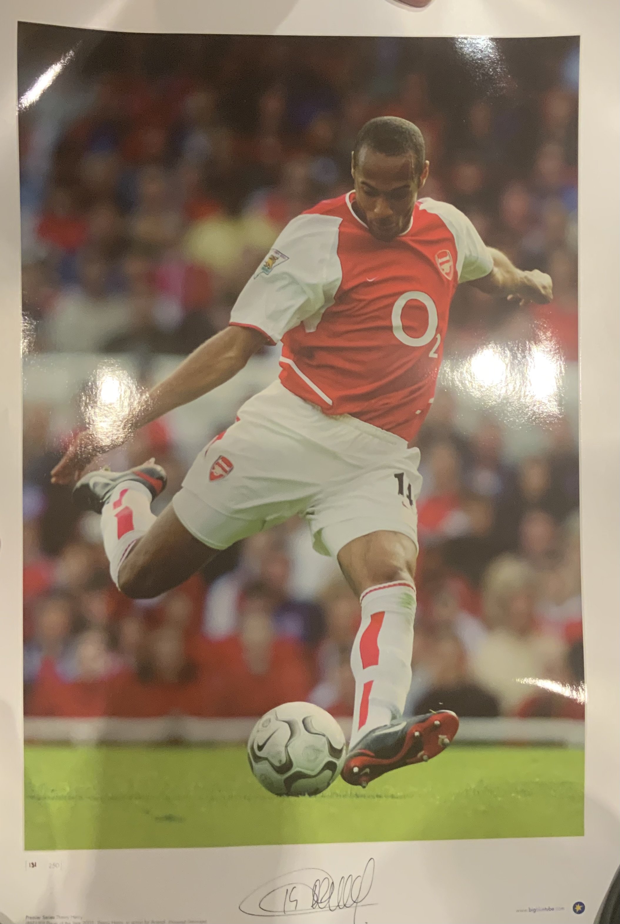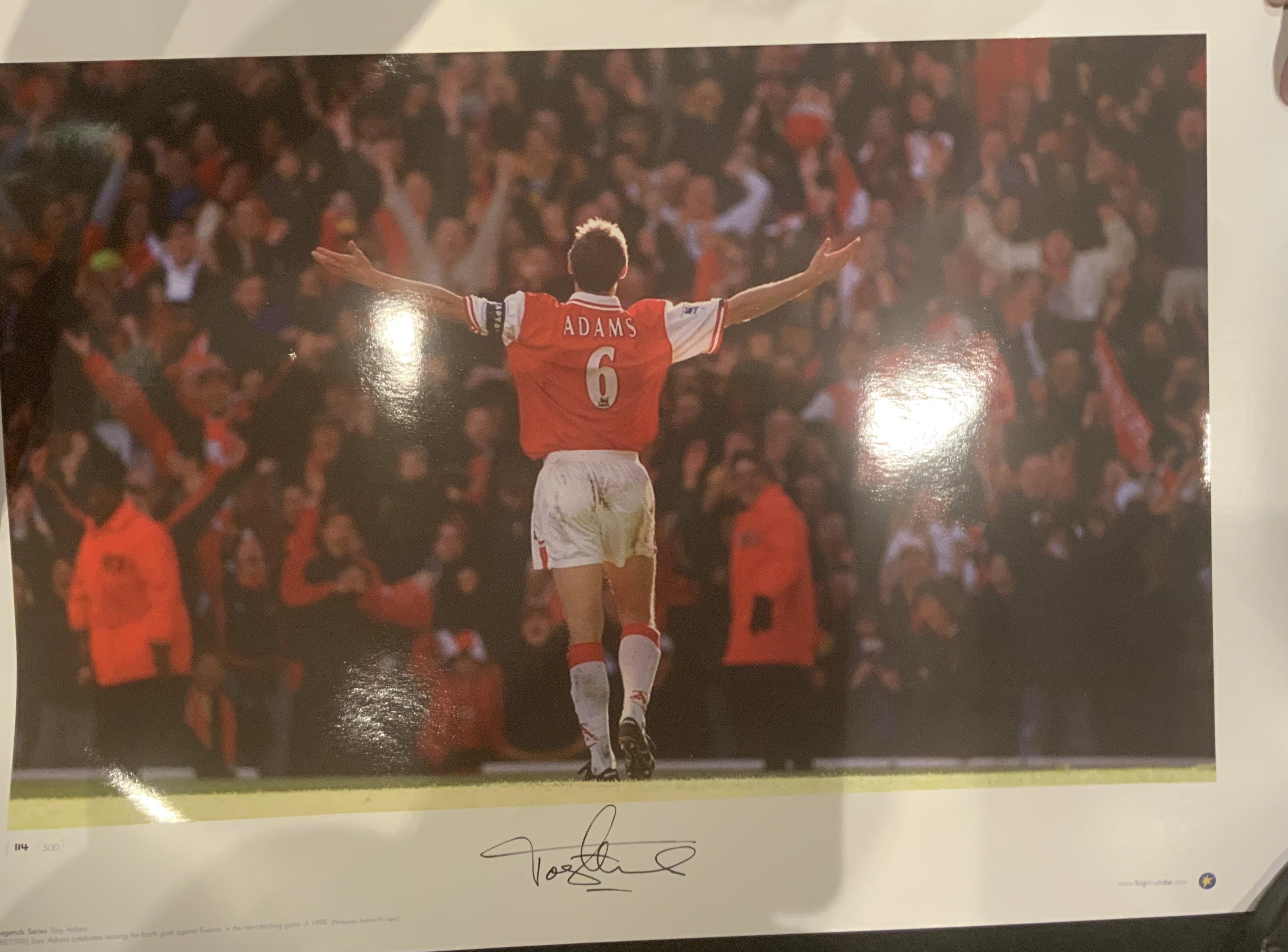 Arsenal Big Blue Tube Signed Football Prints: All measuring nearly 23 x 17 inches in excellent condition produced by the famous company with genuine autographs on prints of which the run was limited to 500. Includes Adams Viera Wright Henry Pires and a superb picture of Michael Thomas scoring the famous goal Liverpool. Additionally a print signed by Merson not produced by Big Blue Tube. (7)