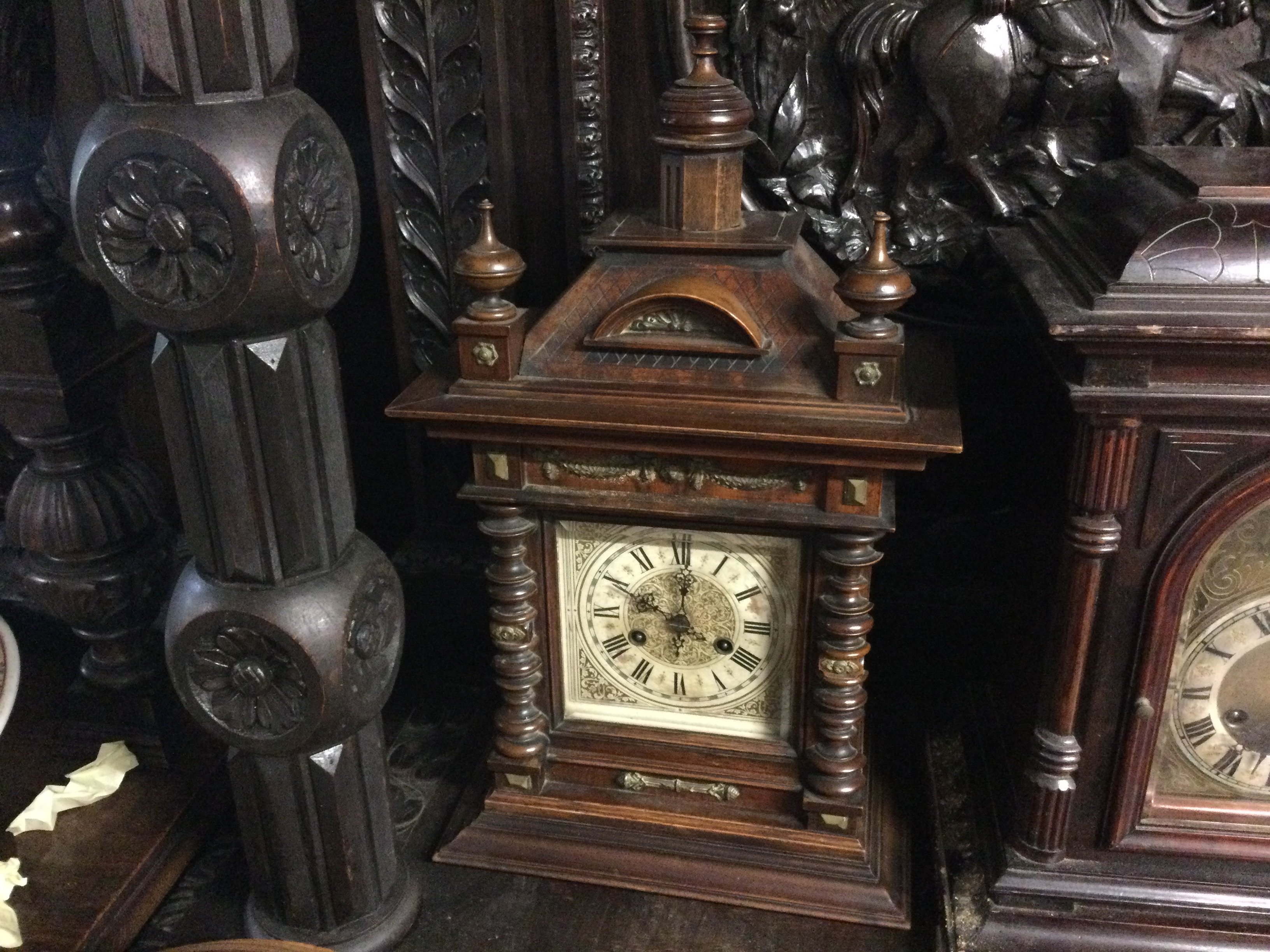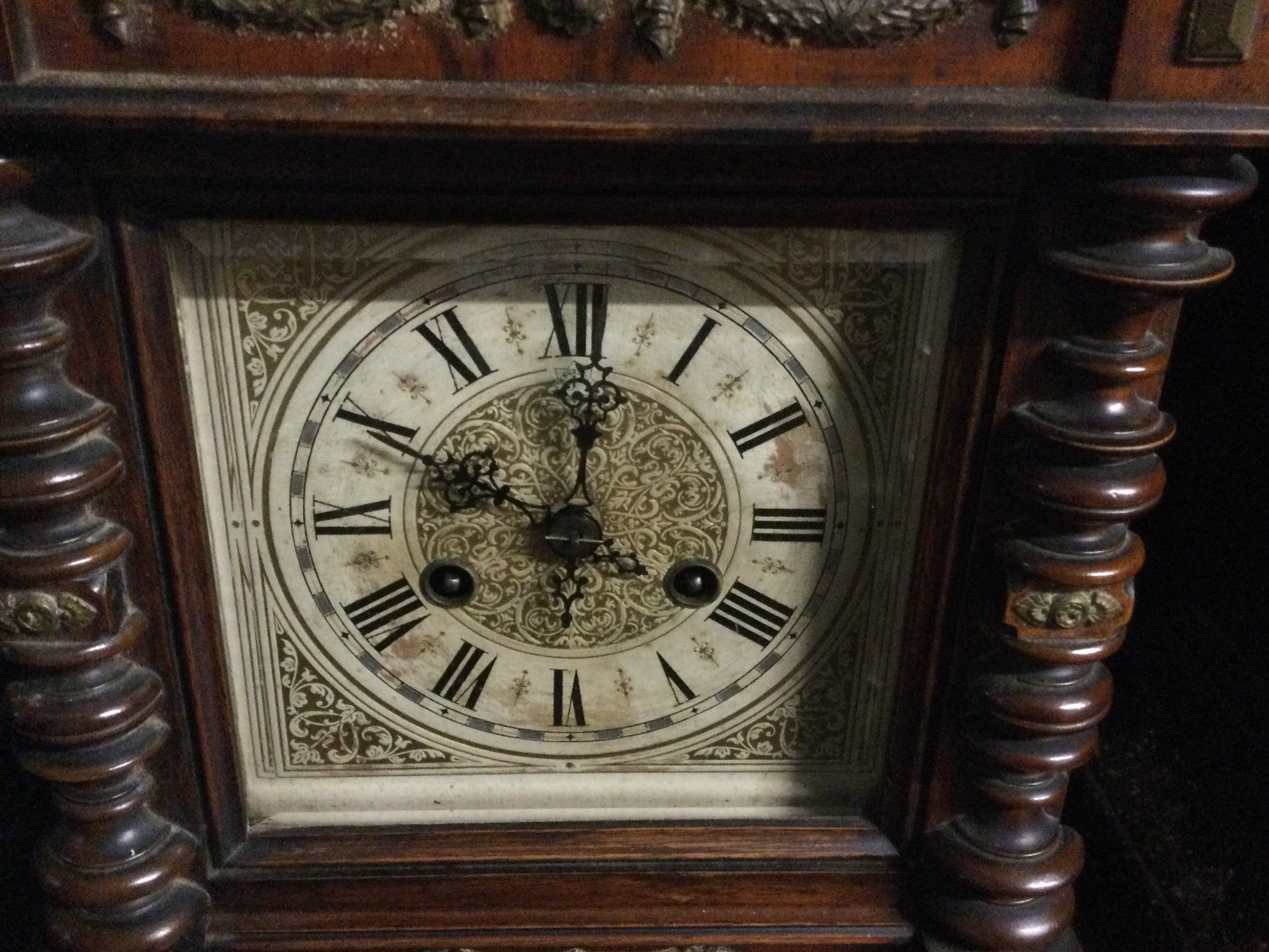 Victorian pillar eight day mahogany cased mantle clock.