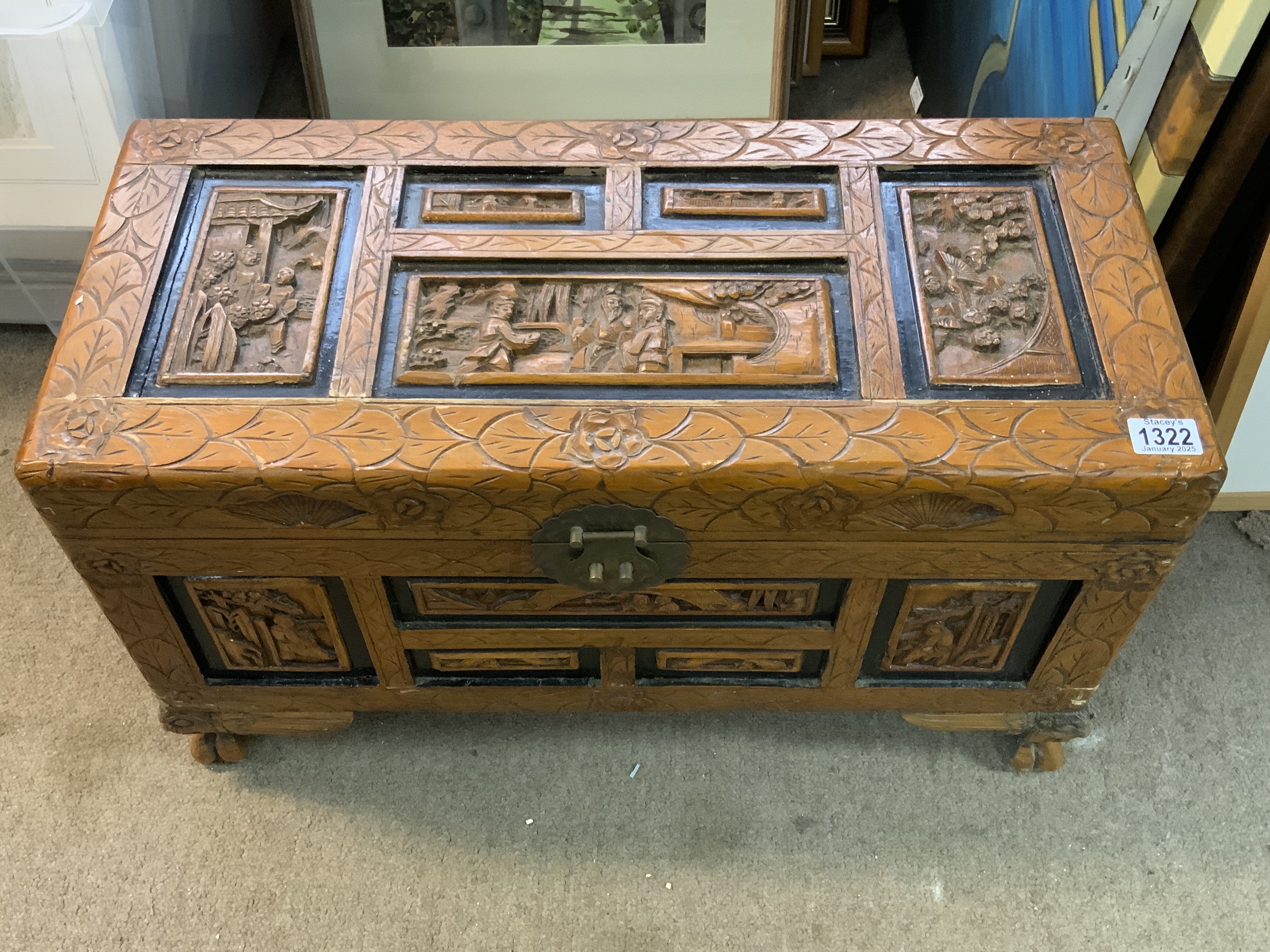 A small oriental 1920s Camphor wood chest. 69cm x 31cm x 40cm