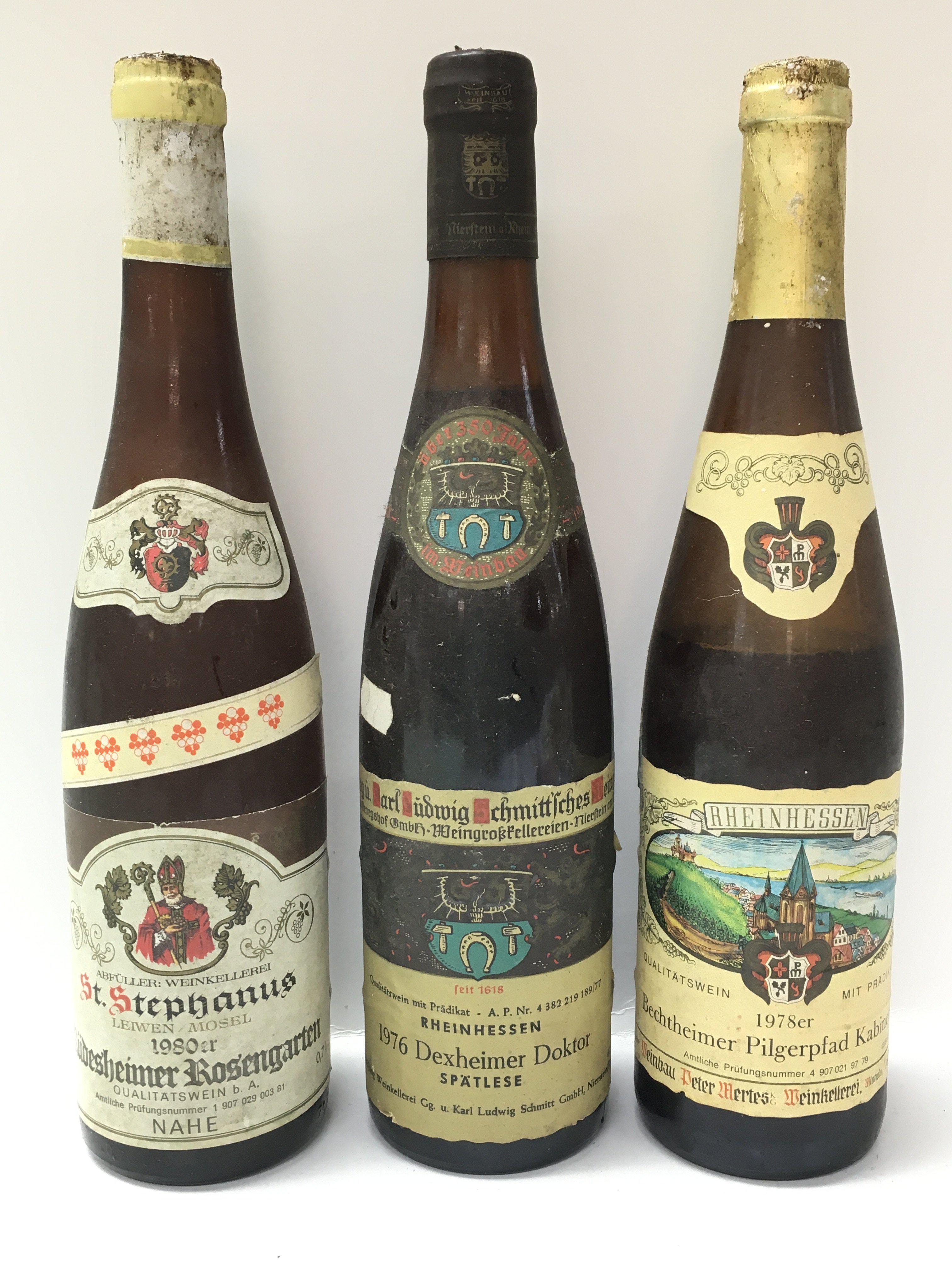 A collection of vintage German wine including a bottle of 1980 St Stephanus Rudesheimer Rosengarten, 1976 Deheimer Doktor Spatlese, 1978 Bechtheimer Pilgerpfad Kabinett. This lot cannot be posted