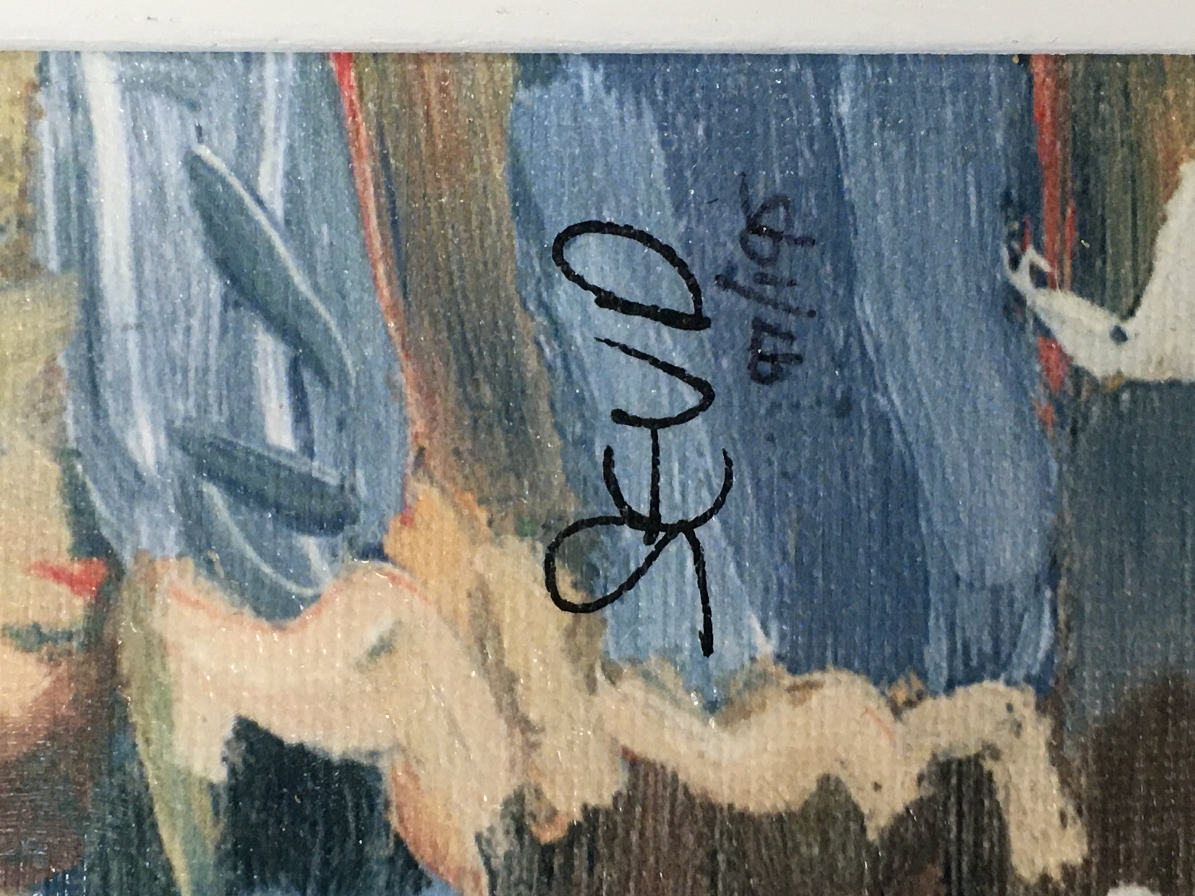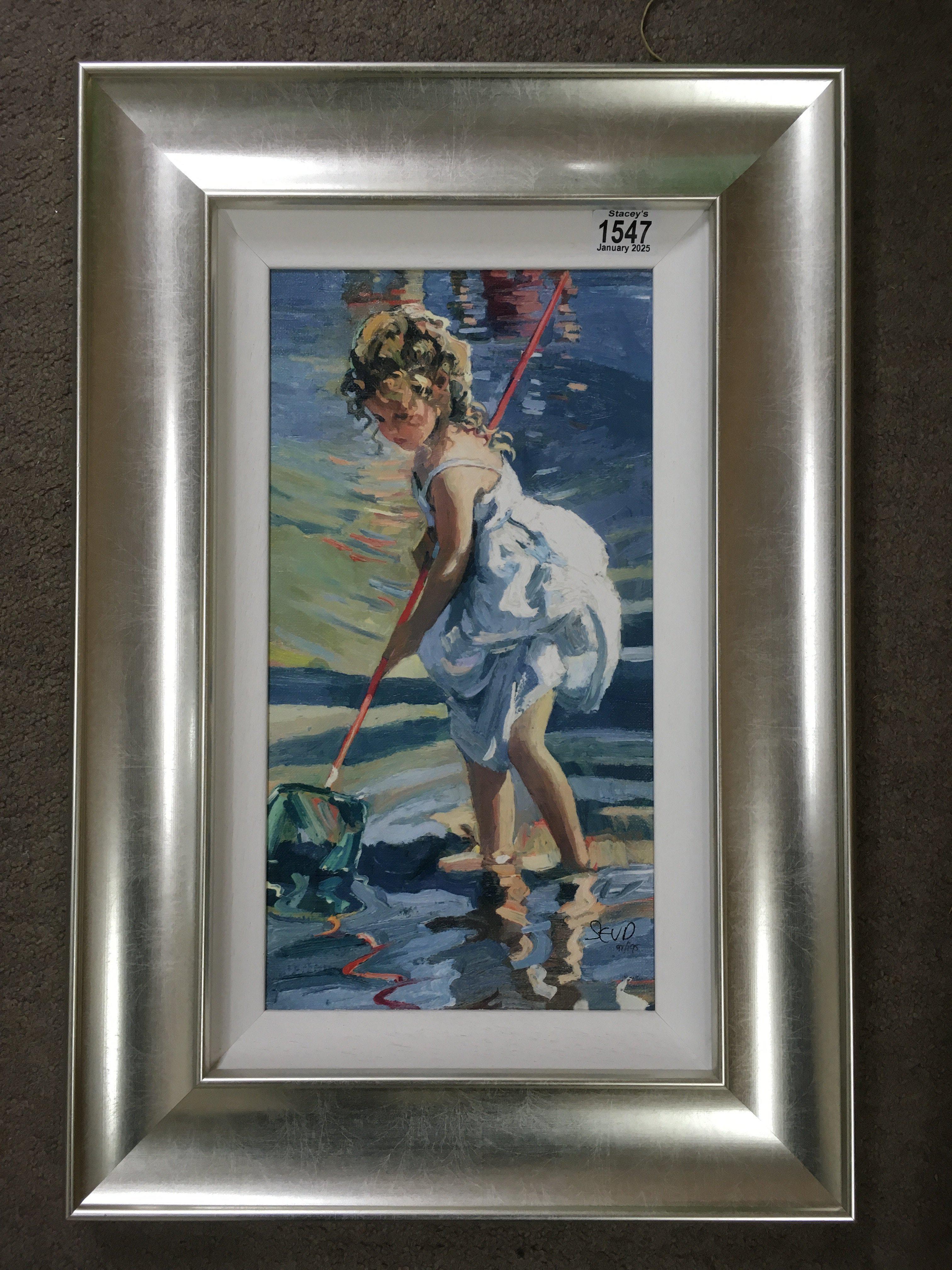 A silver framed limited edition 97/195 print depicting girl paddling with net, by Sheree Valentine Daines