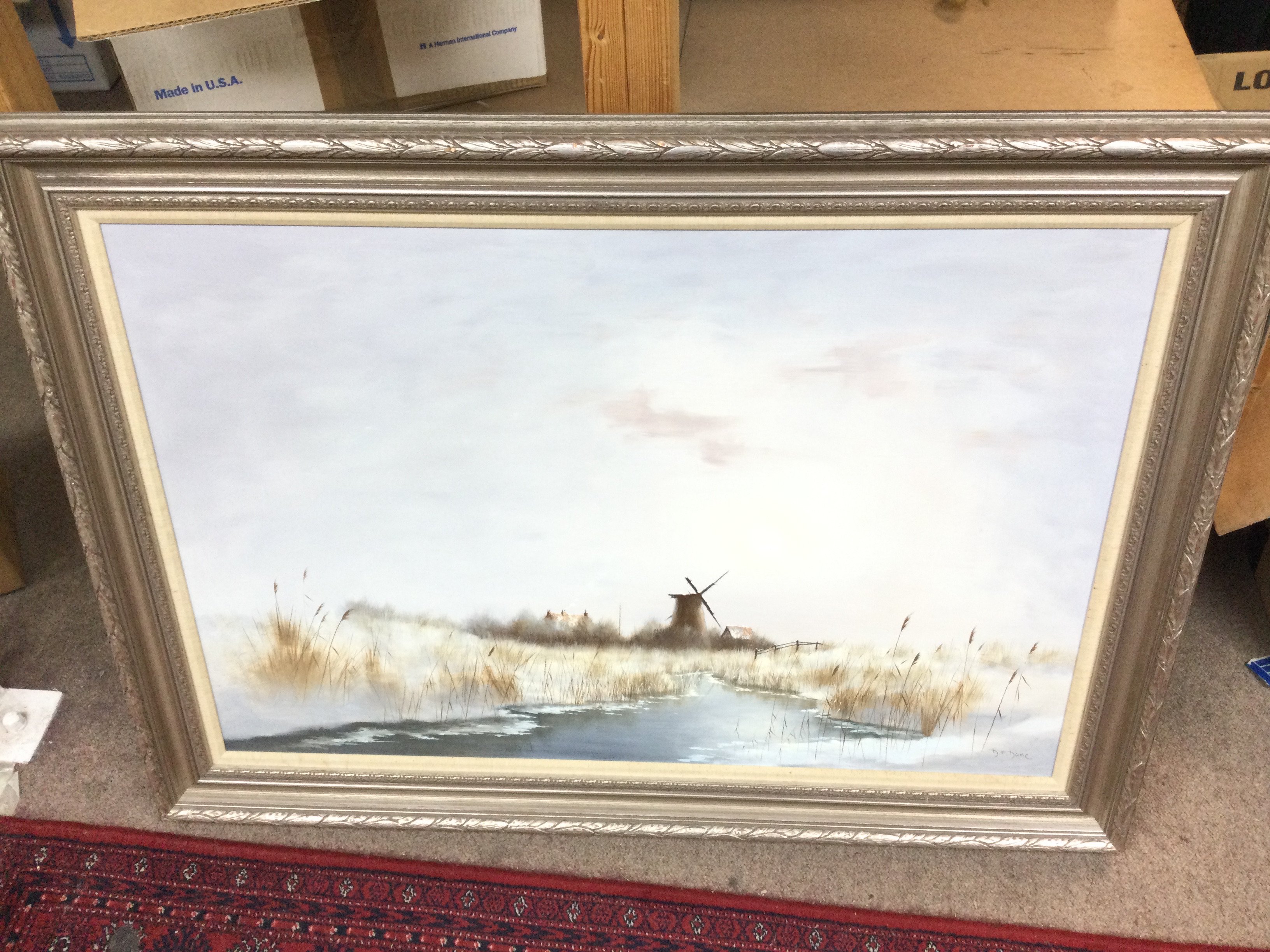 A framed 20th century oil on canvas painting by David F. Dane of a winter rural scene. Dimensions 108x78cm approximately