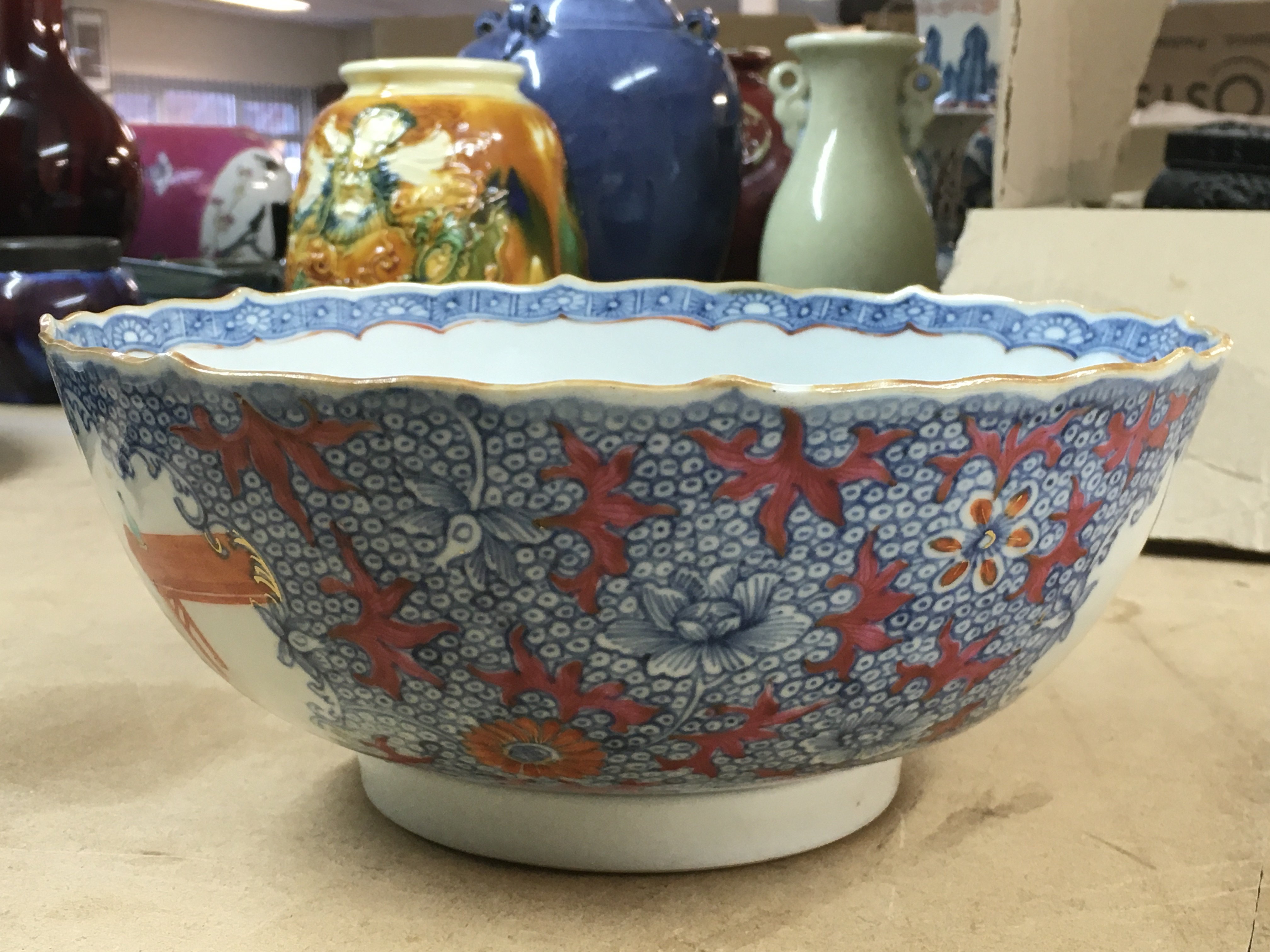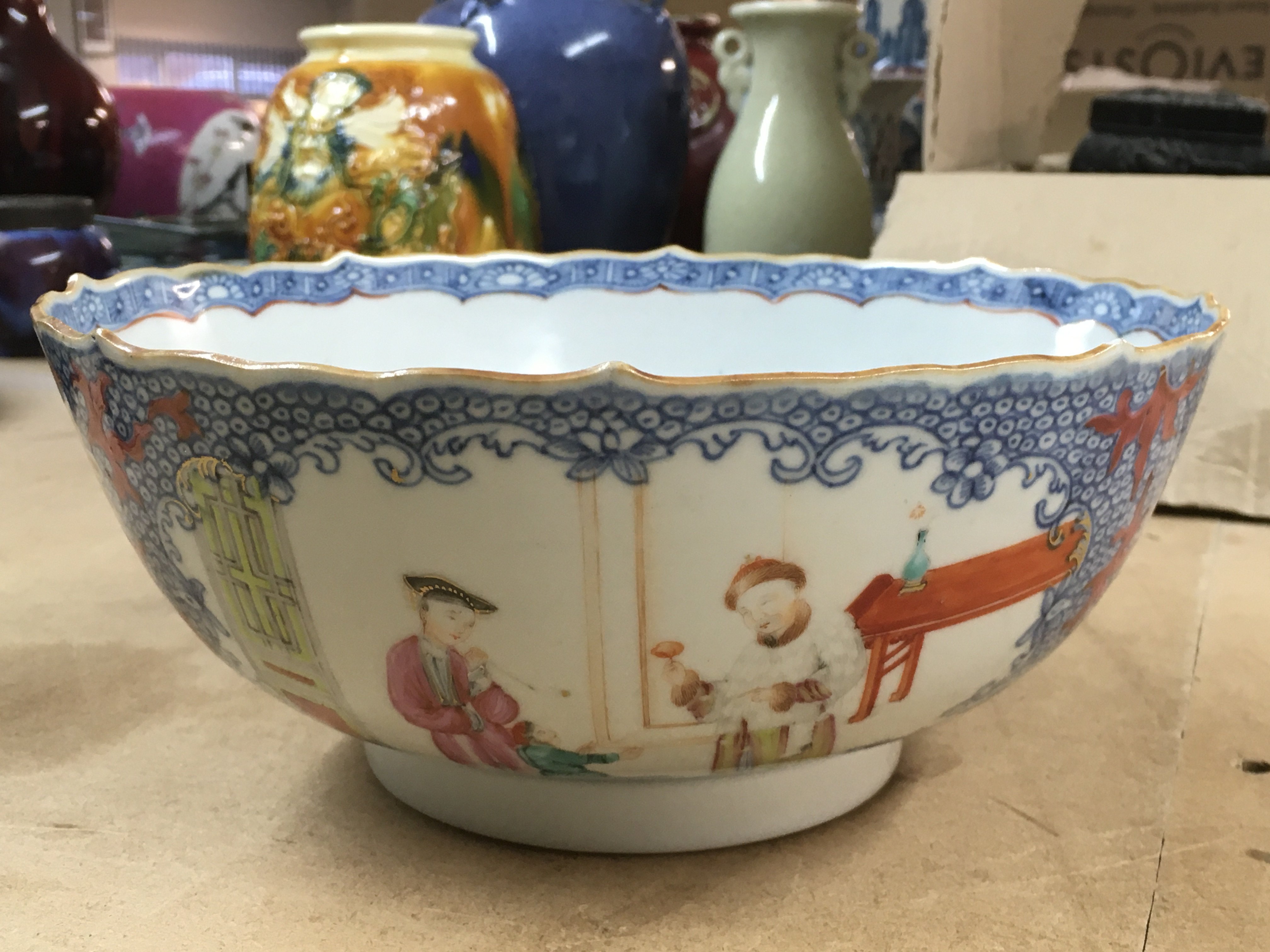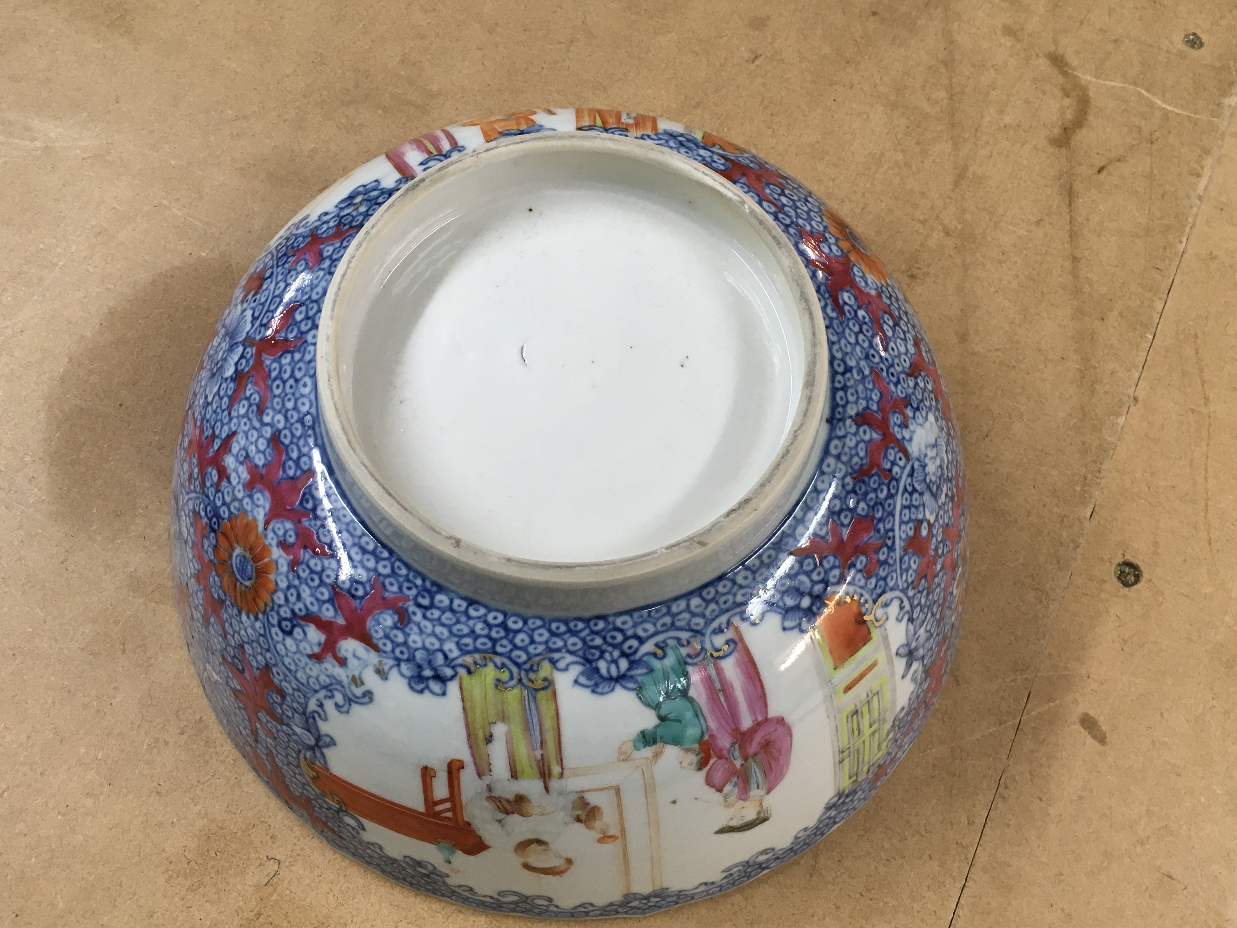 A 19th Century Chinese blue and white bowl, decorated with figures, flowers and foliage. No visible damage or restoration. 23cm across