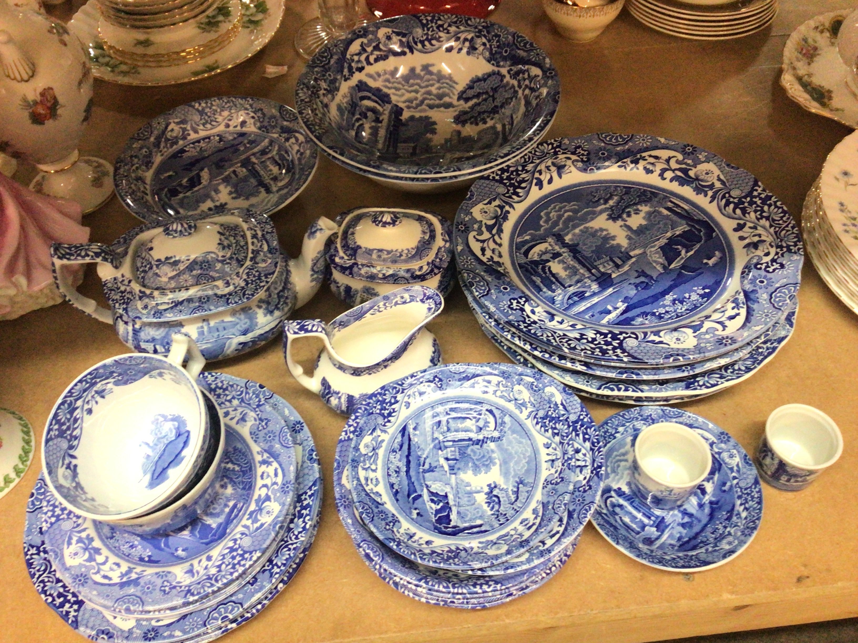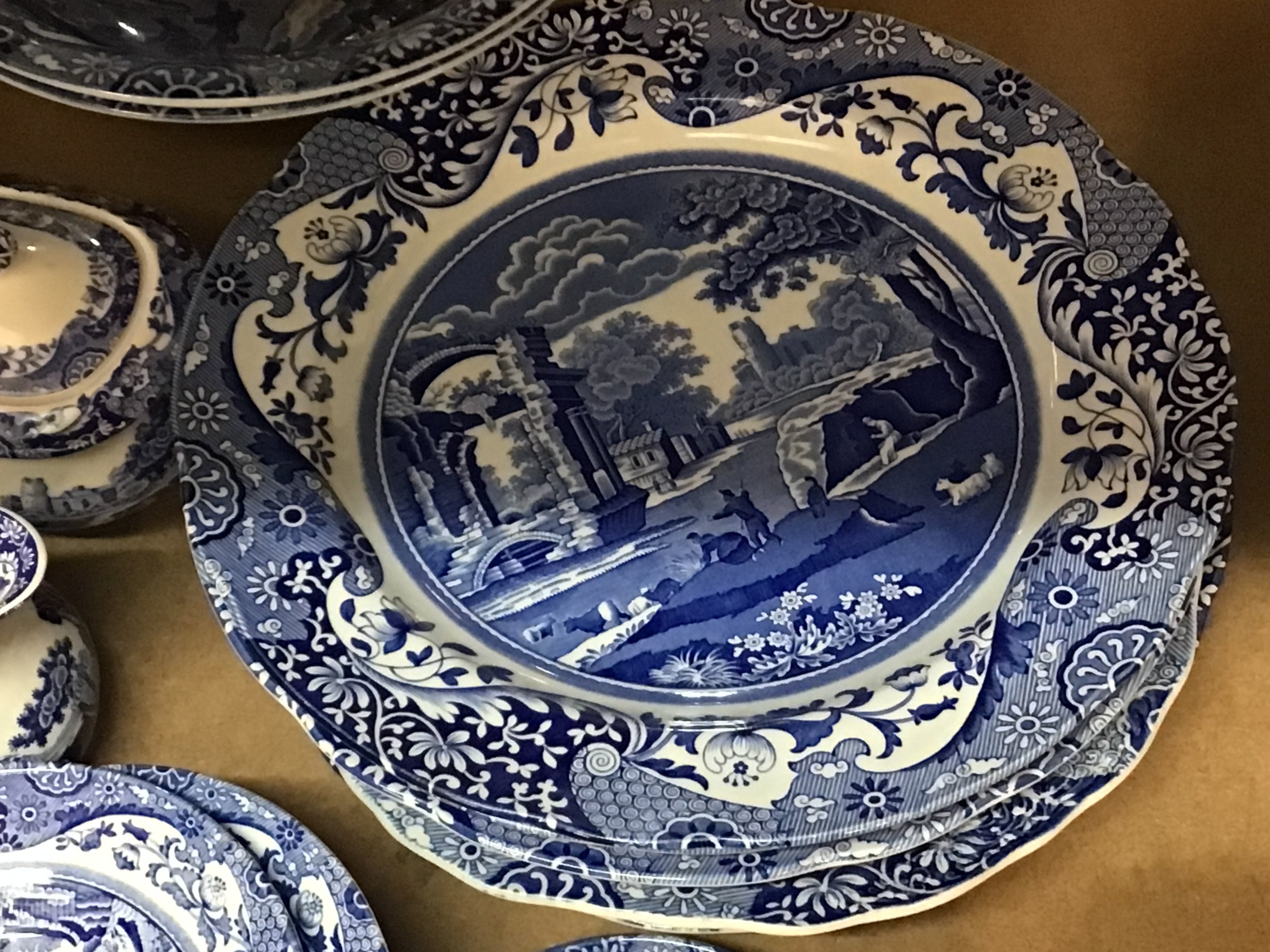 A collection of Spode Italian pattern blue and white tea and dinner ware a partset no obvious damage.