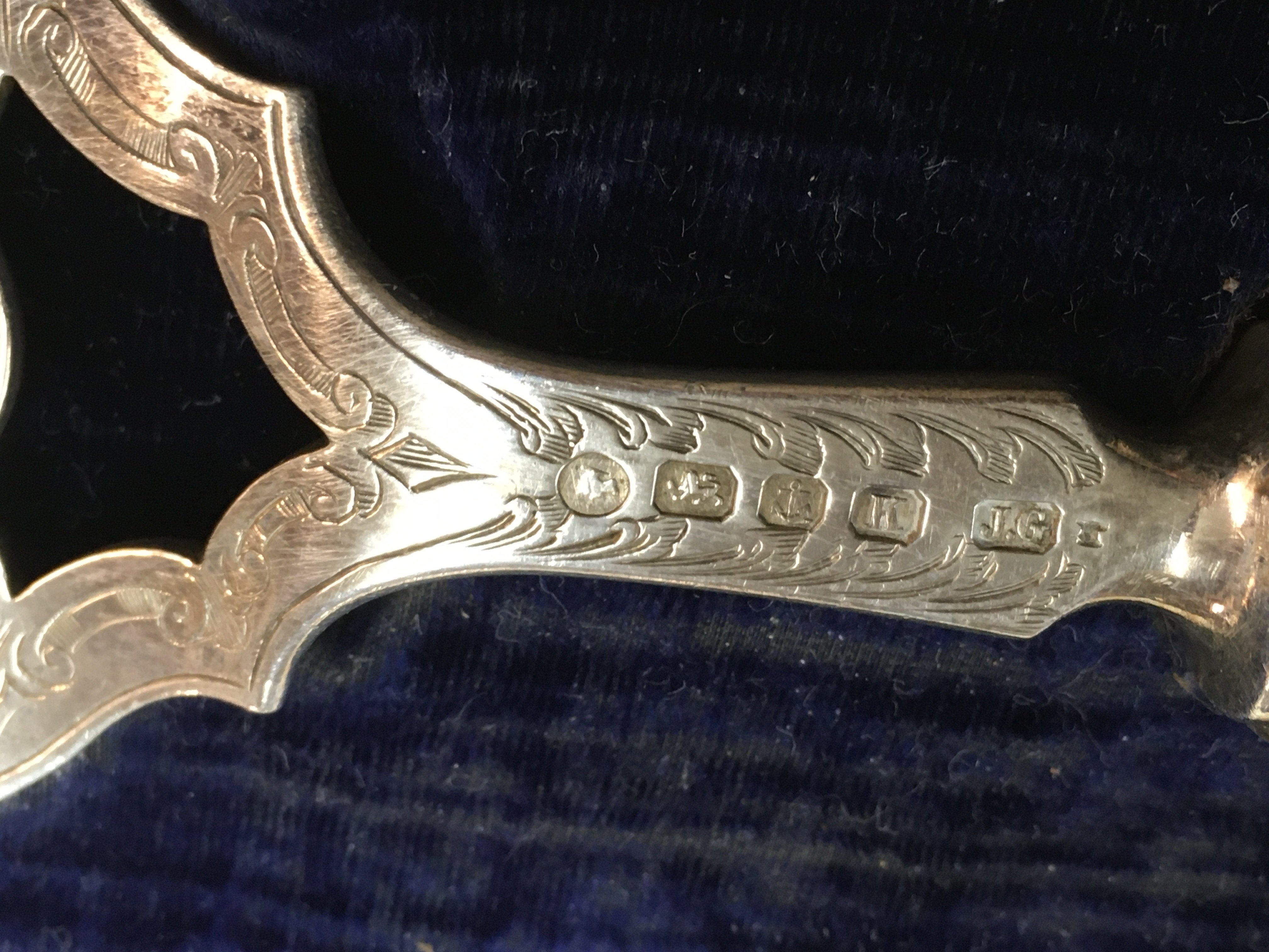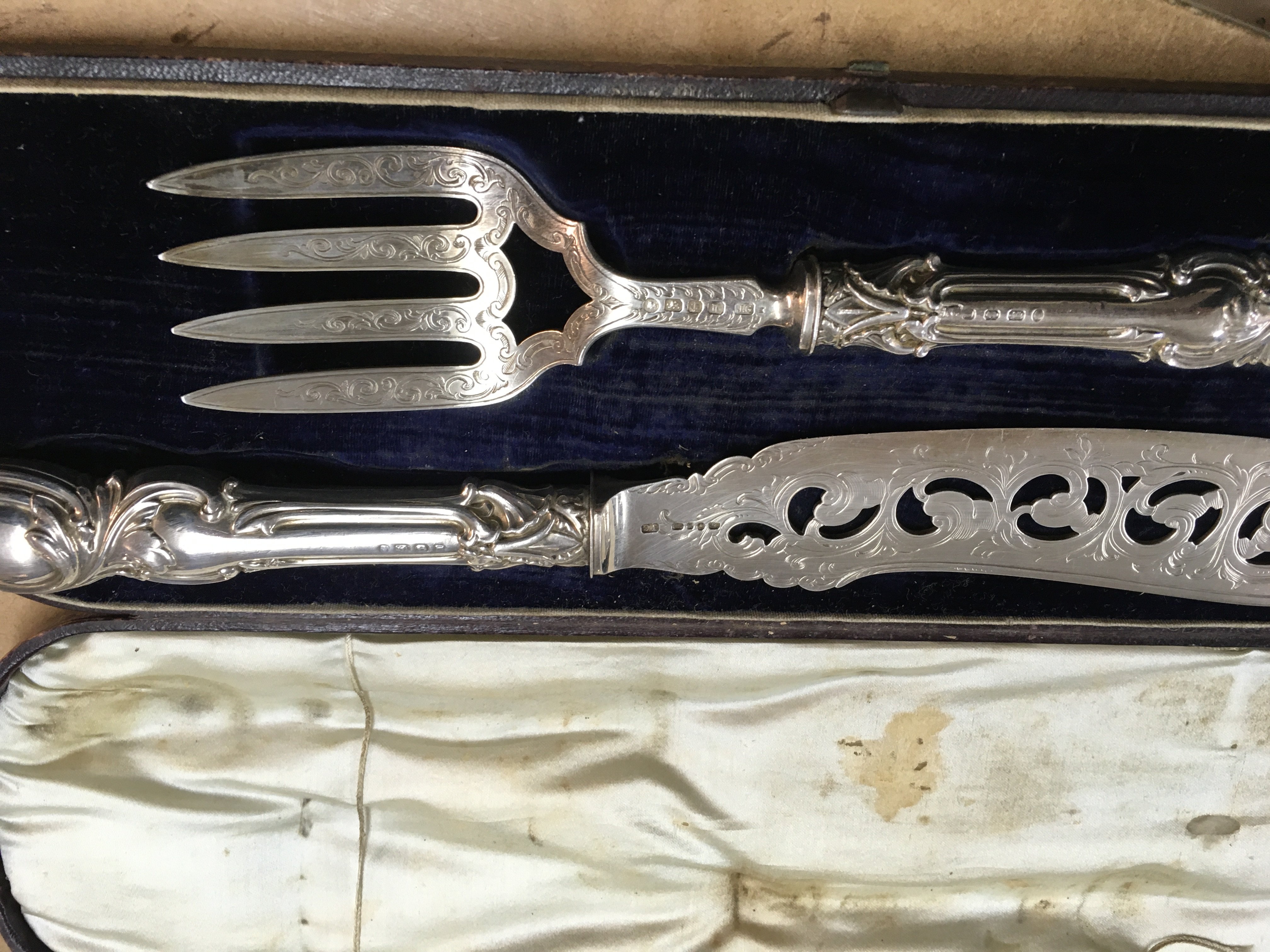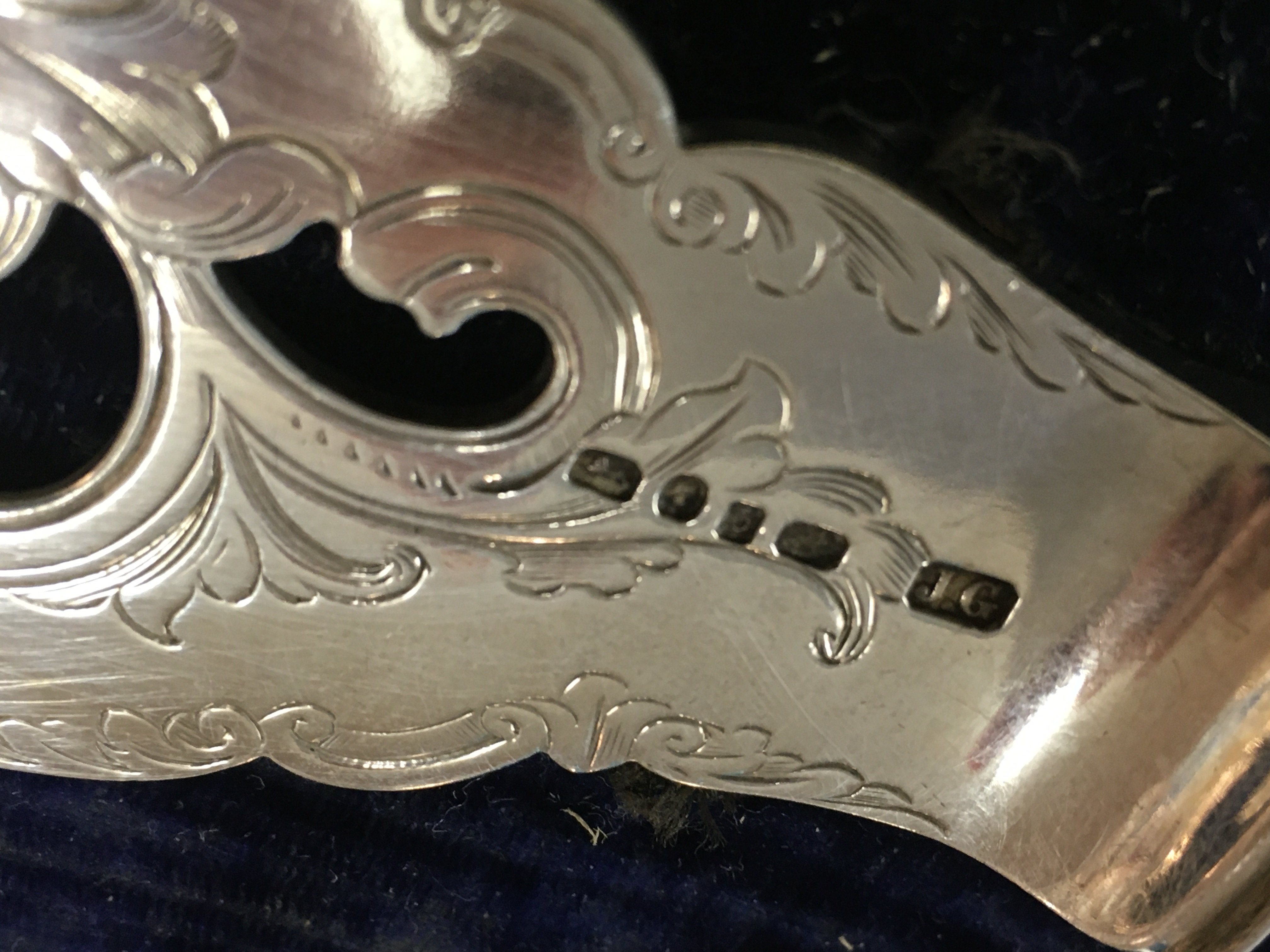 A cased pair of Victorian silver fish servers.