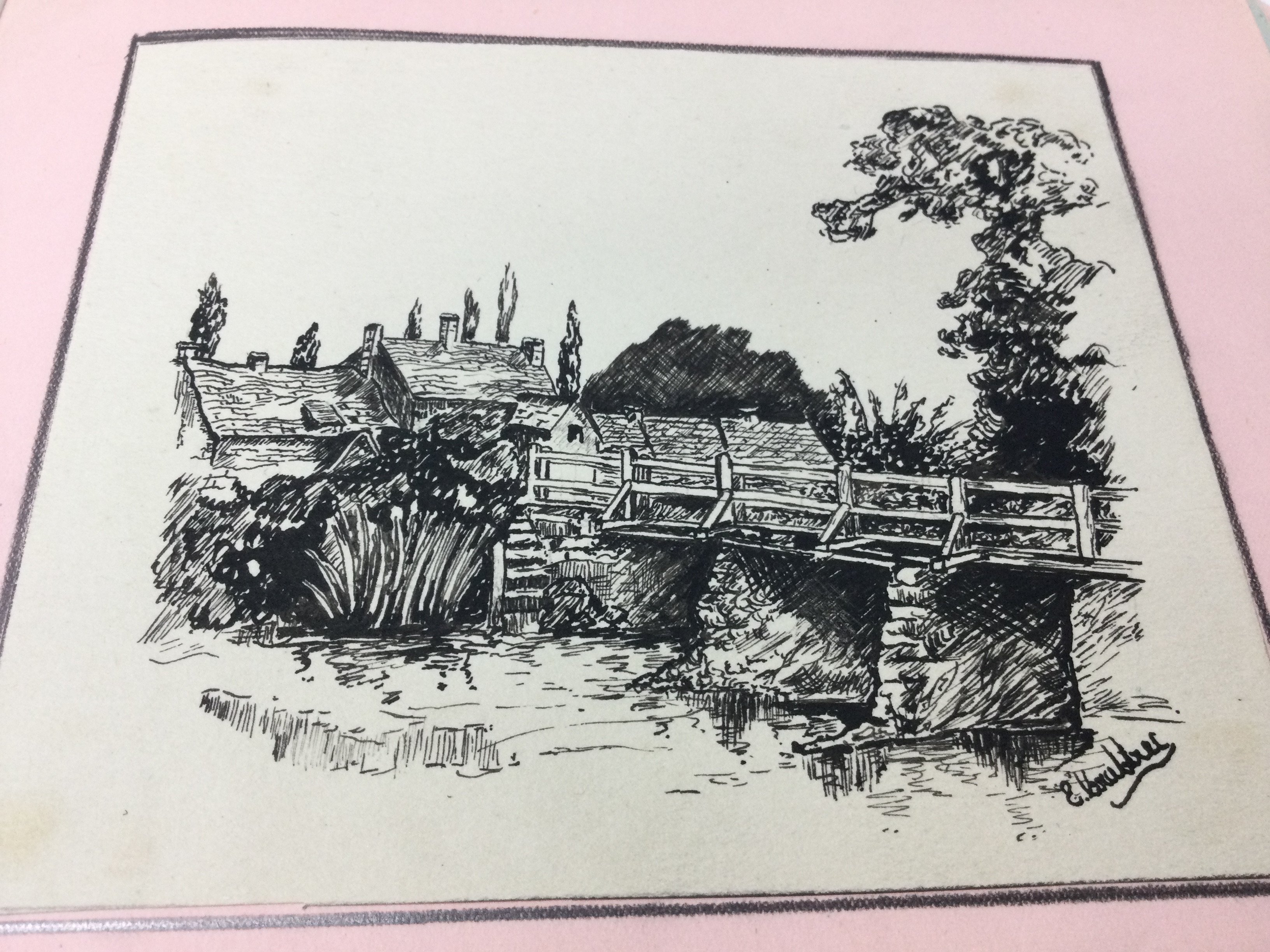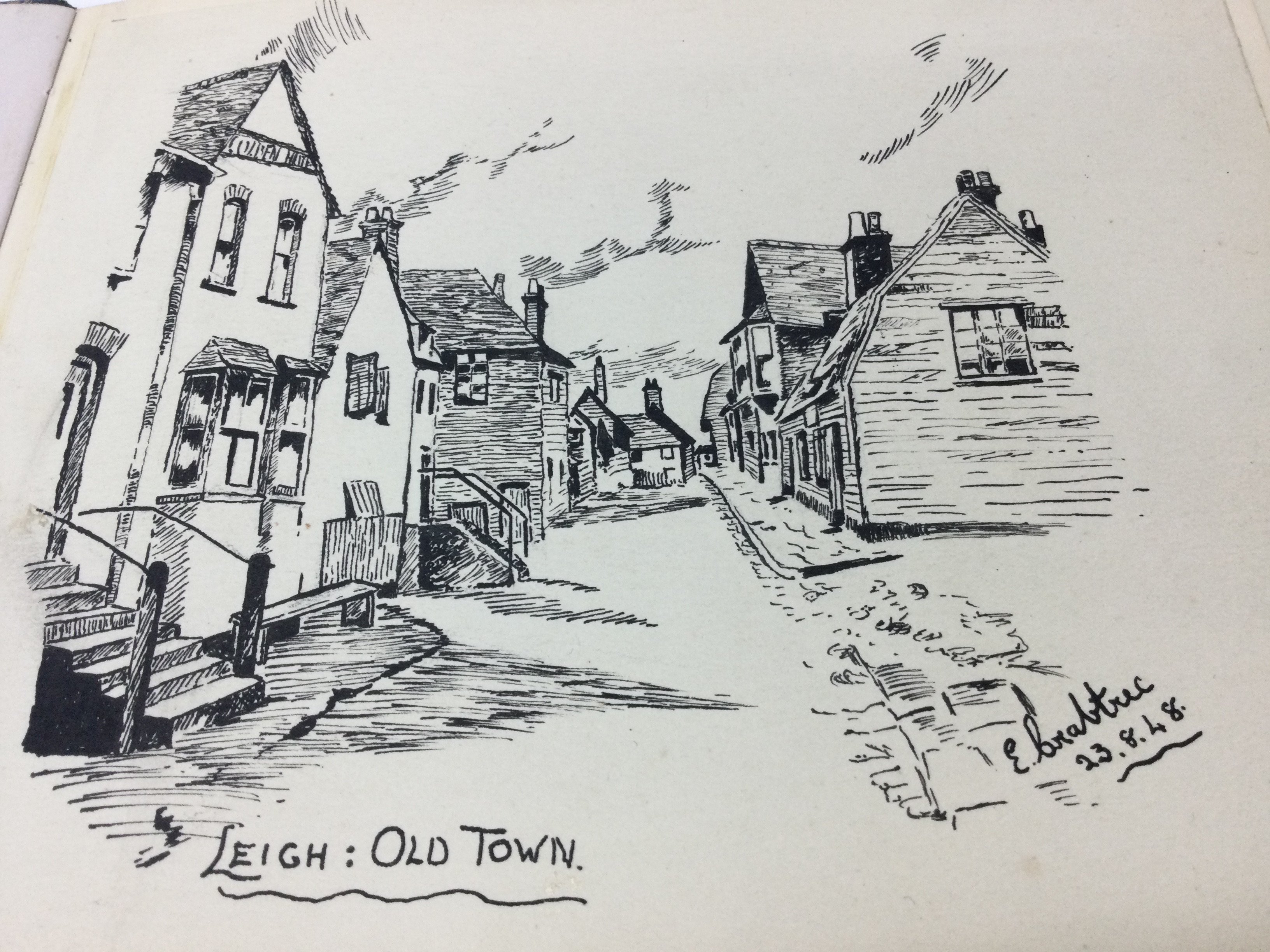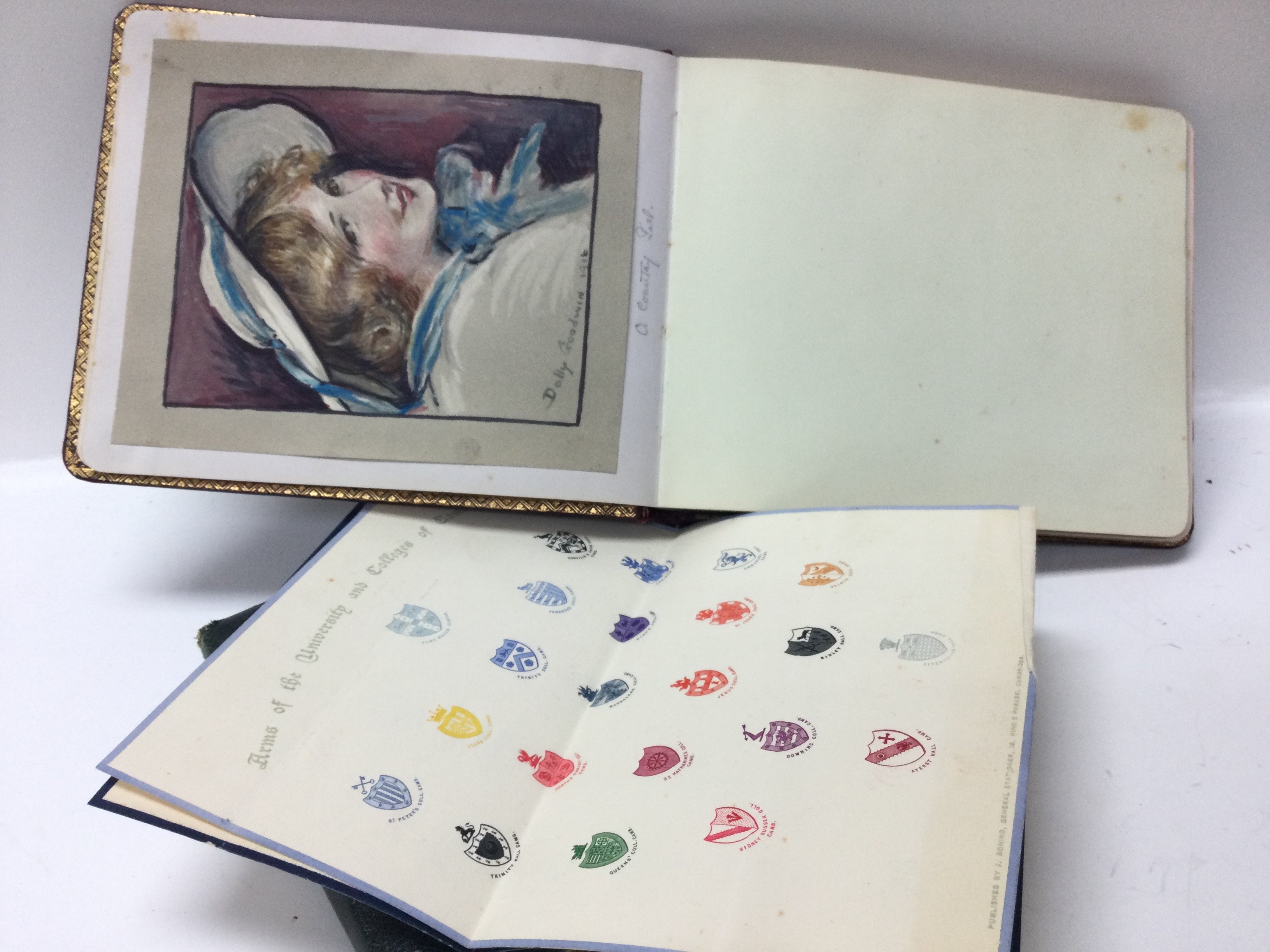 Two books of autograph albums containing various sketches and watercolours including local interest depictions of Leigh old town. Postage category B
