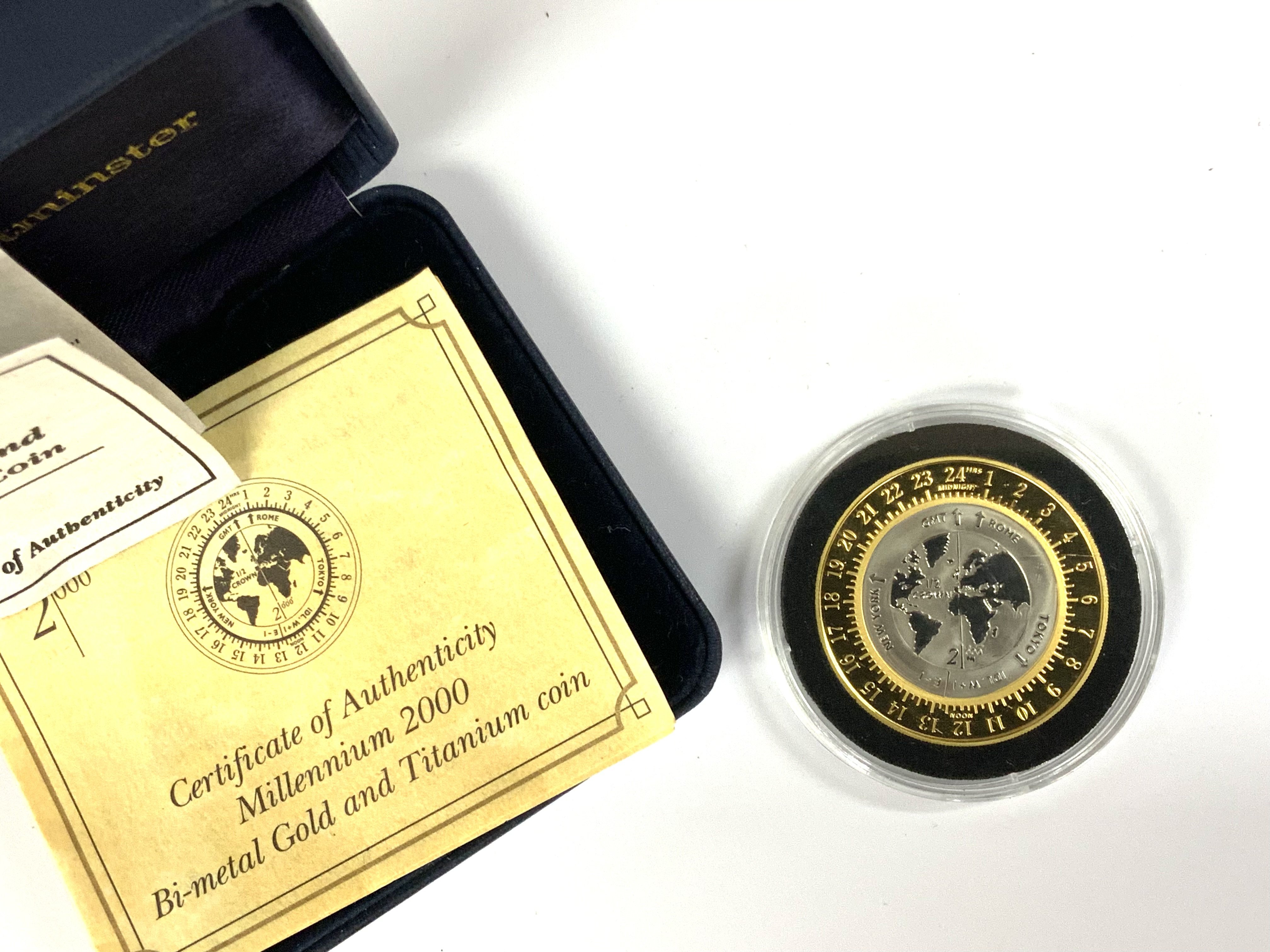 Isle of Man 1/2 crown Millennium Greenwich Meridian gold and titanium coin 2000. (A)