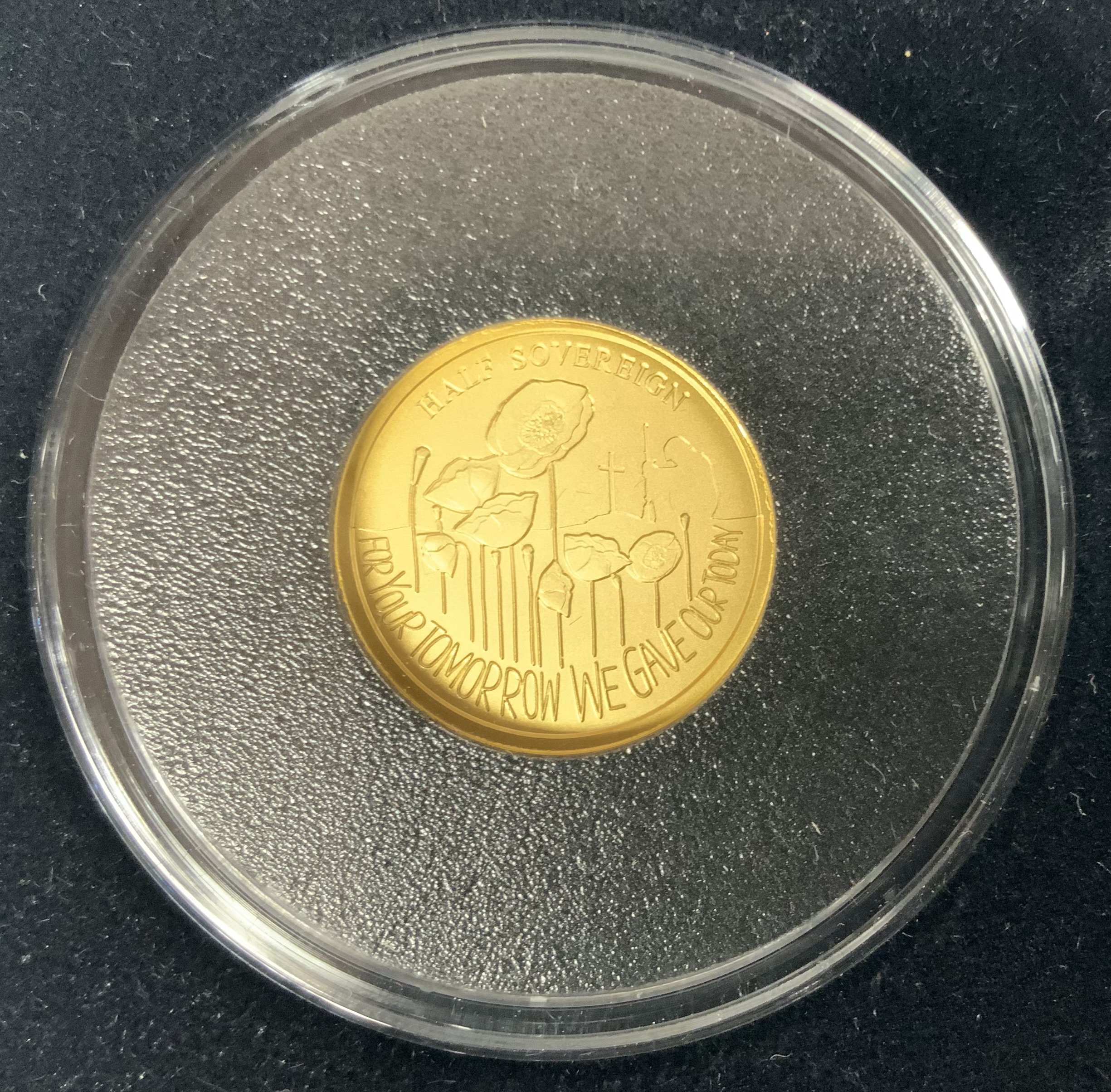2018 Alderney Centenary of The End of WW1, Matt proof half sovereign (A)