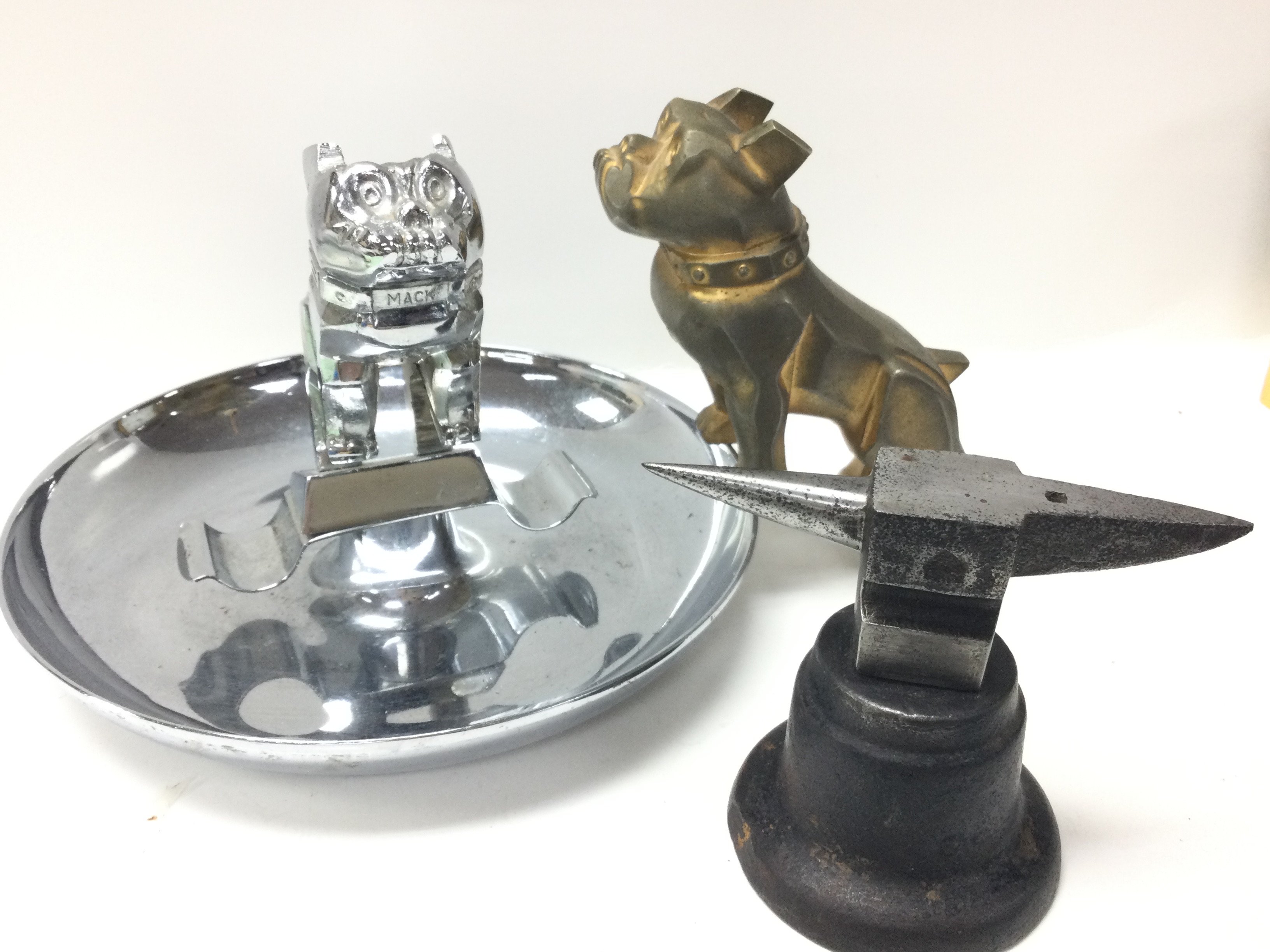 British bulldog Mack ashtray and car mascot and a miniature anvil. Postage category B