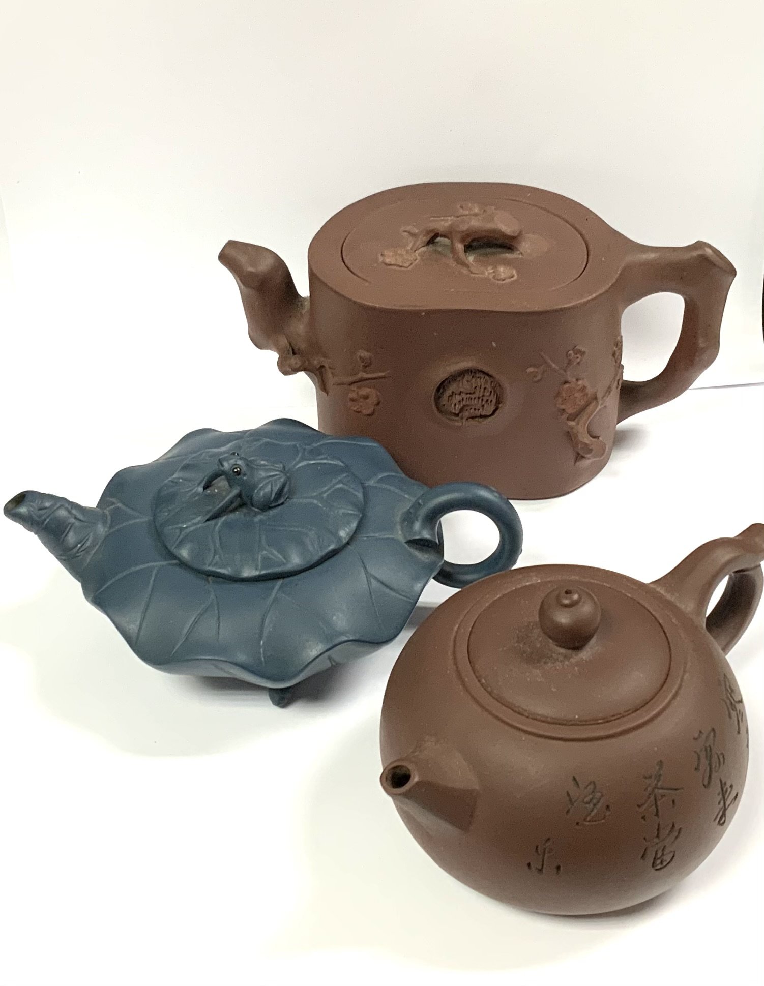 3 Chinese republican period Yi Xing terracotta teapots. (D)
