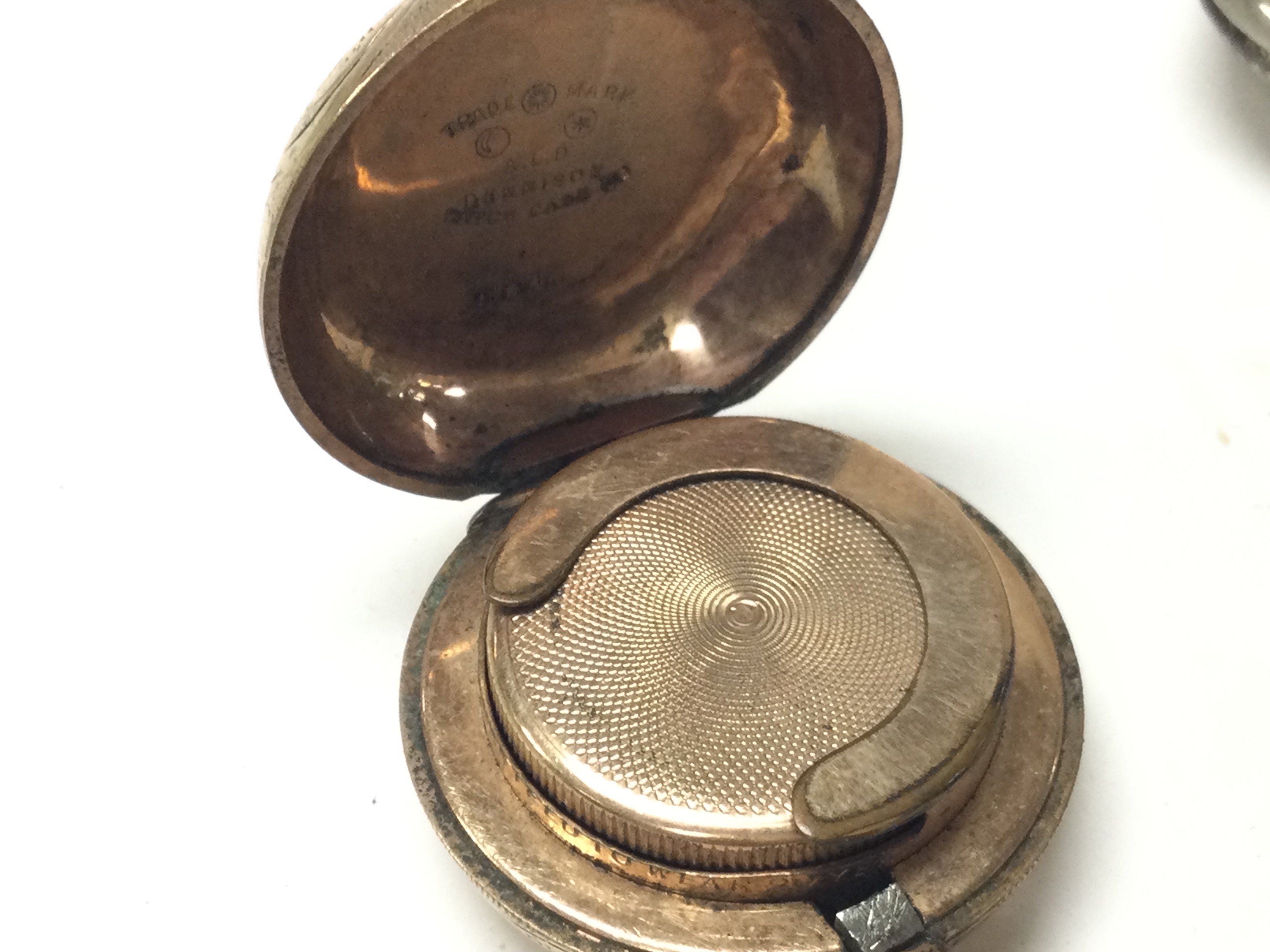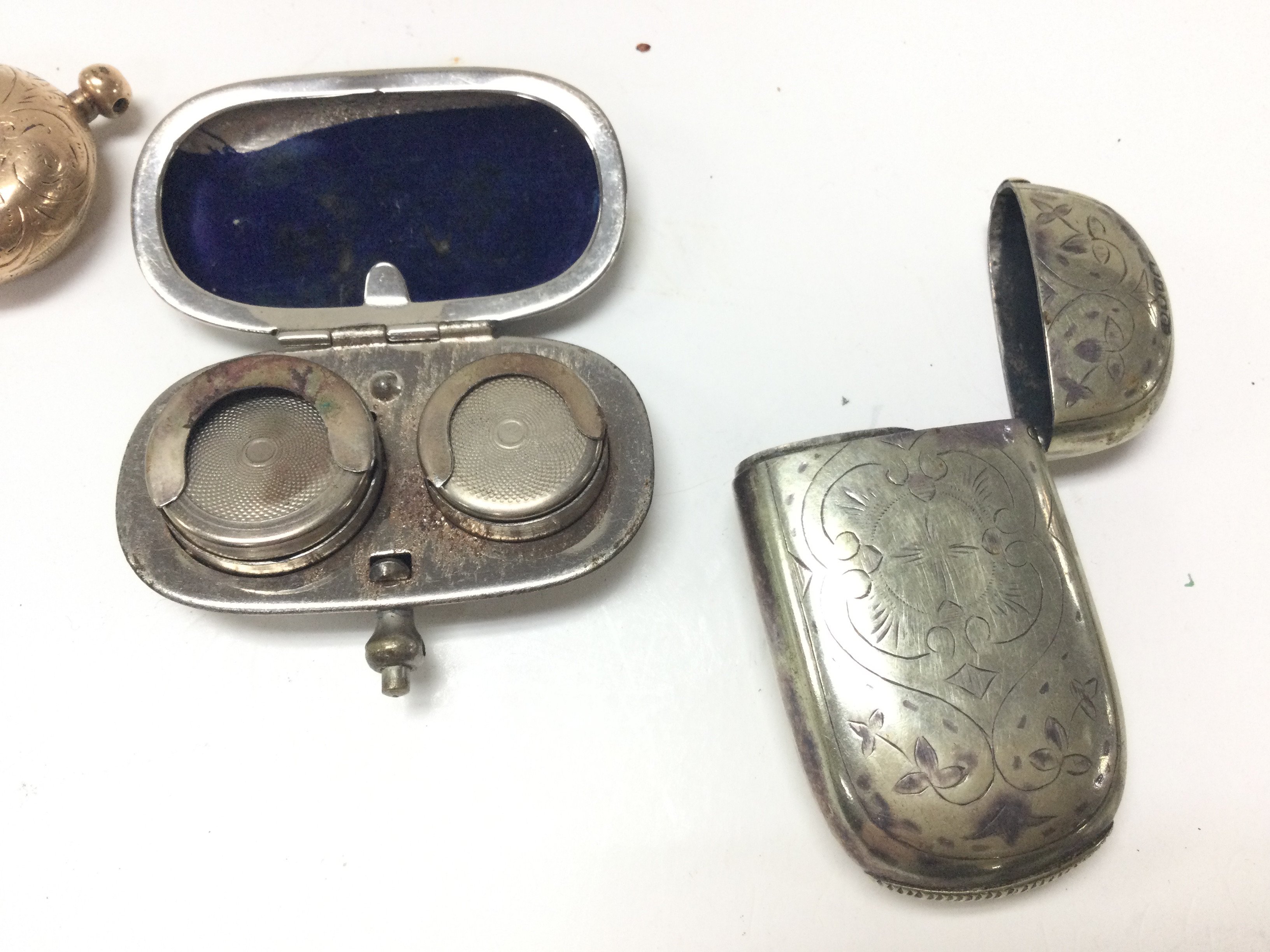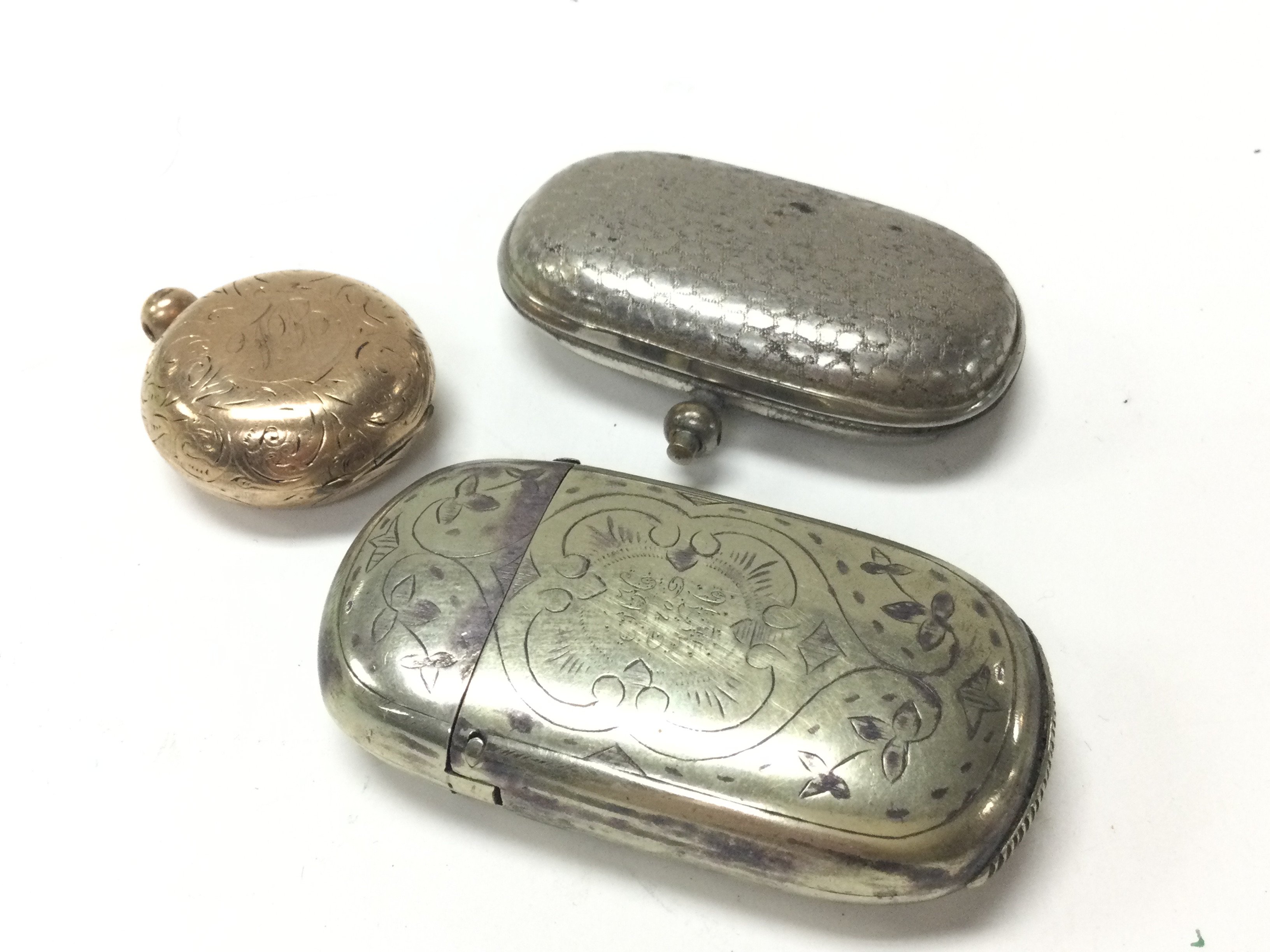 A Gold plated sovereign case, Vesta vase and another sovereign case. Postage category A