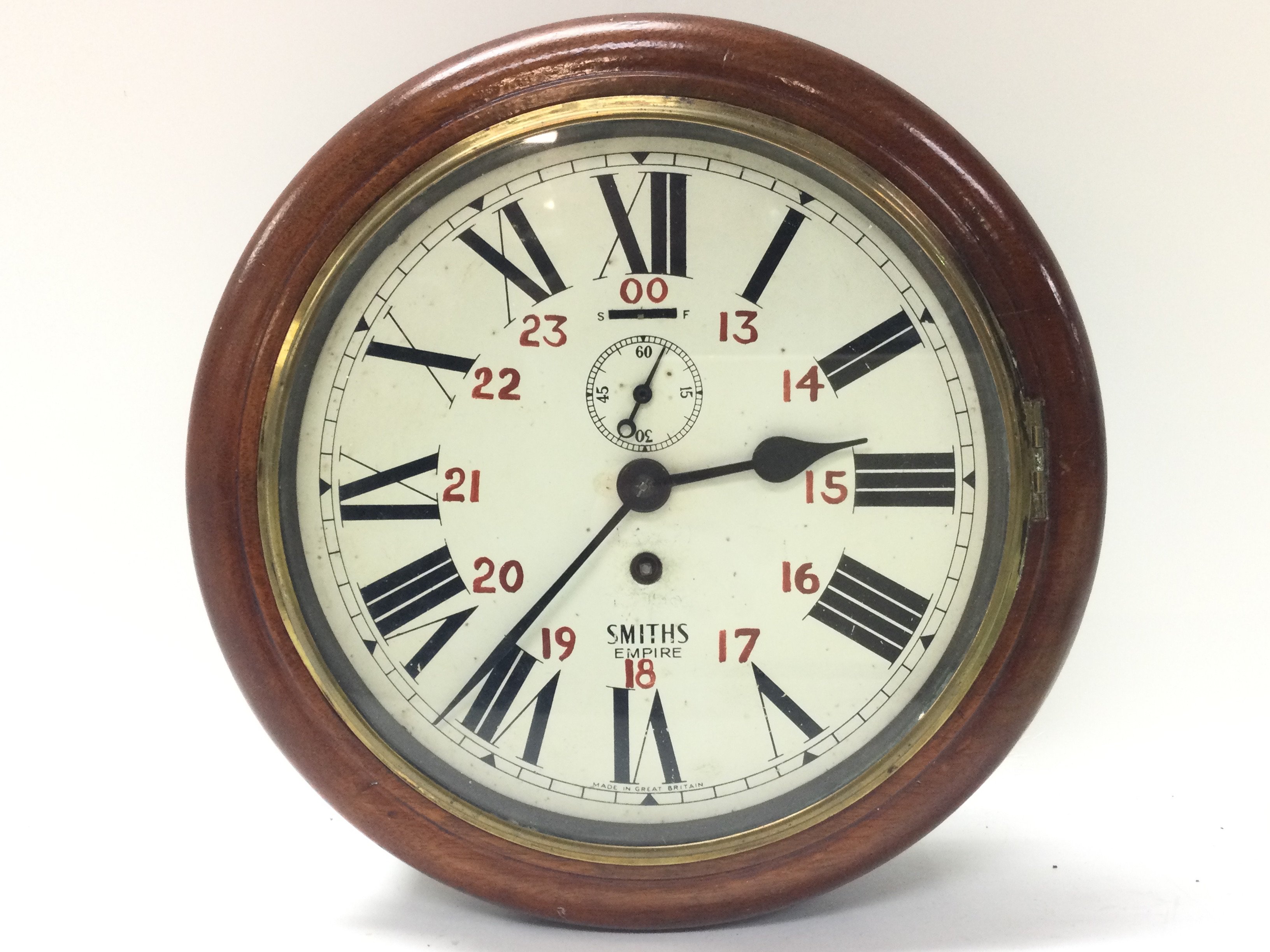 A Smiths wall clock, with key. Clock 26cm wide. Seen working. This lot cannot be posted