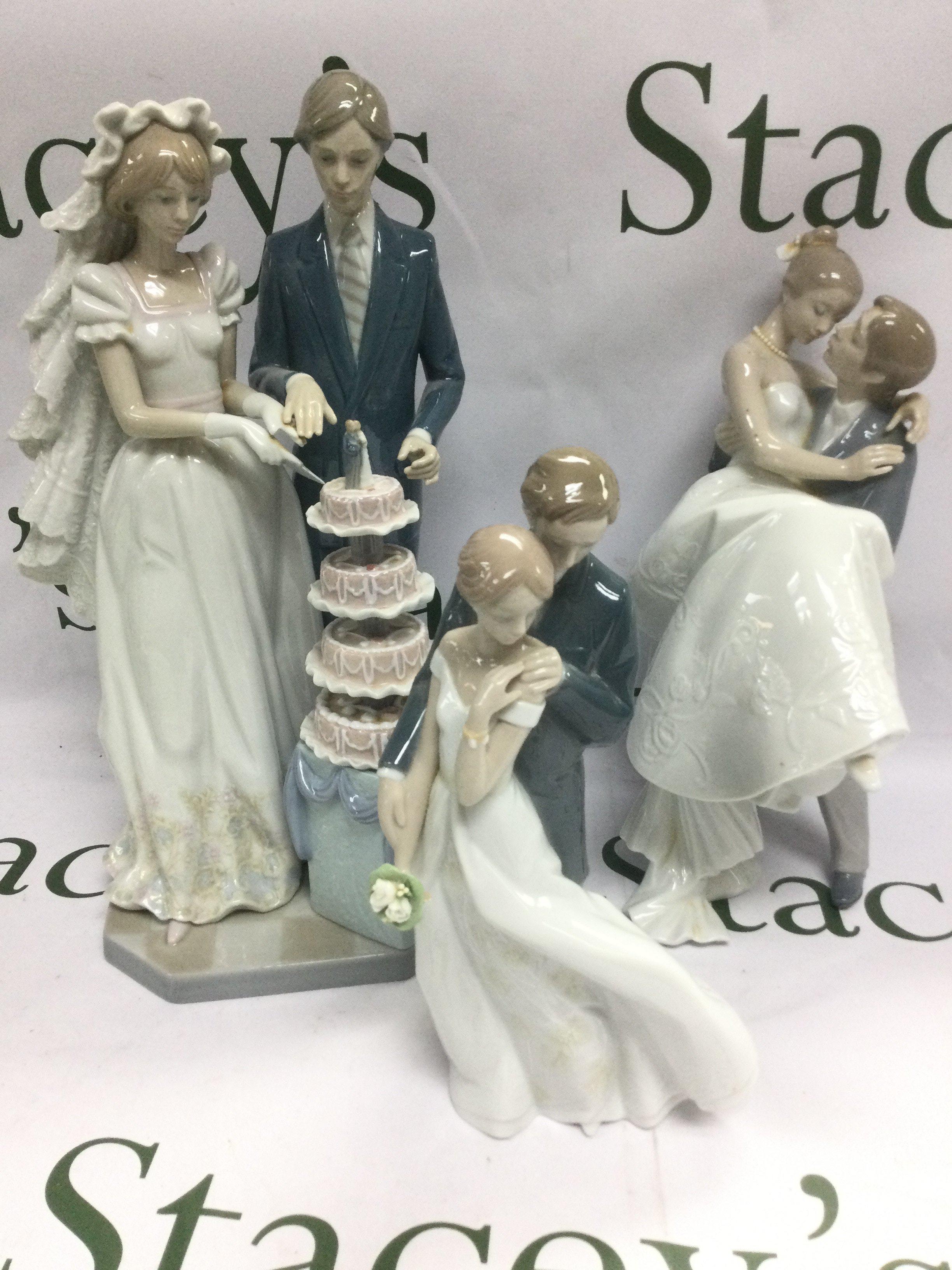 Three boxed Lladro figures of a wedding couple. Shipping category D.
