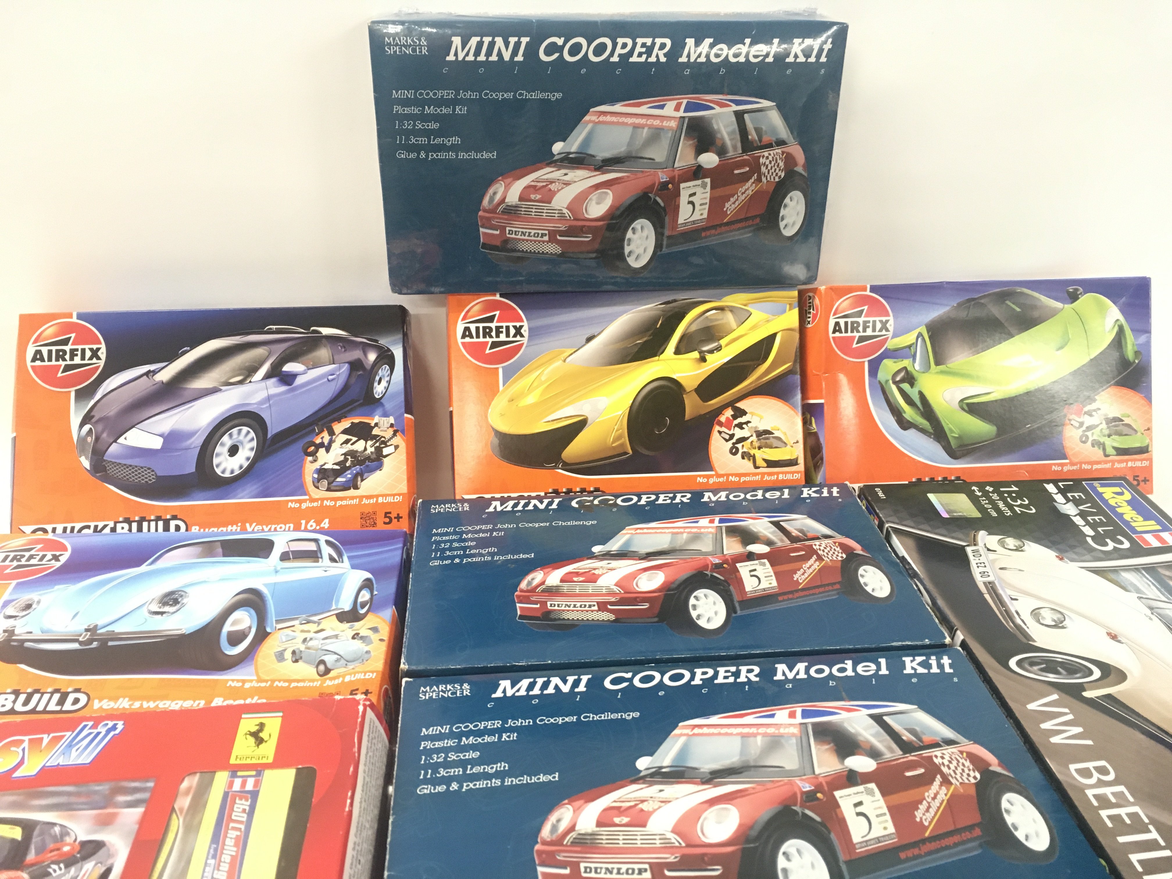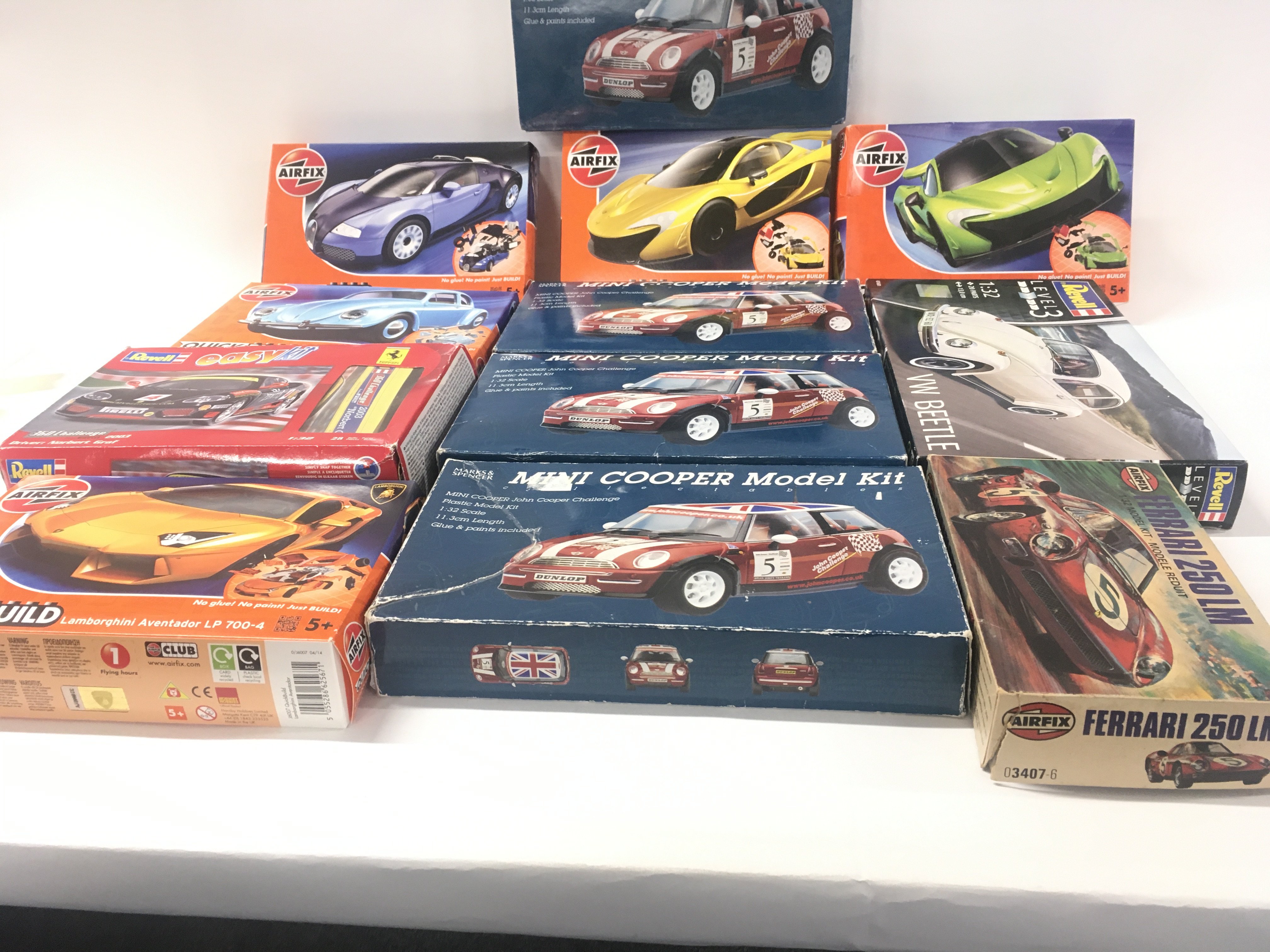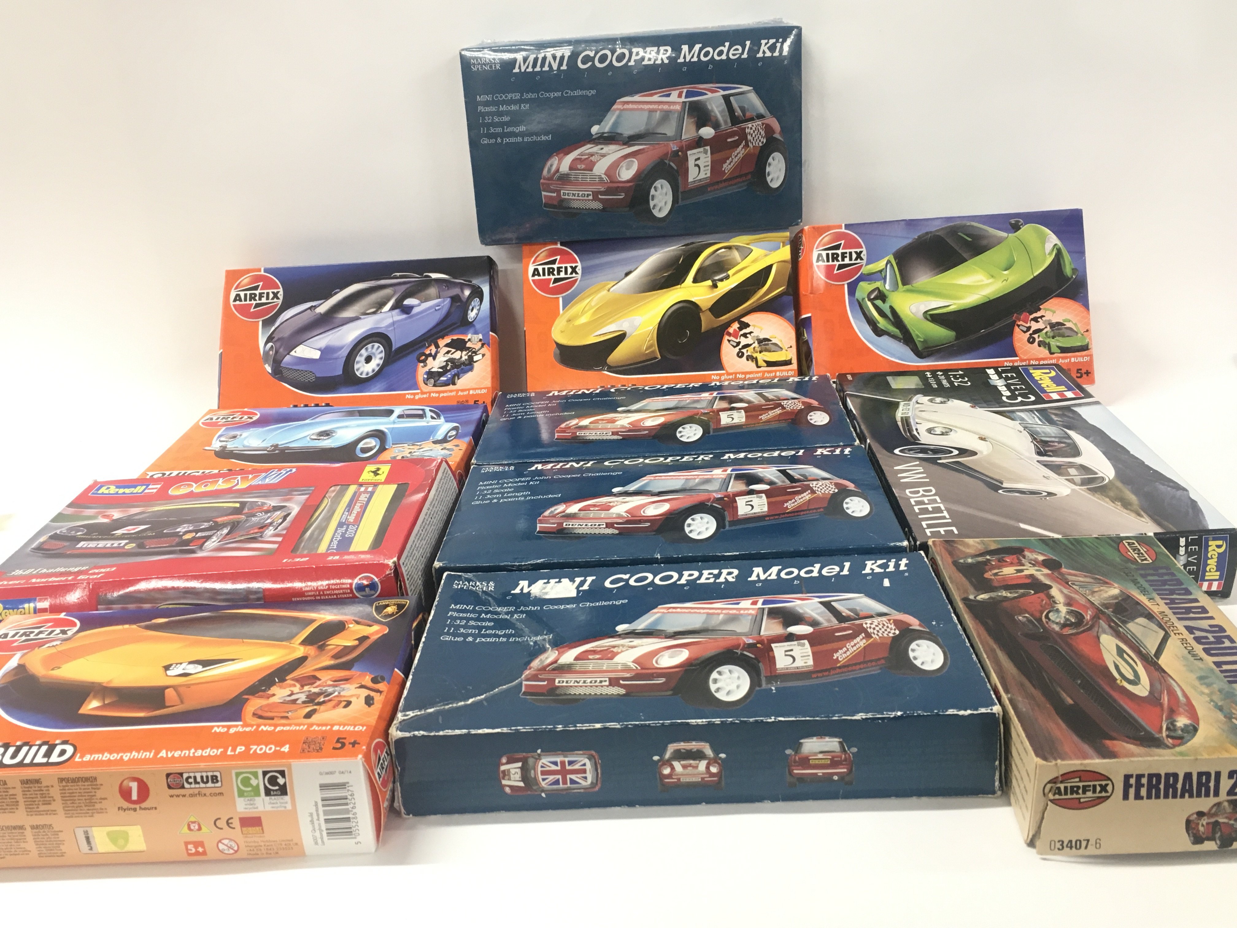A collection of 12 boxed model car kits by Airfix..Revell and Marks and Spencer’s.