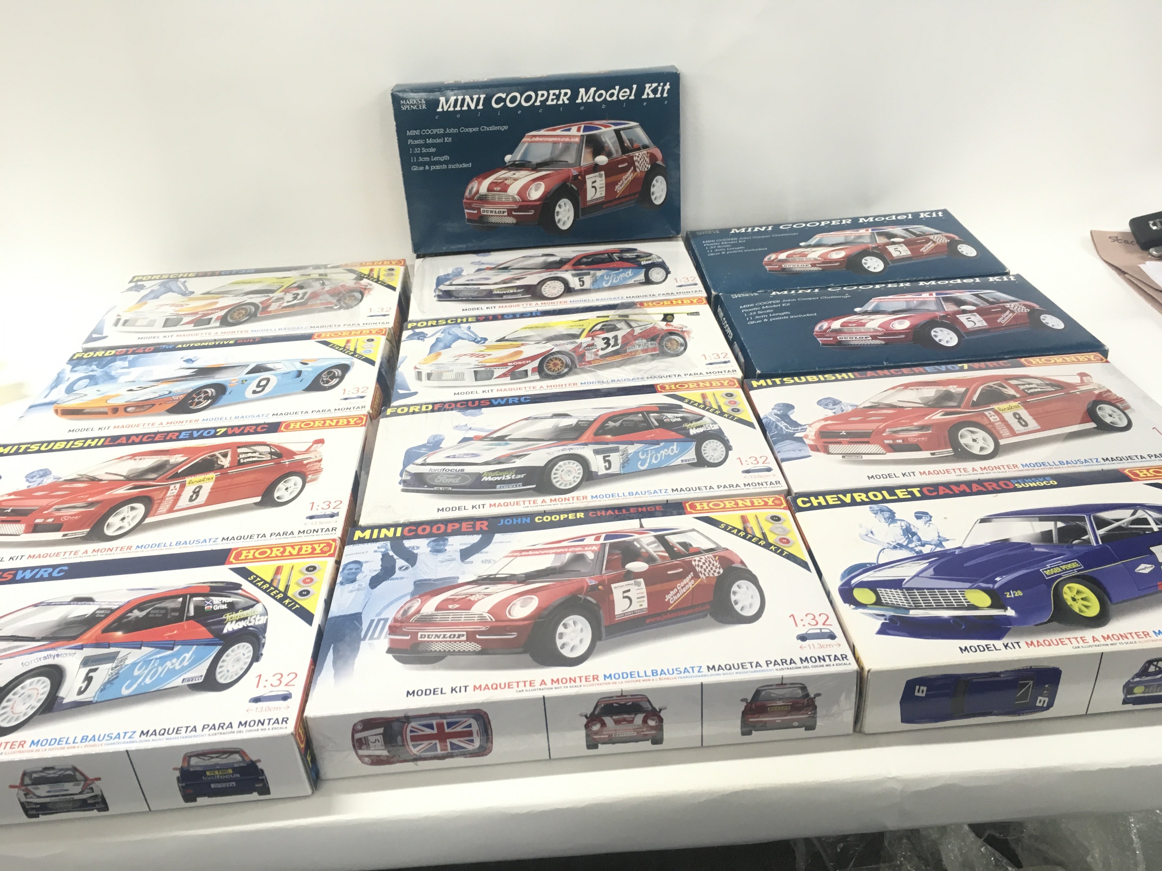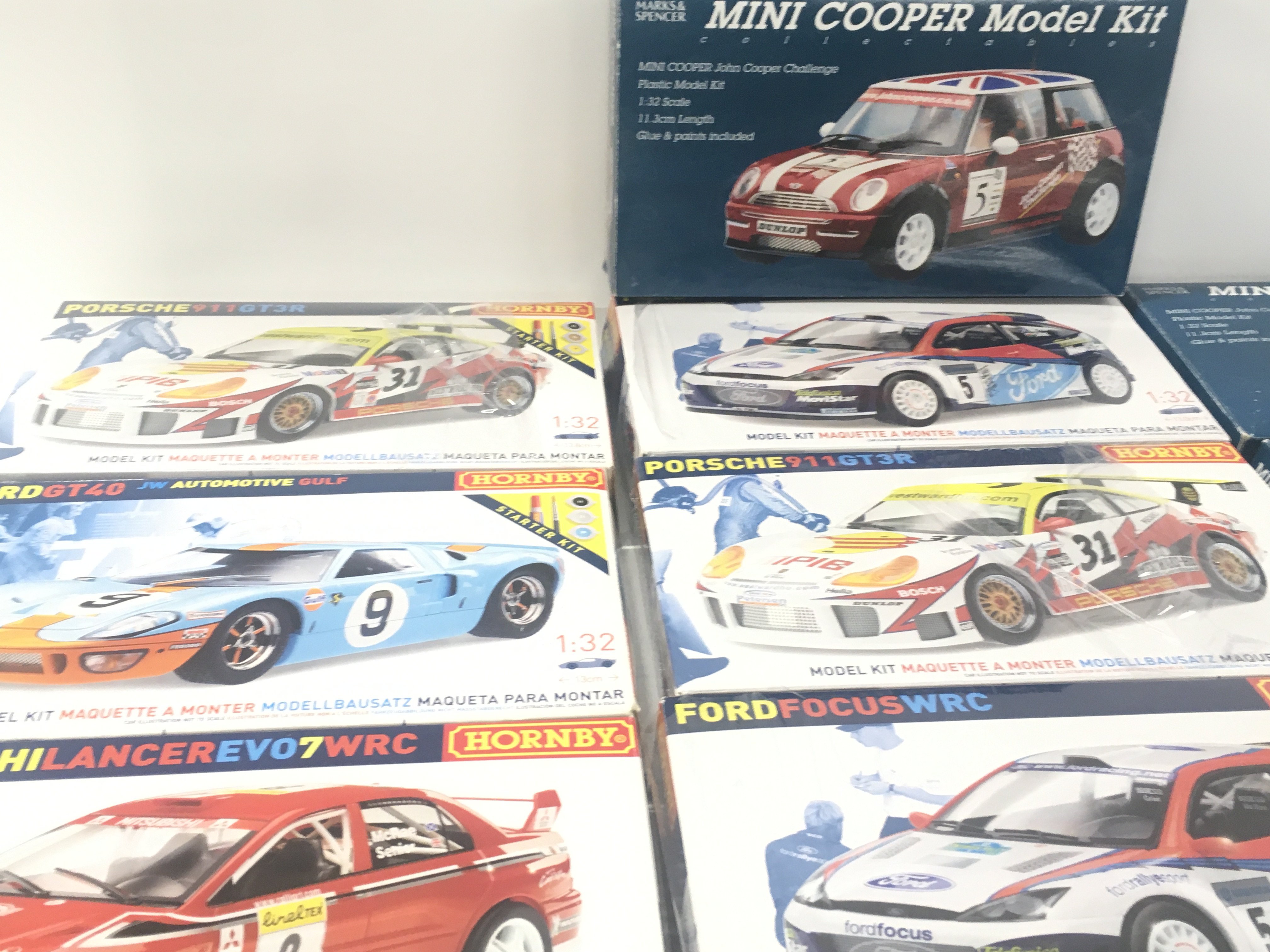 A collection in excess of 12 model car kits by Hornby and Marks and Spencer’s