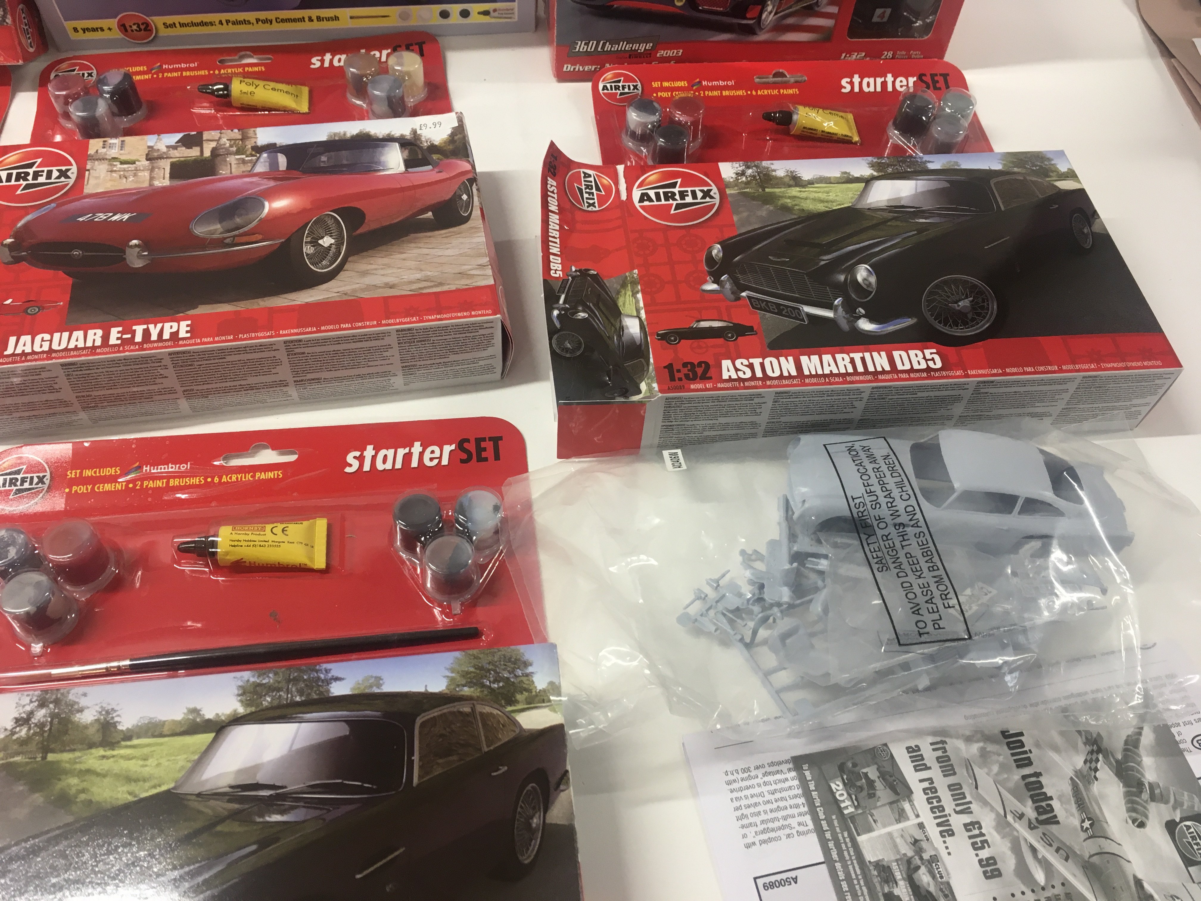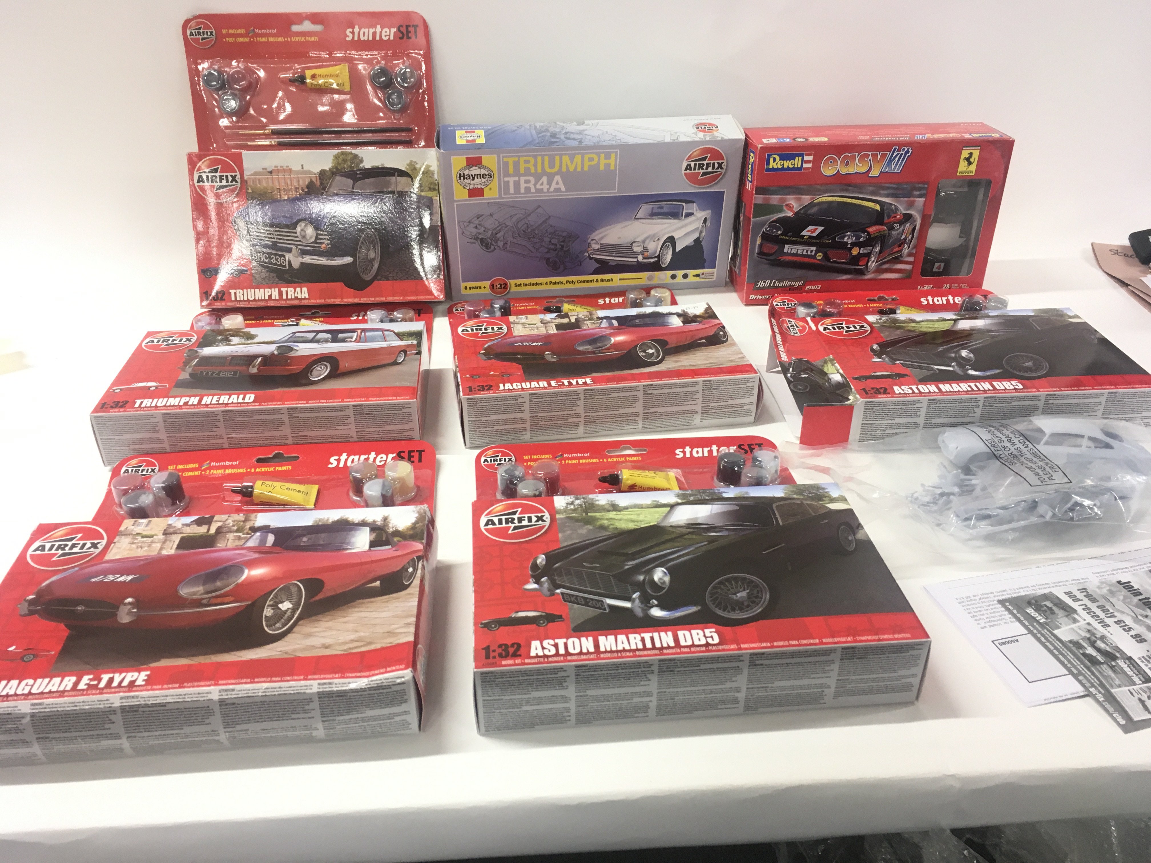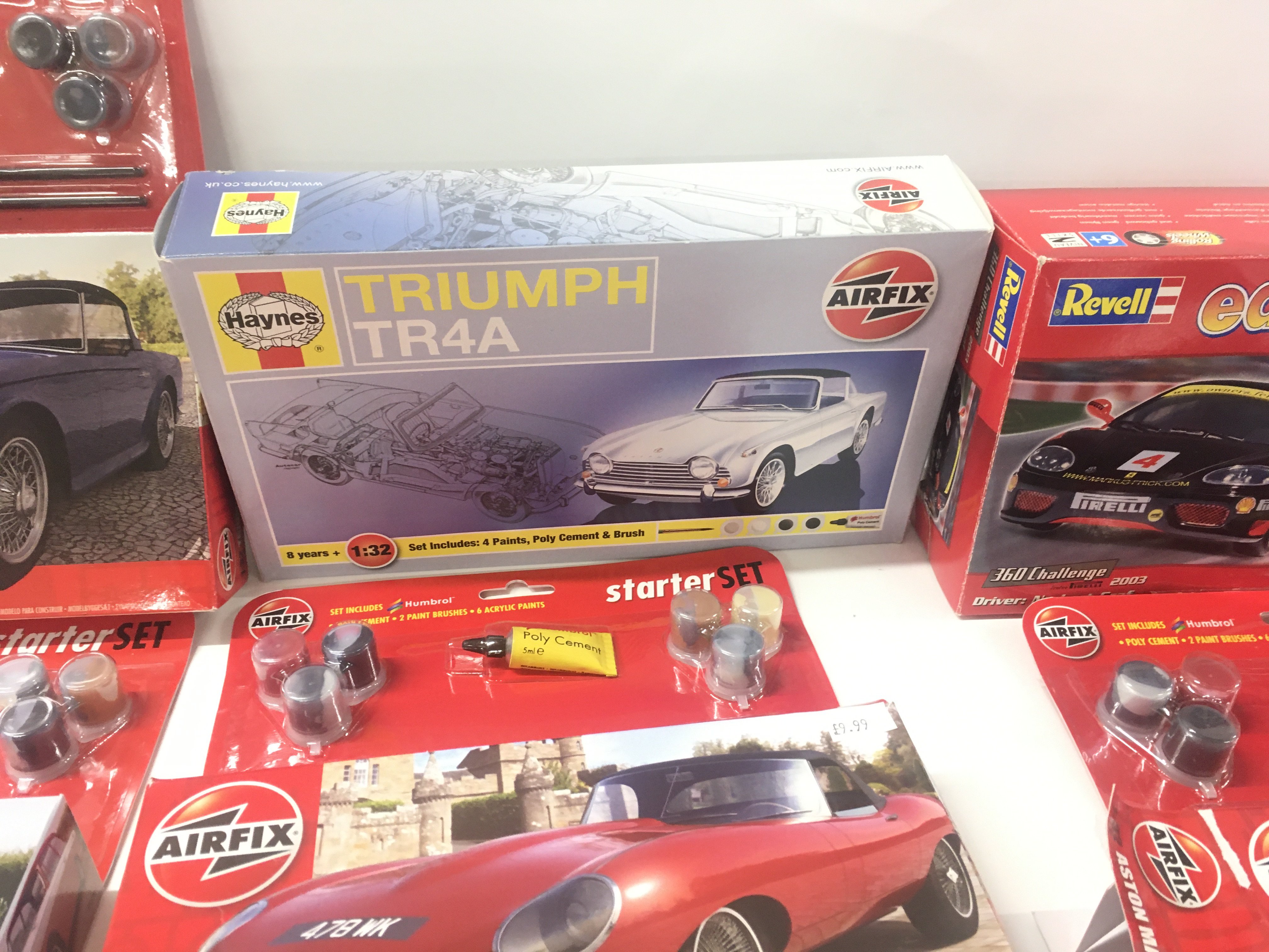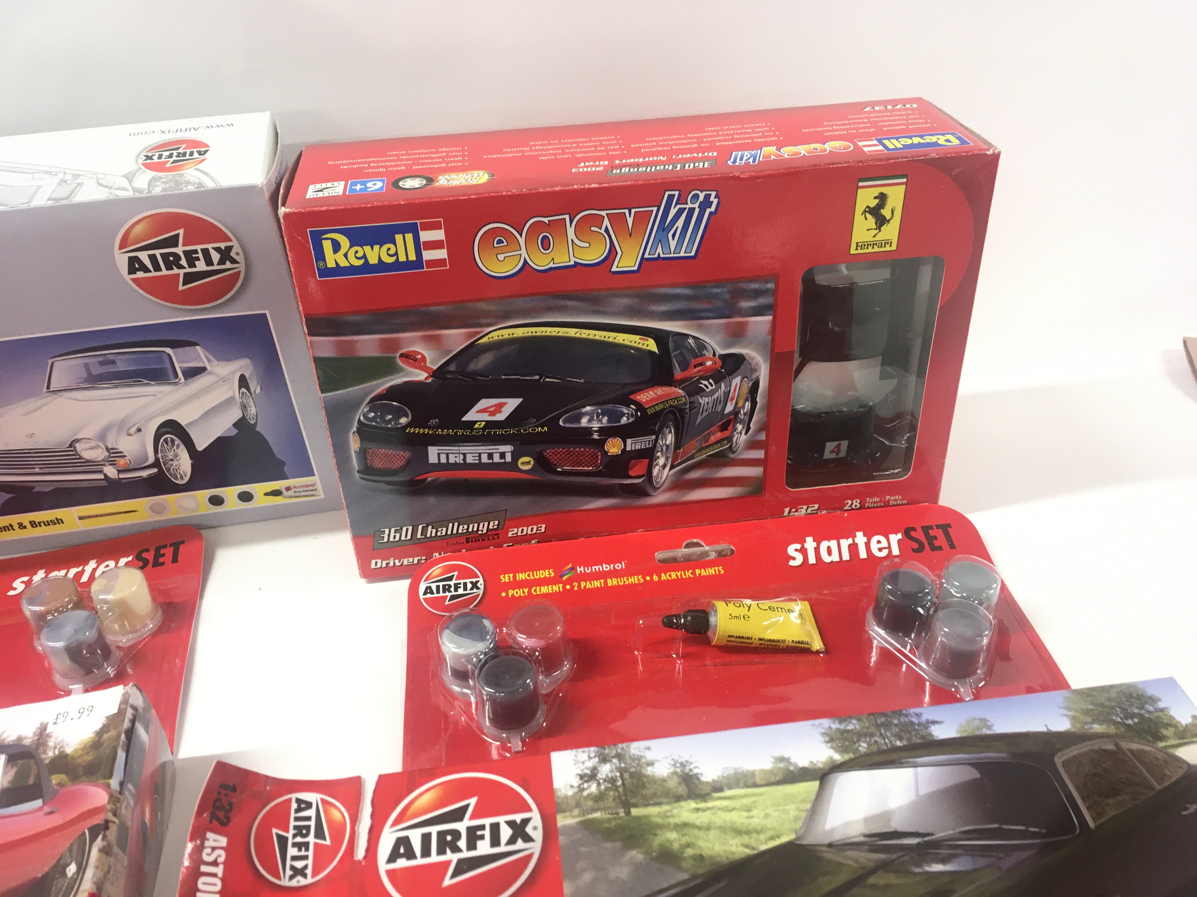 A collection of 7Airfix model car kits includes 6 starter kits with paints also includes 1 Revell kit.
