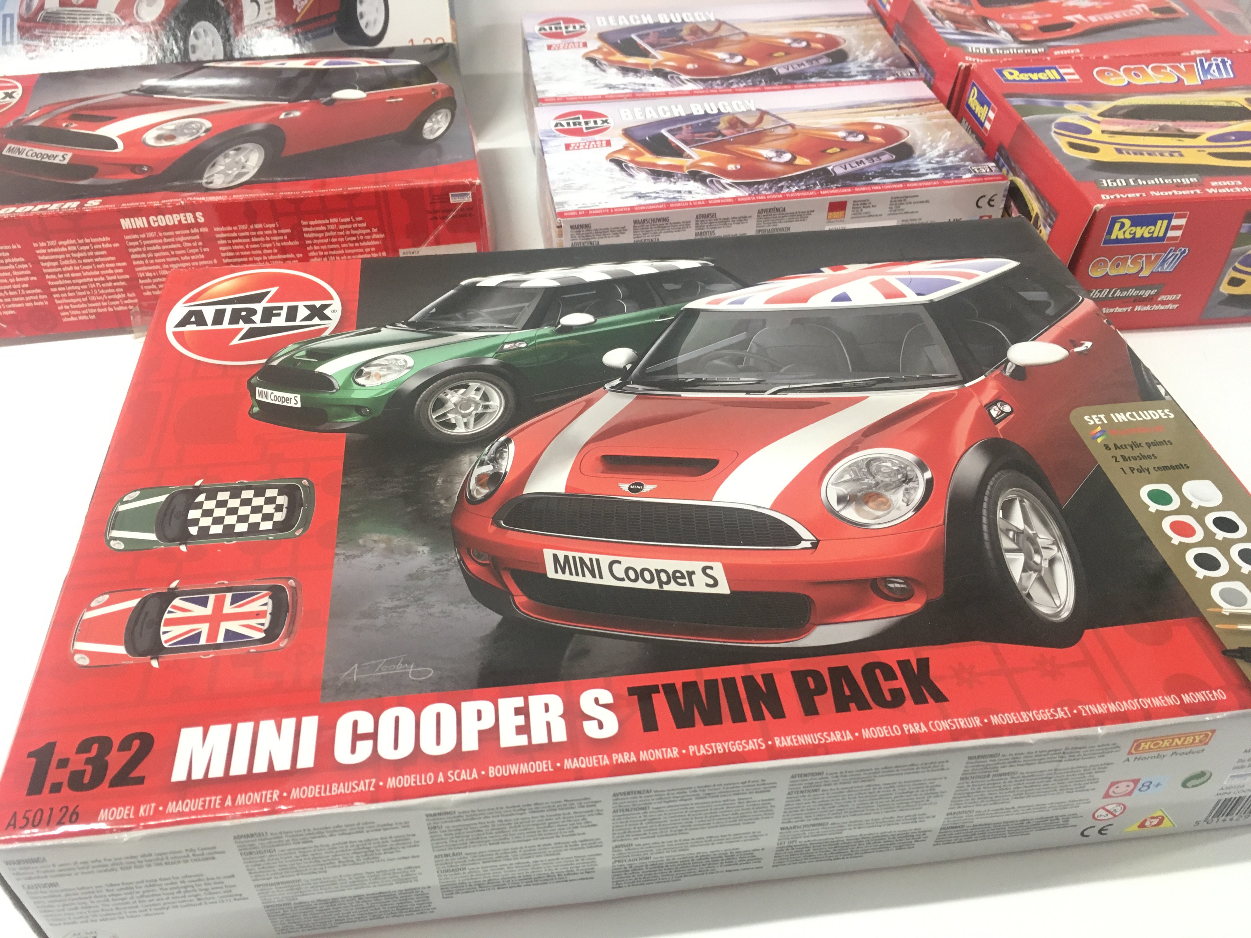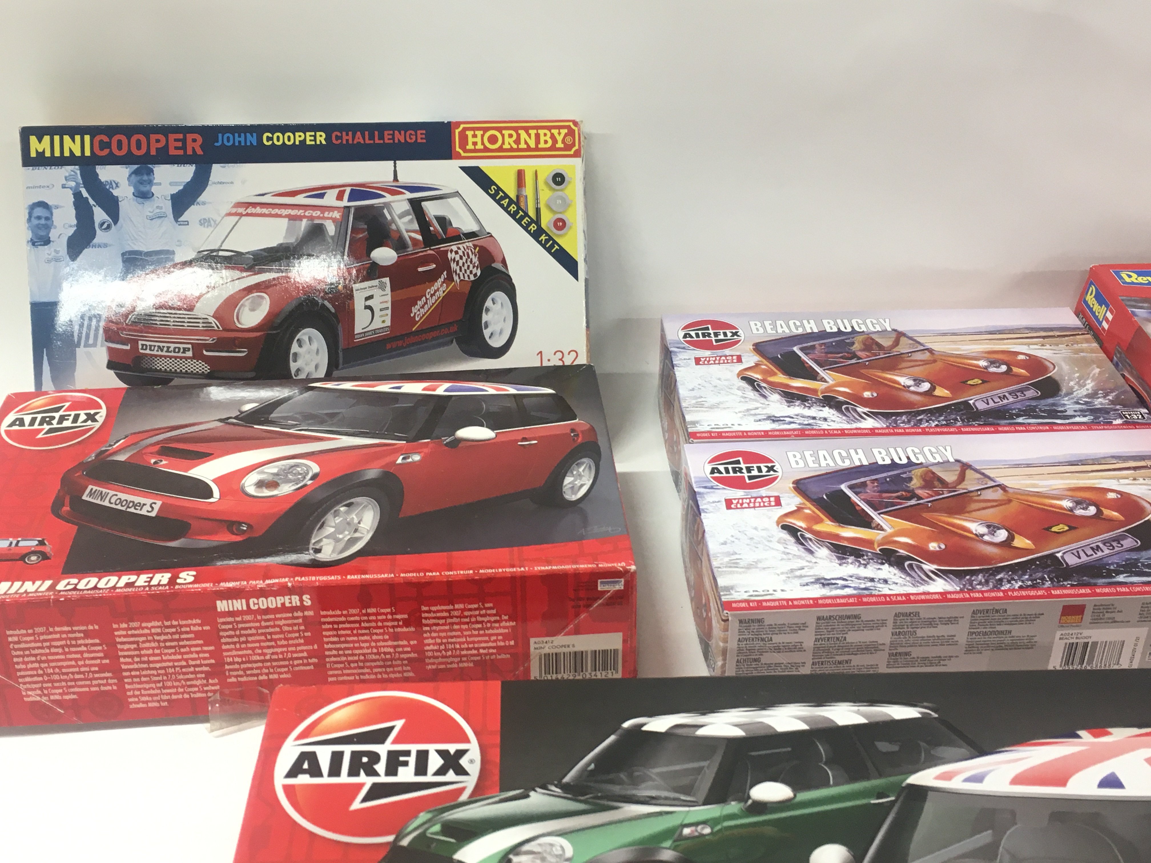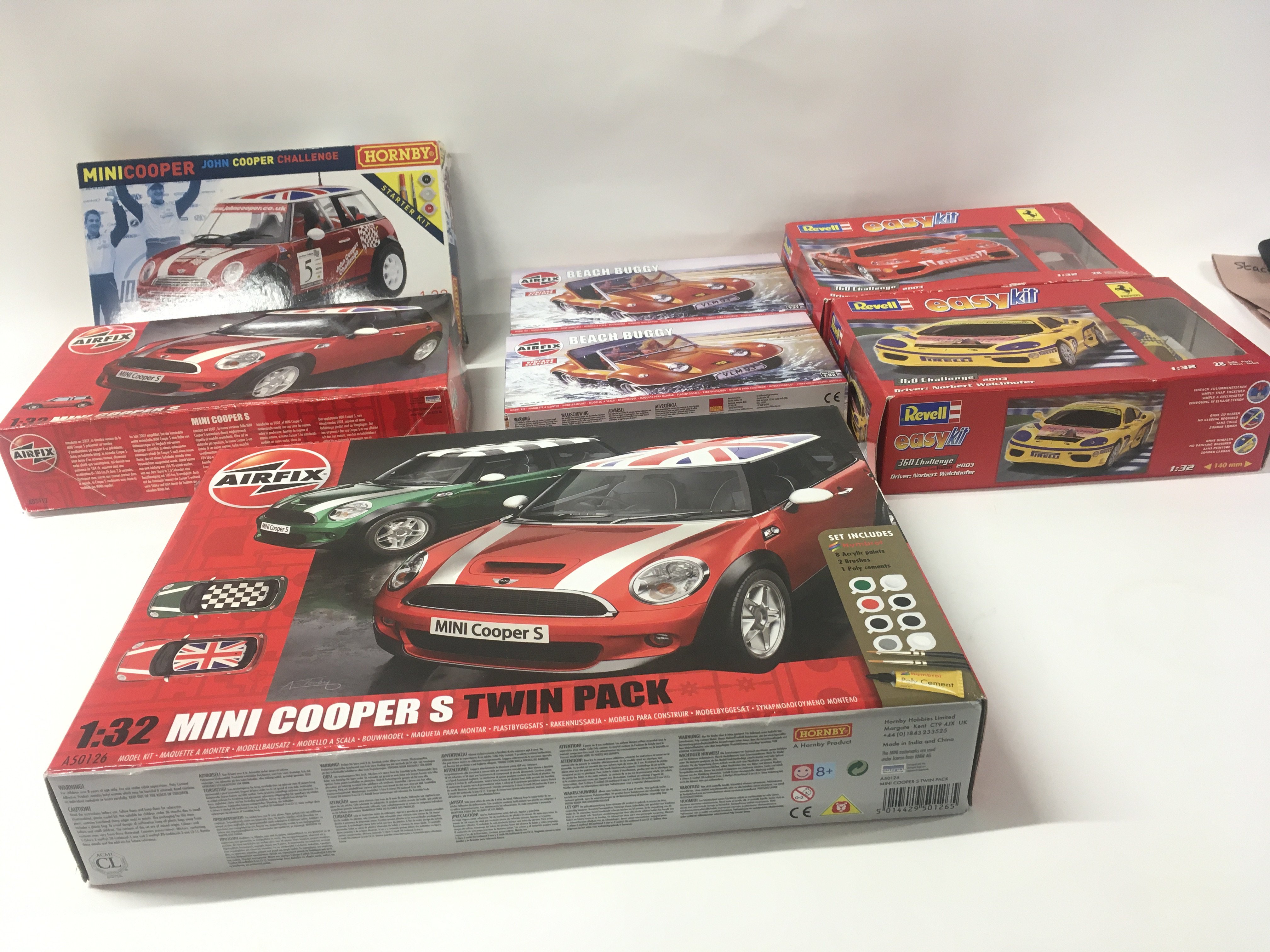A collection of 7 model car kits by Airfix ..Hornby and Revell