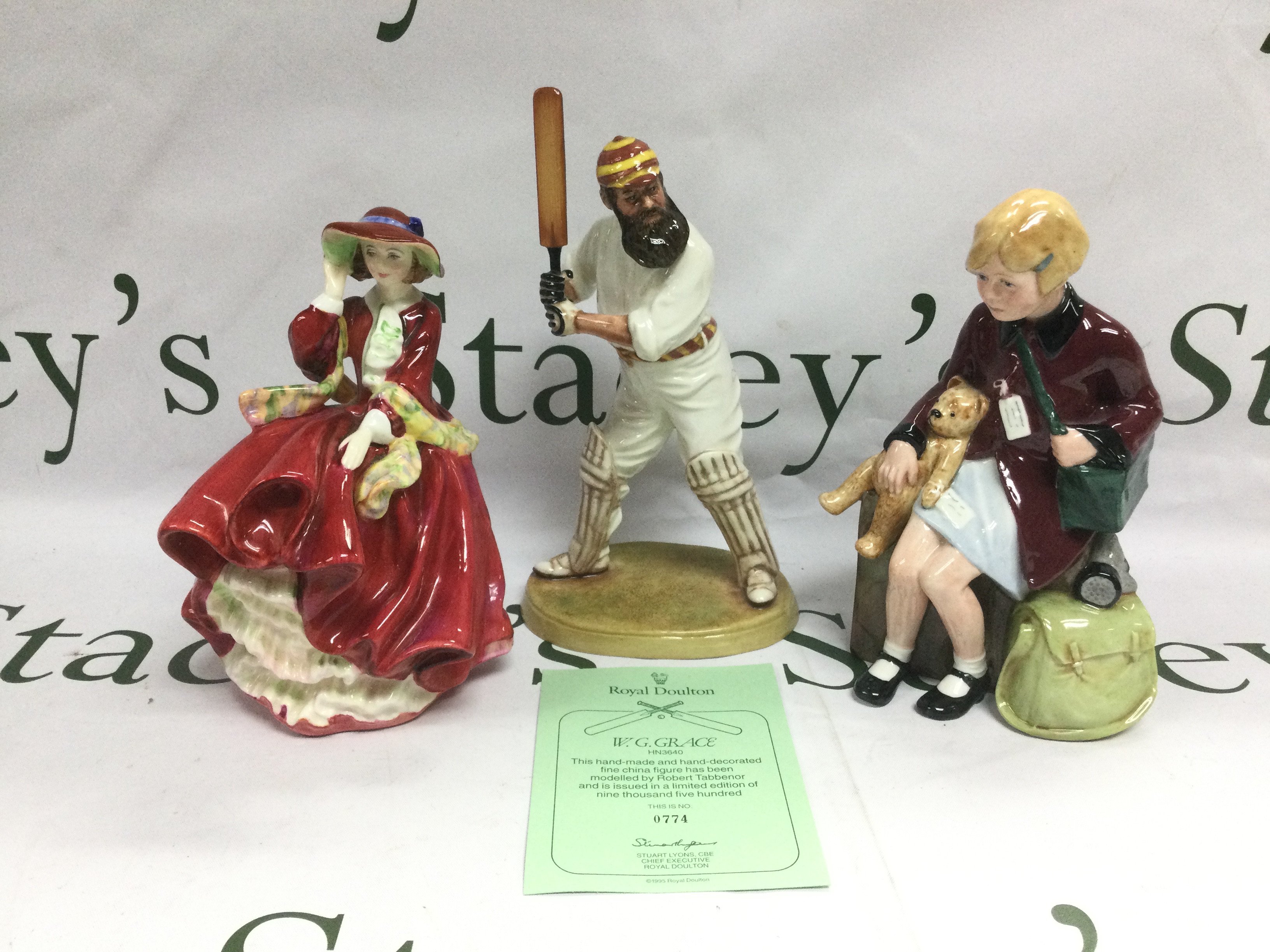 Three Royal Doulton figures comprising W.G. Grace, The Girl Evacuee and Top Of The Hill. Shipping category D.