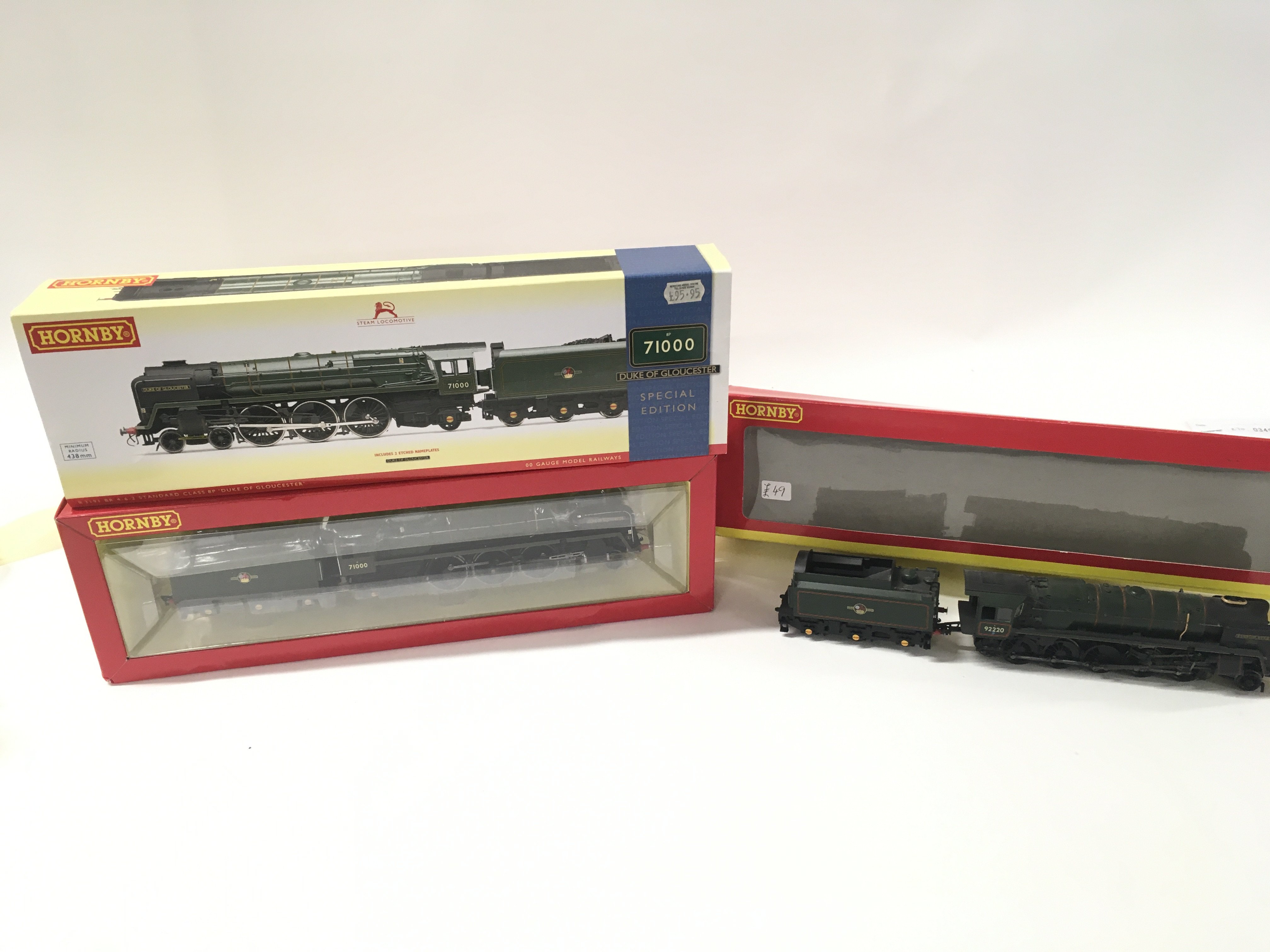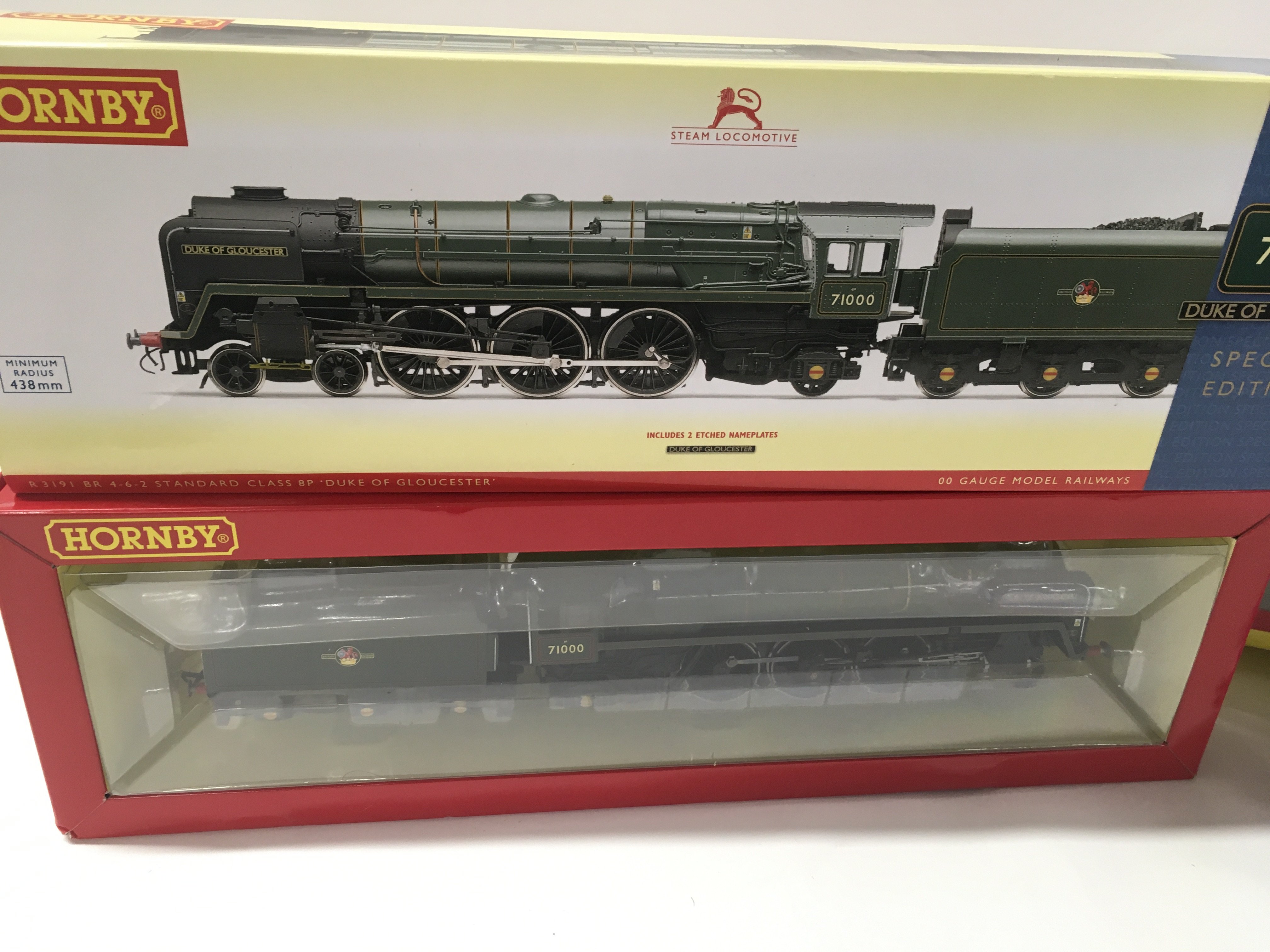 Two boxed Hornby model locomotives R3191 special edition Standard Class 8P Duke of Gloucester DCC ready and a Loco with tender Evening Star R 2785. Both 00 gauge