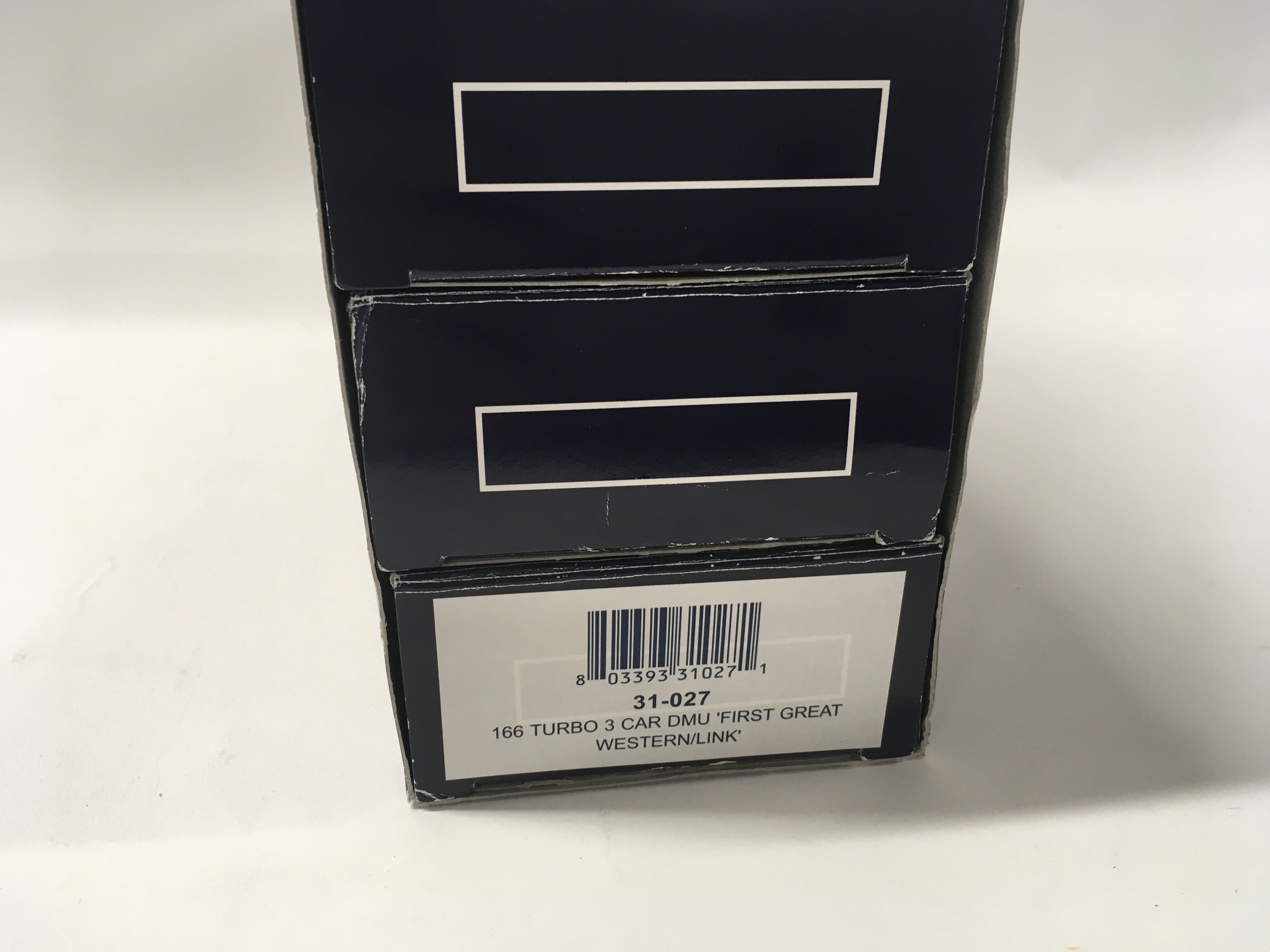 A boxed Bachmann 3 car set no 31 027. 166 Turbo 3 car DMU First Great Western. 00 gauge