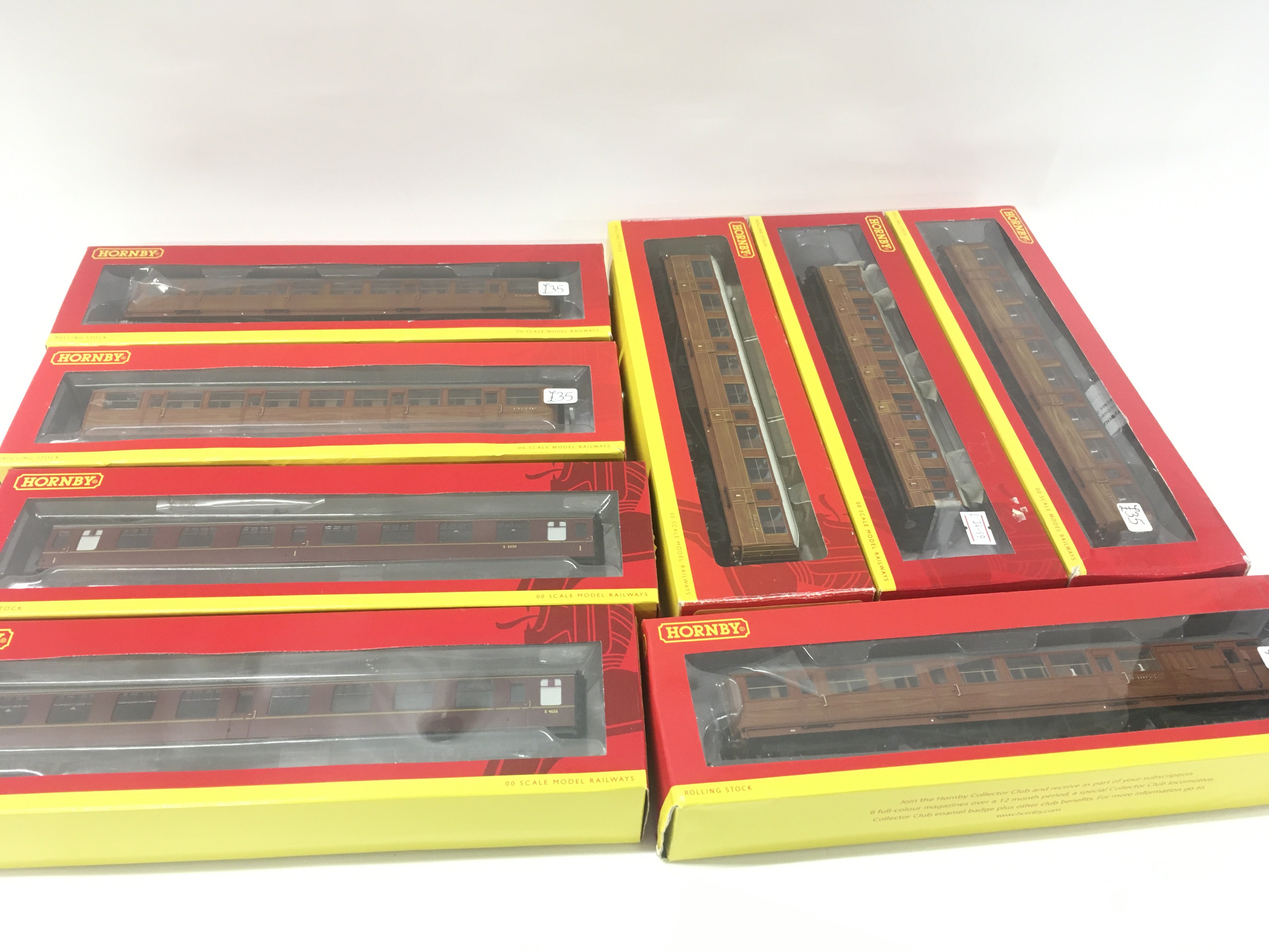 A collection of 8 boxed Hornby model carriages. 00 gauge.