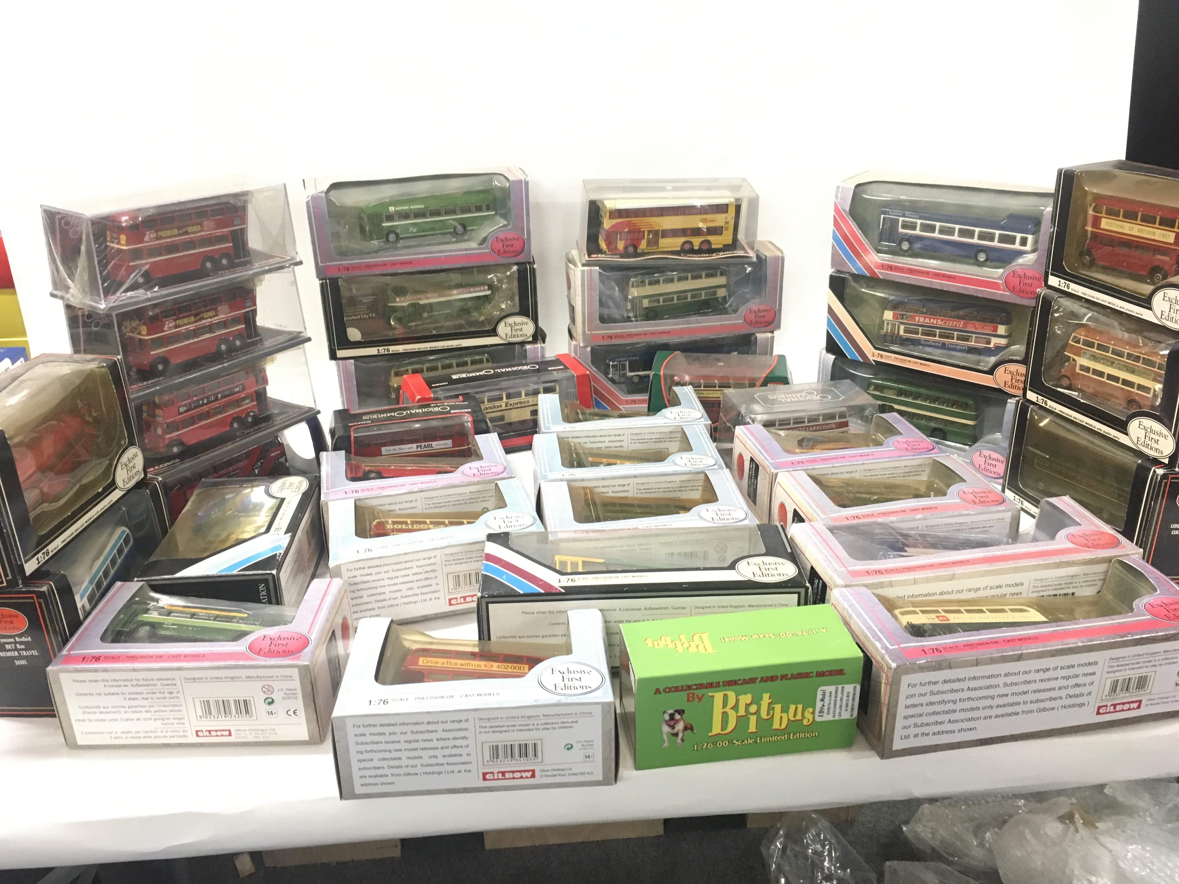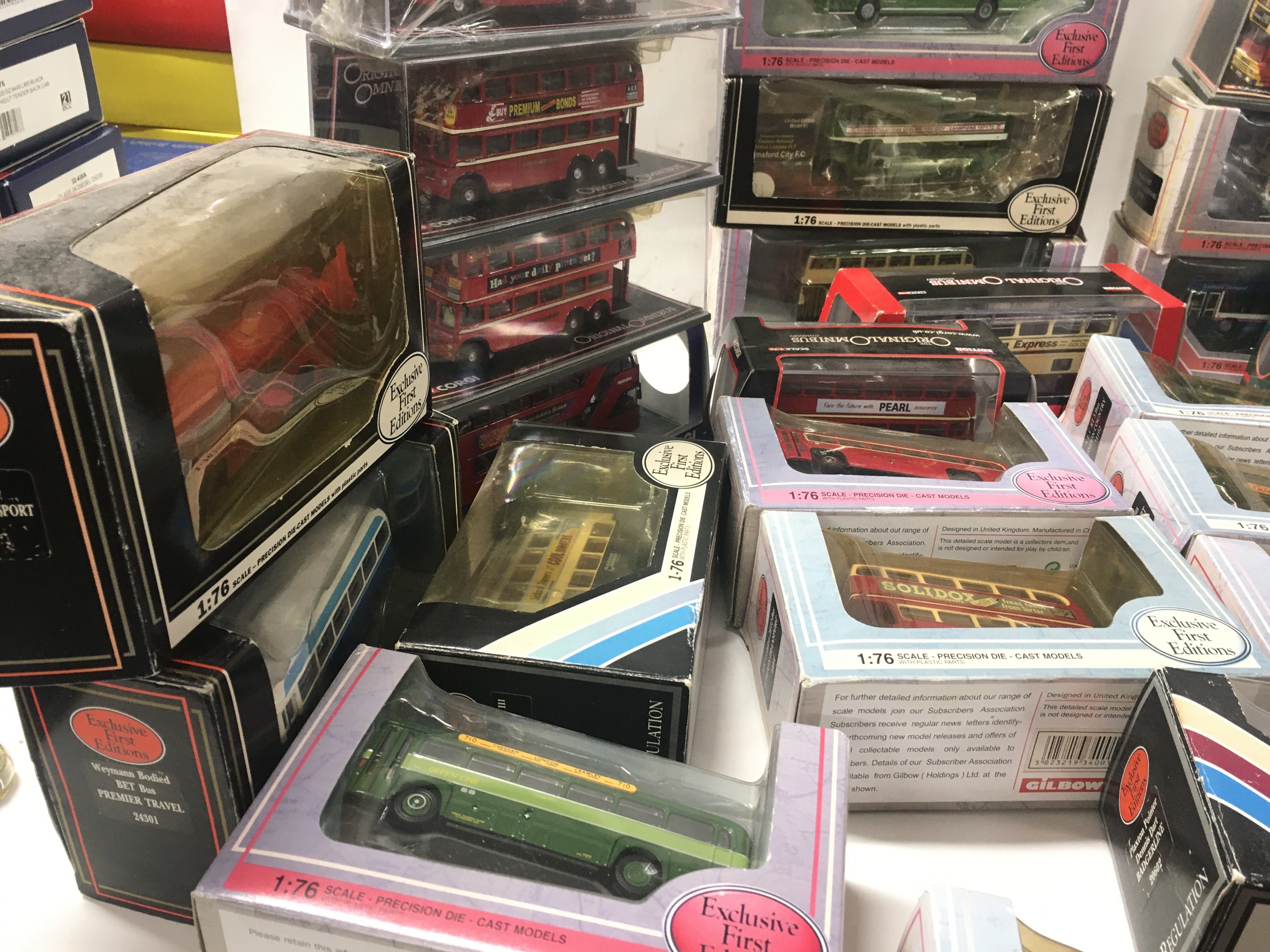 A collection of boxed model buses in excess of 30 pieces by Corgi..EFE..etc