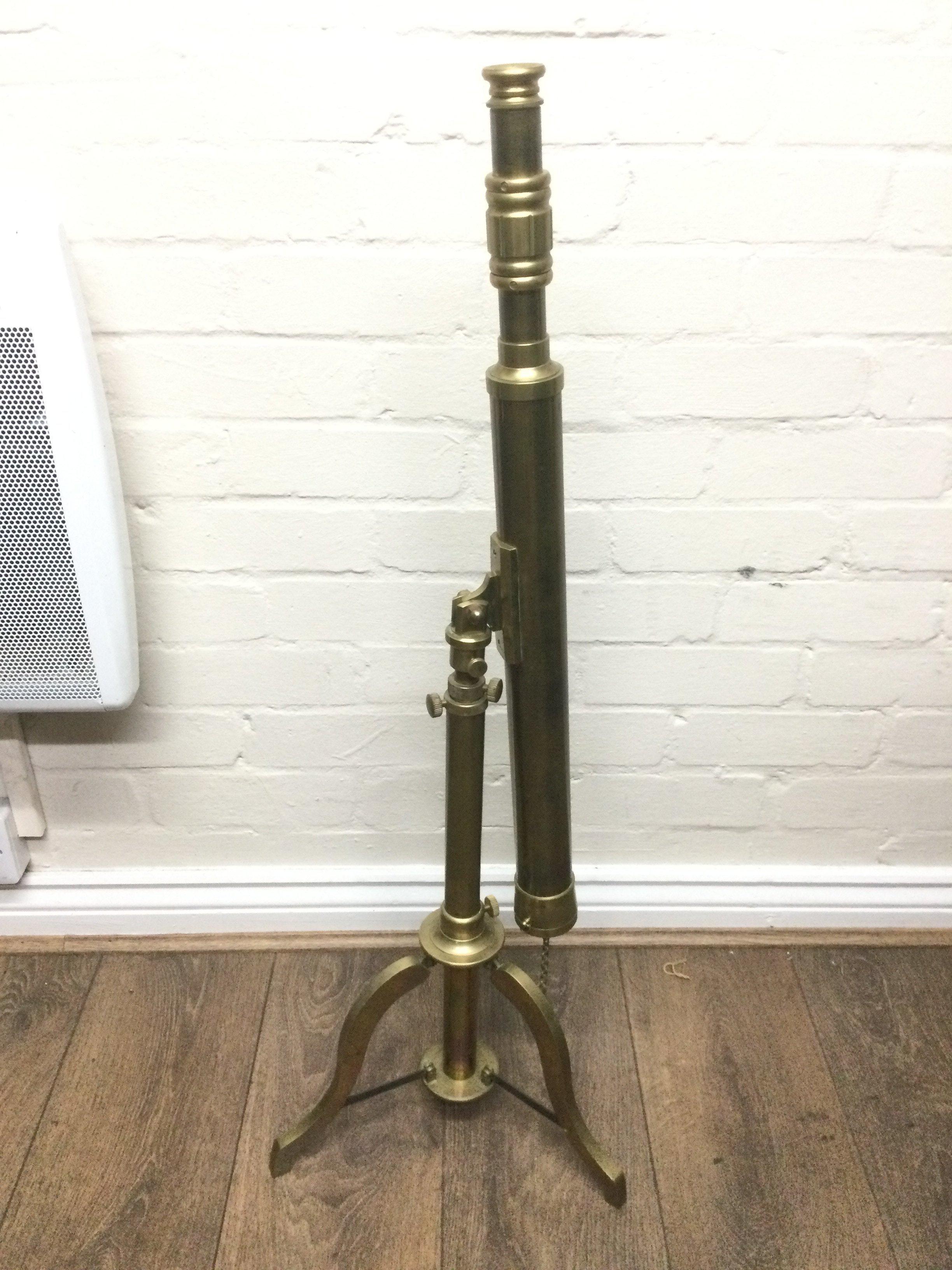 A brass telescope on stand, total approx length 90cm. Shipping category D.