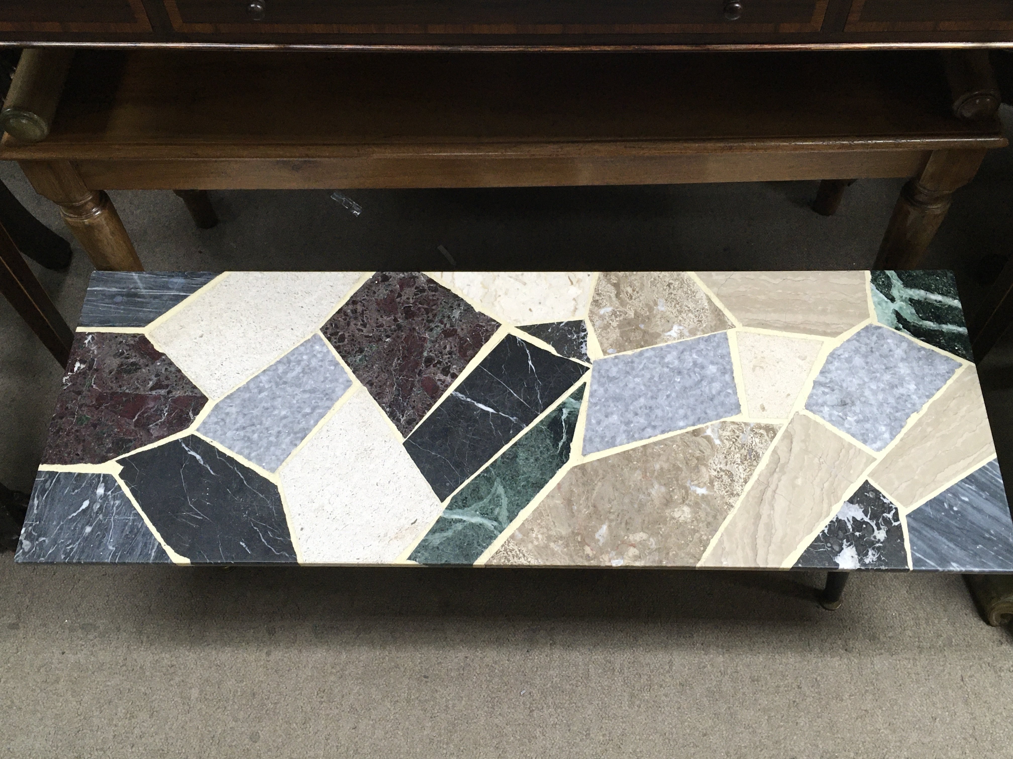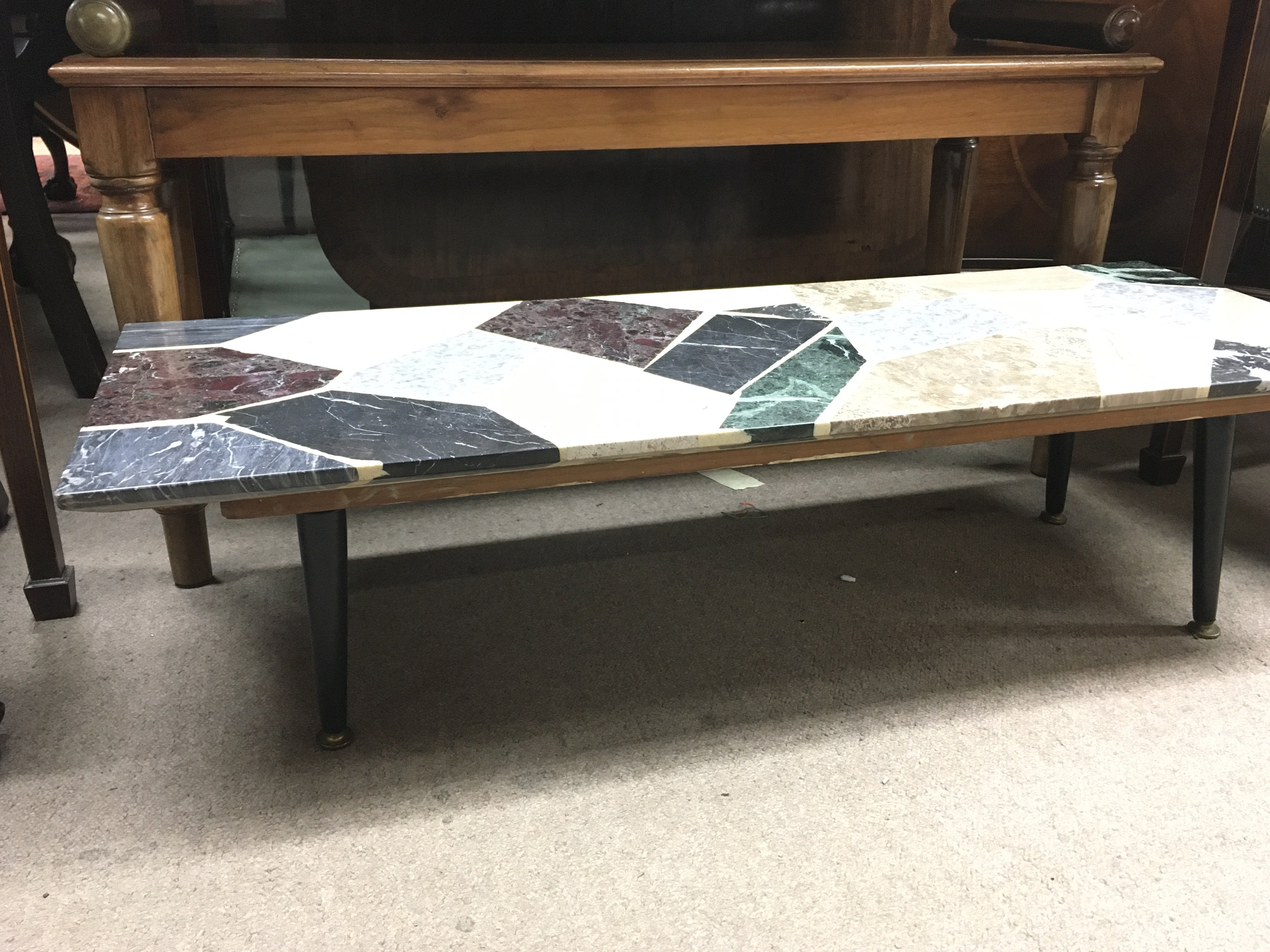 A marble top mid 20th century design coffee table. 105cm by 38cm