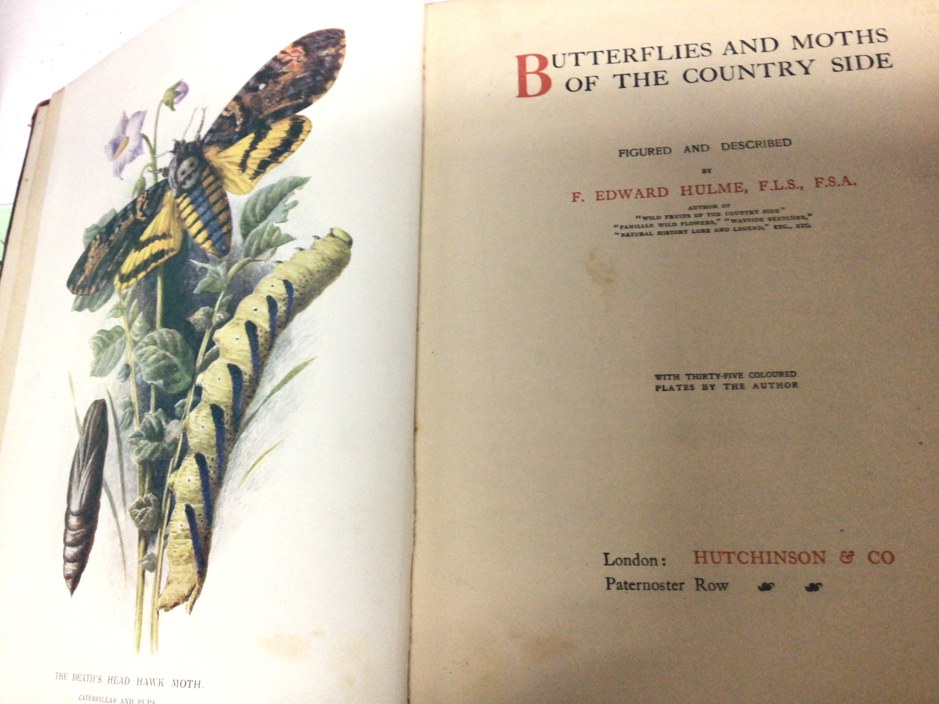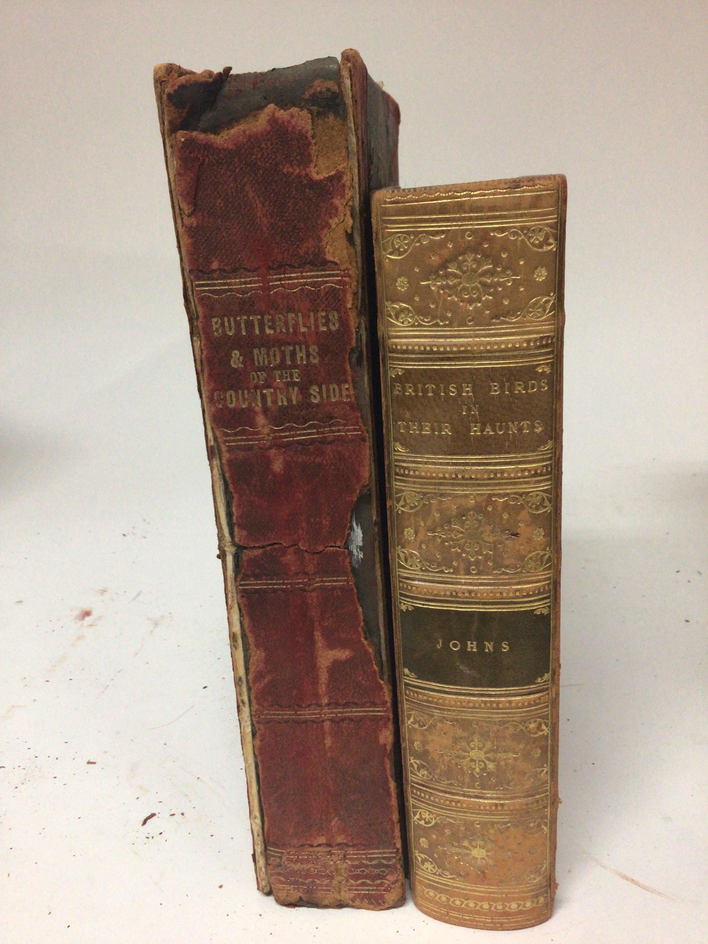 A leather bound book British Birds in there Haunts by the late Rev C Johns eighth edition with numerous coloured illustrations in good condition and Butterflies & Moths of the country side by F Edward Hulme with thirty five coloured plates (2)