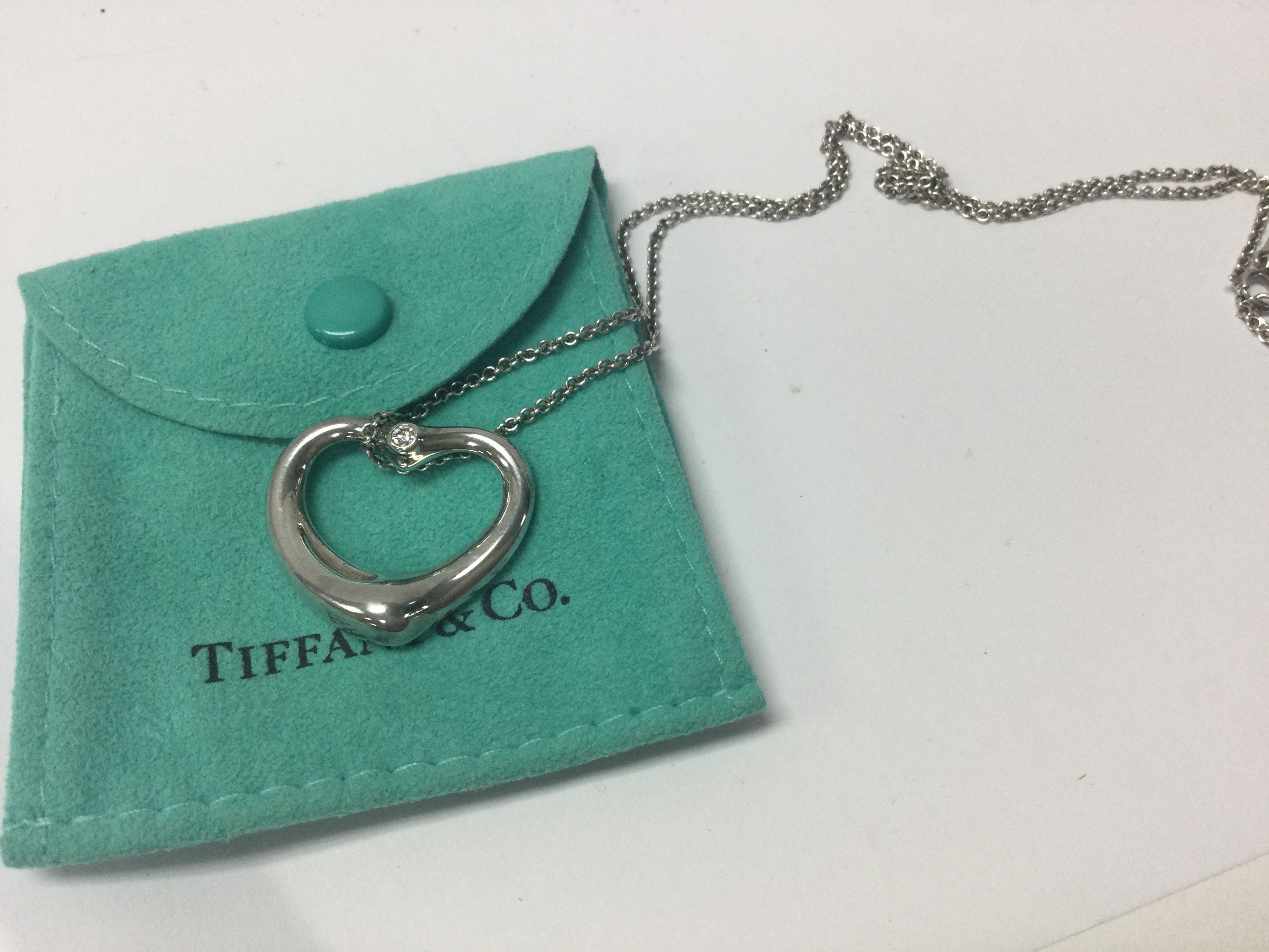 A silver Tiffany & Co pendant inset with a single diamond stone. Postage category A