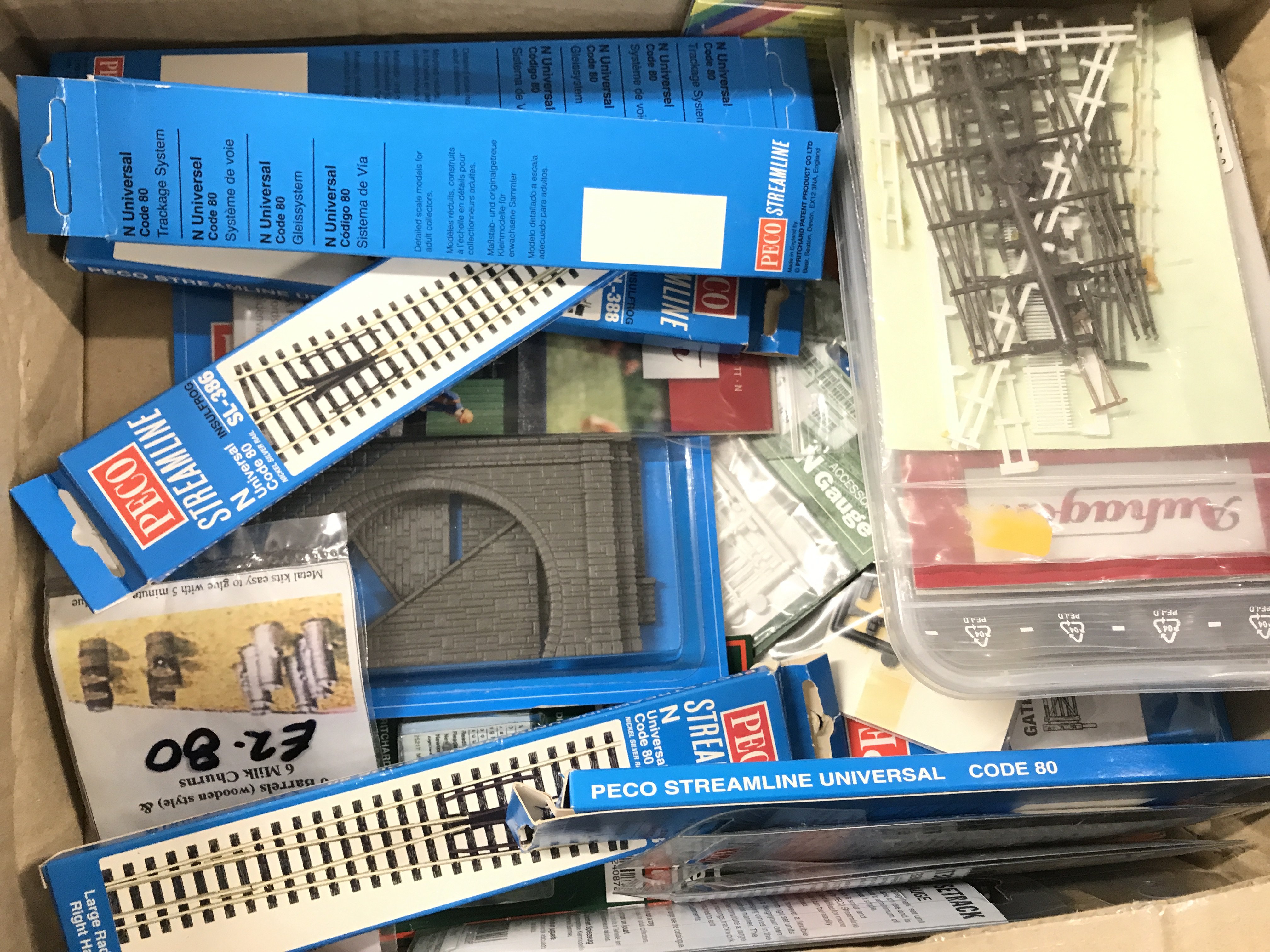 3 Boxes Containing N Gauge Track. Buildings. Etc. No Reserve.