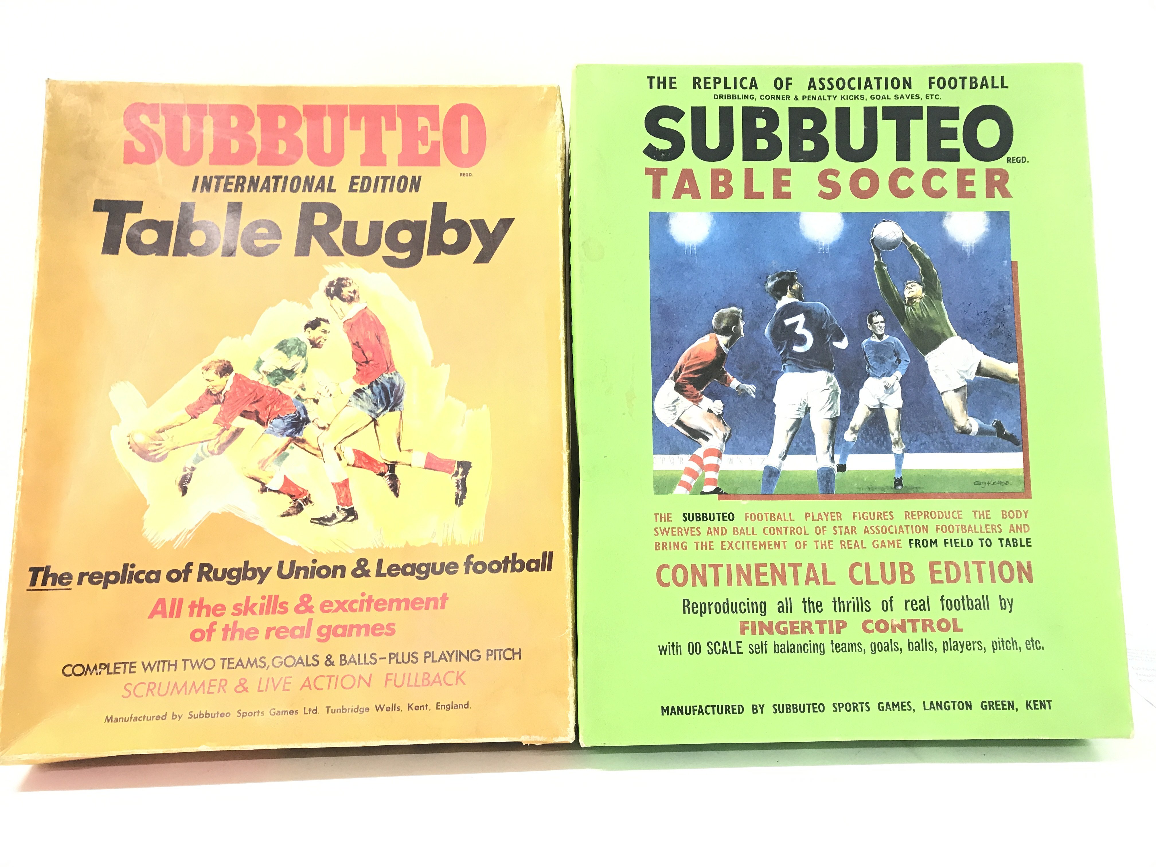 2 X Boxed Subbuteo Sets. A Table Rugby and Table Soccer with Extra Teams. No Reserve.