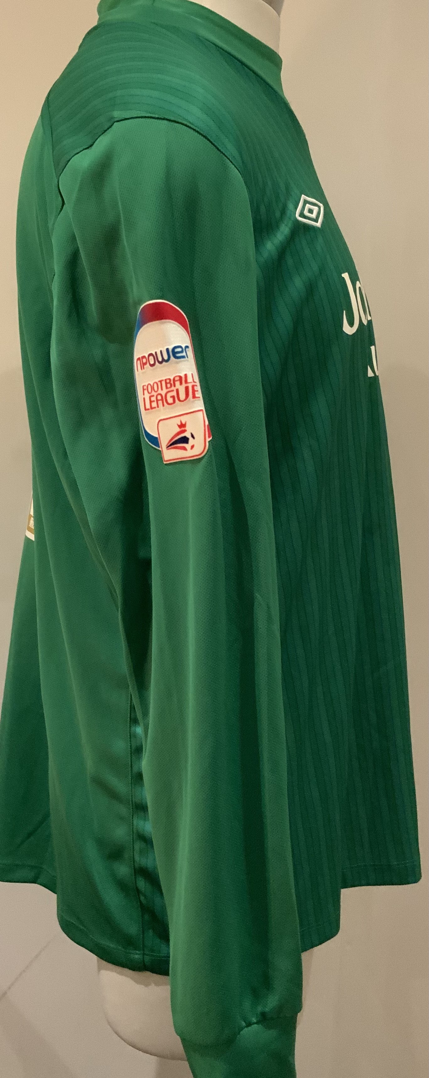 Nottingham Forest 2012 - 2013 Match Issued Football Shirt: Green long sleeve goalkeeper shirt with NPower League badge to sleeves. Camp 1 to rear. Shirt is unwashed.