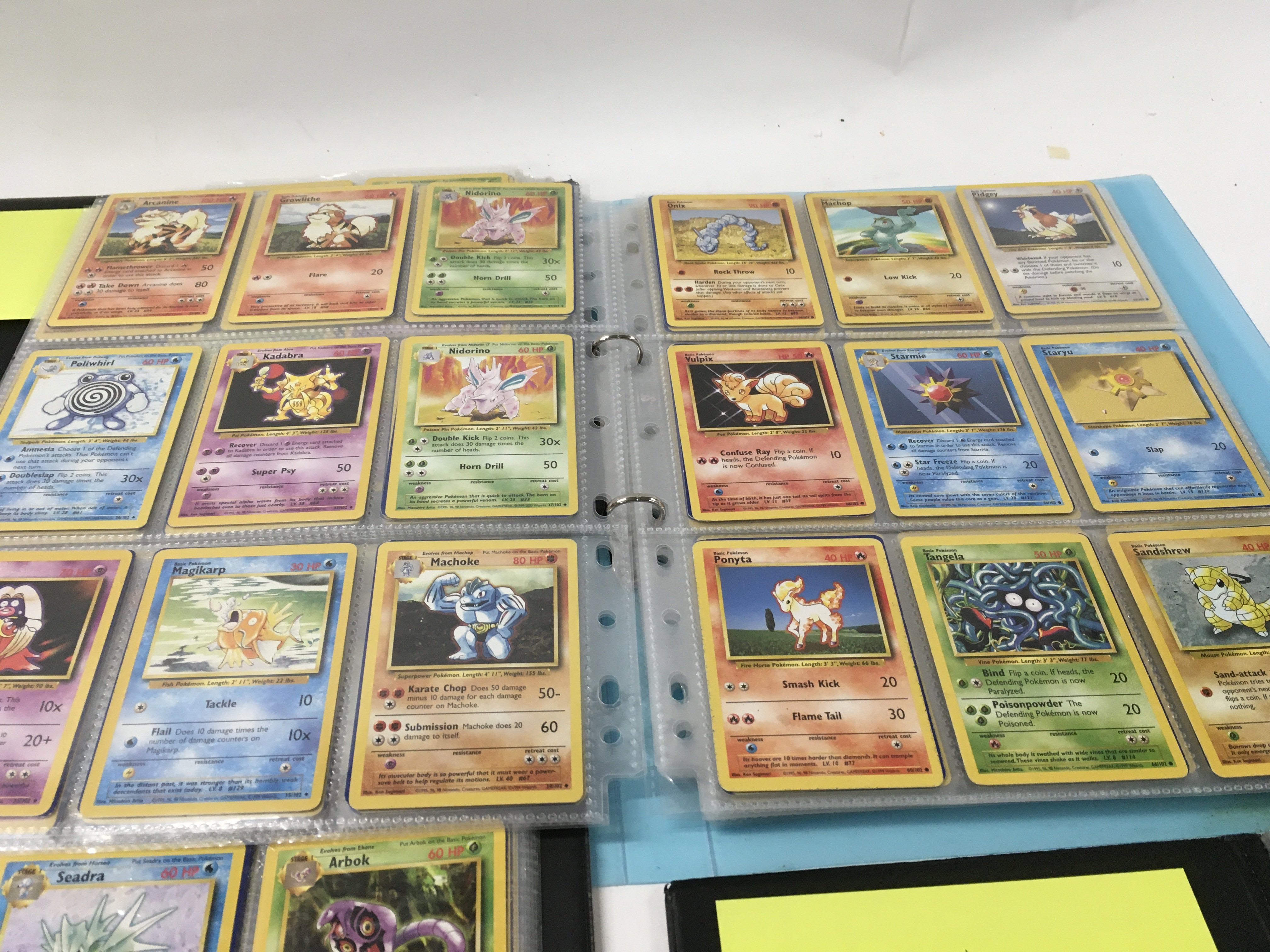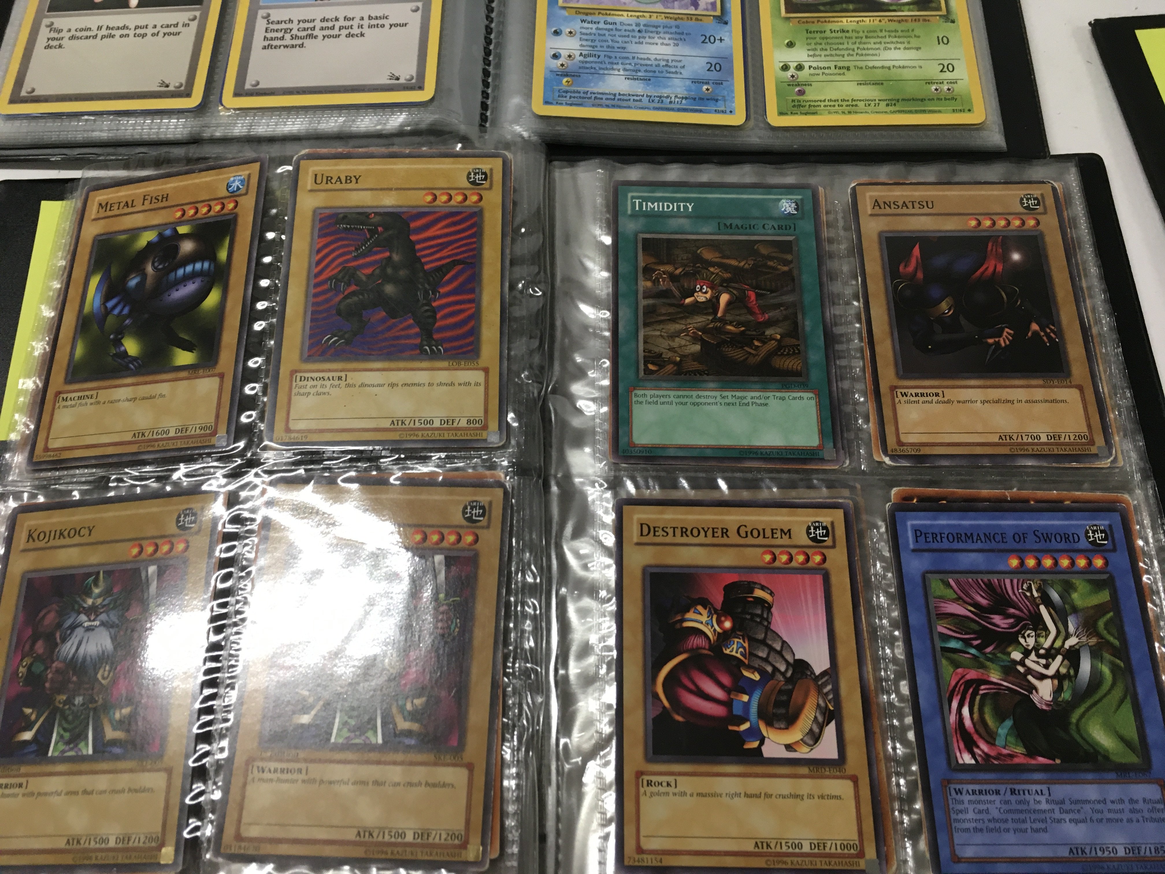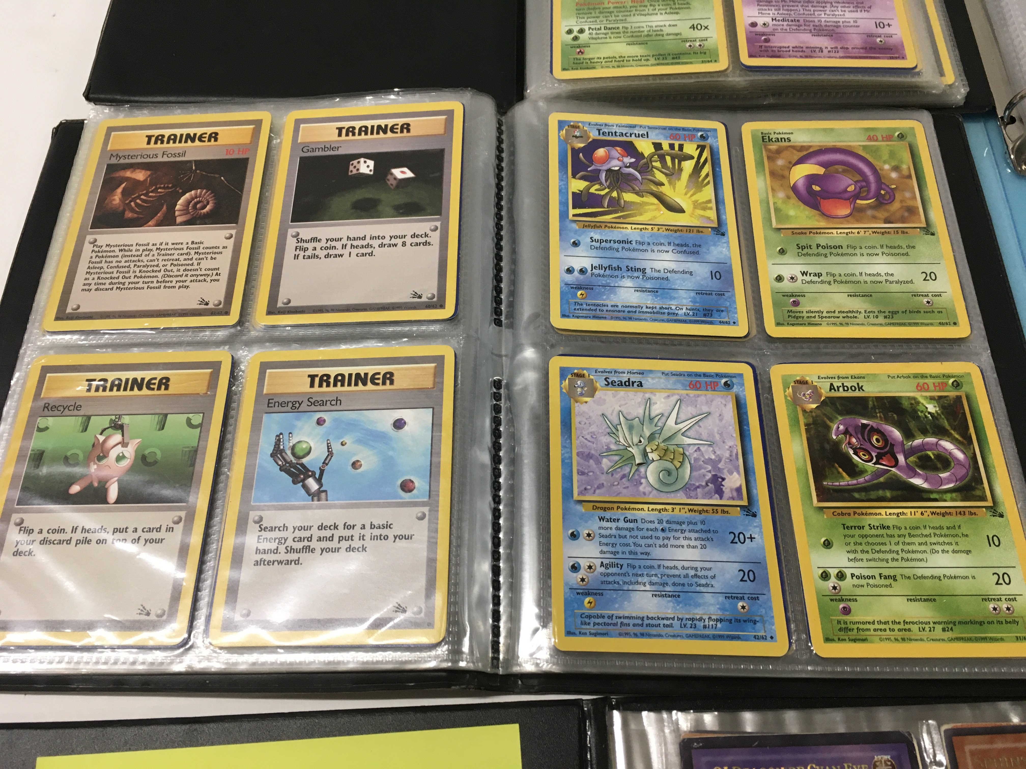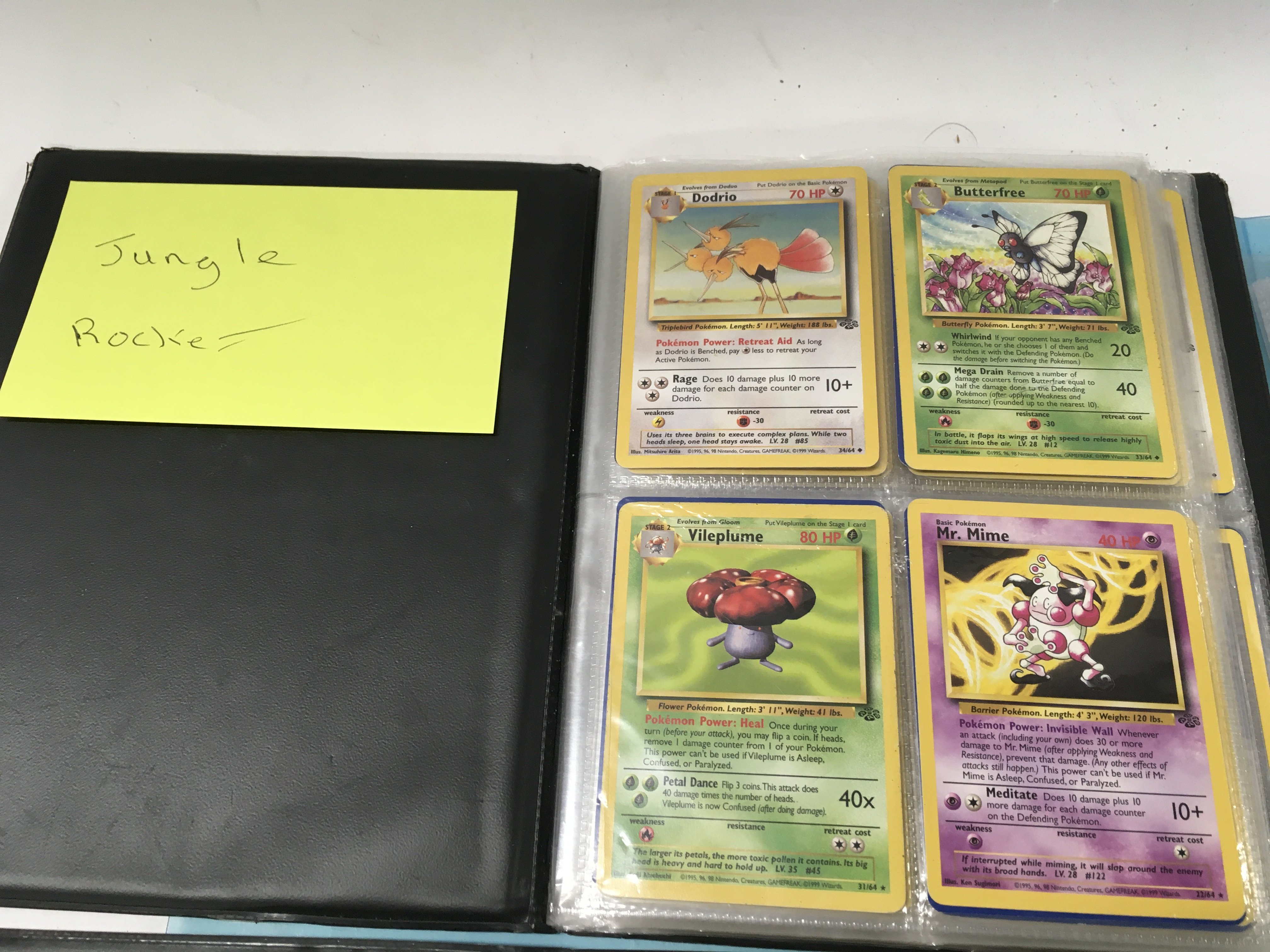 A collection of 5 albums containing Pokémon cards . album 1 contains Jungle Rocket.. album 2 contains Fossil.. album 3 contains YU G Oh cards..album 4 contains original base set.. album 5 has 15 pages holding approximately 270 cards.