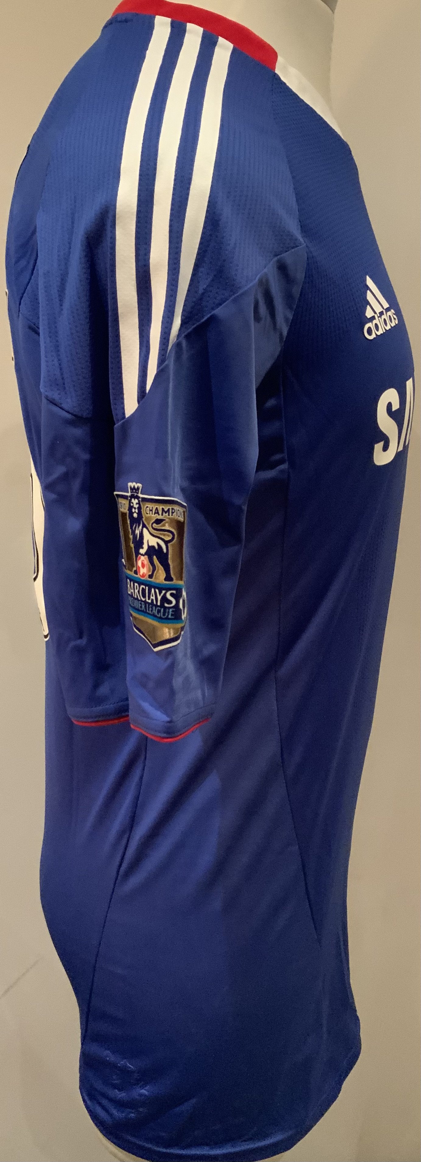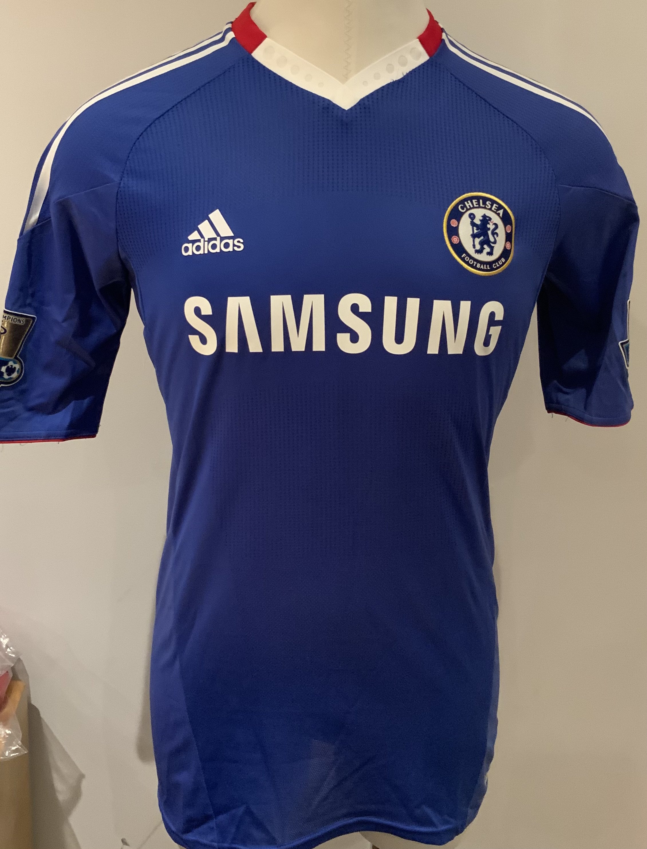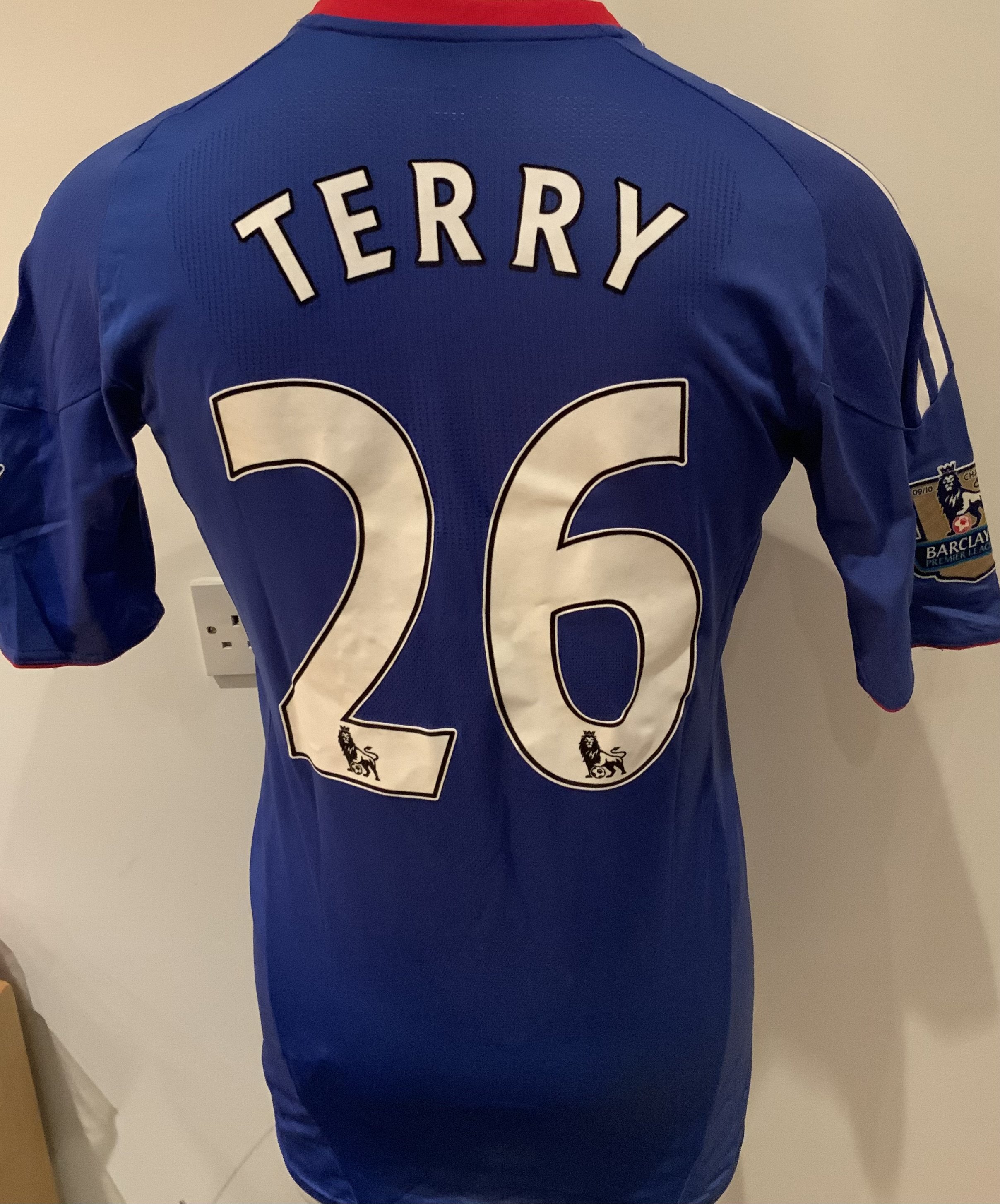 Chelsea 2010 - 2011 Match Worn Football Shirt: Blue short sleeve shirt with Gold Premier League Champions badges to sleeves. Terry 26 to rear. Worn v Tottenham on 12 December 2010.