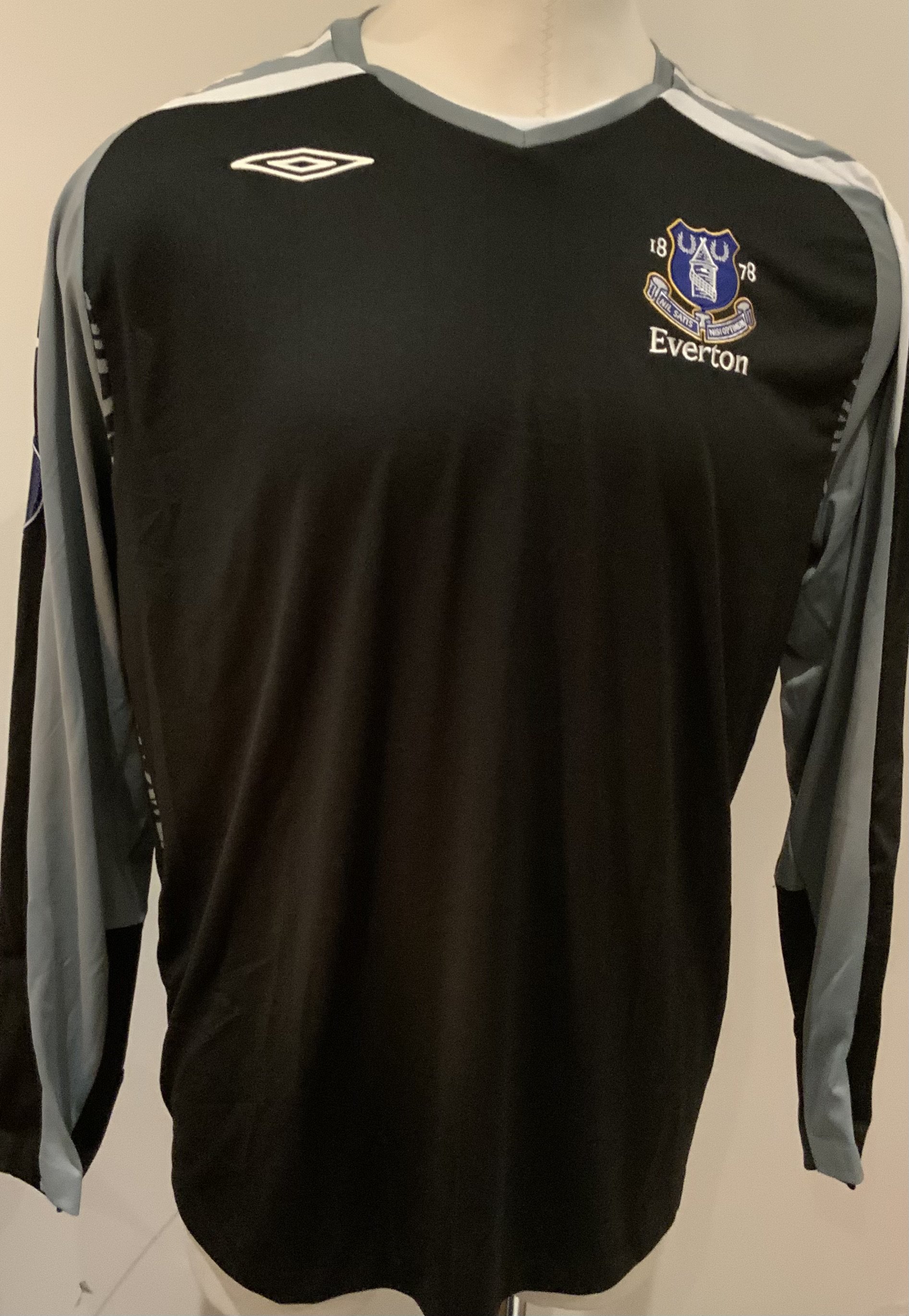 Everton 2007 - 2008 Match Issued Football Shirt: Black long sleeve goalkeeper shirt with UEFA badge to sleeves. Wessels 33 to rear. Issued v SK Brann in the Europa League when player was an unused substitute.