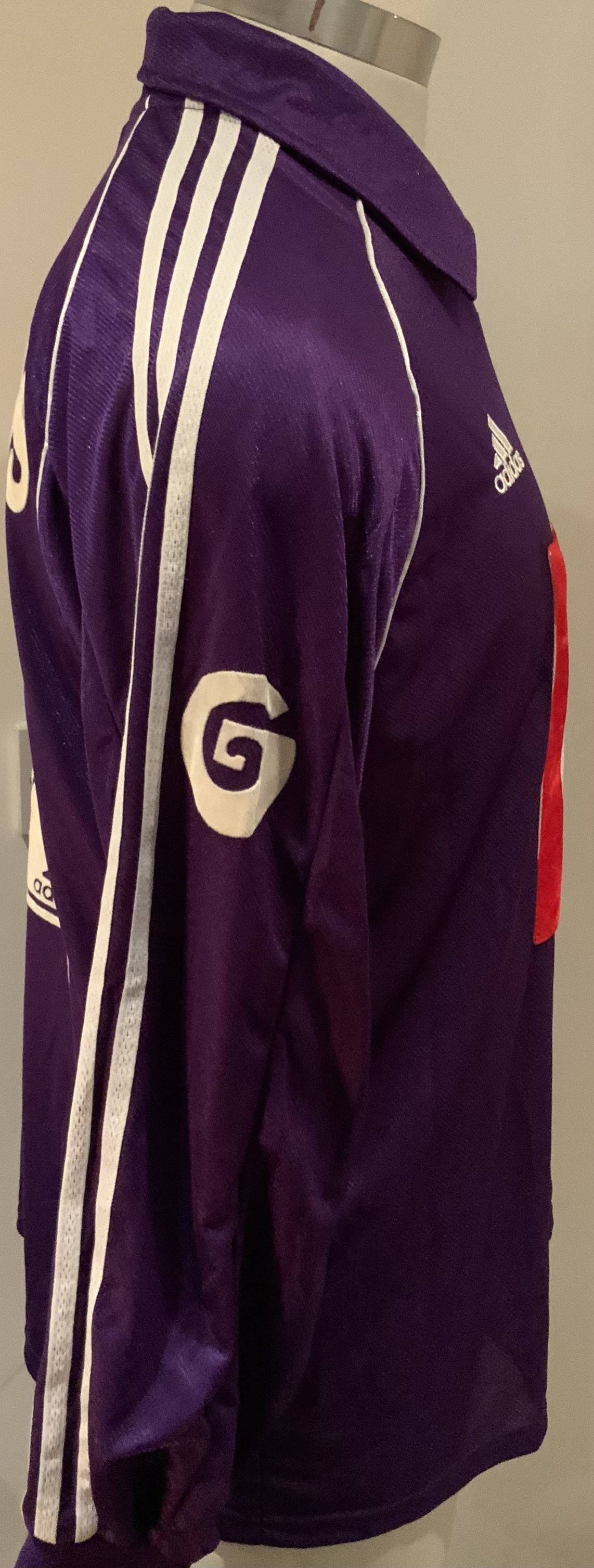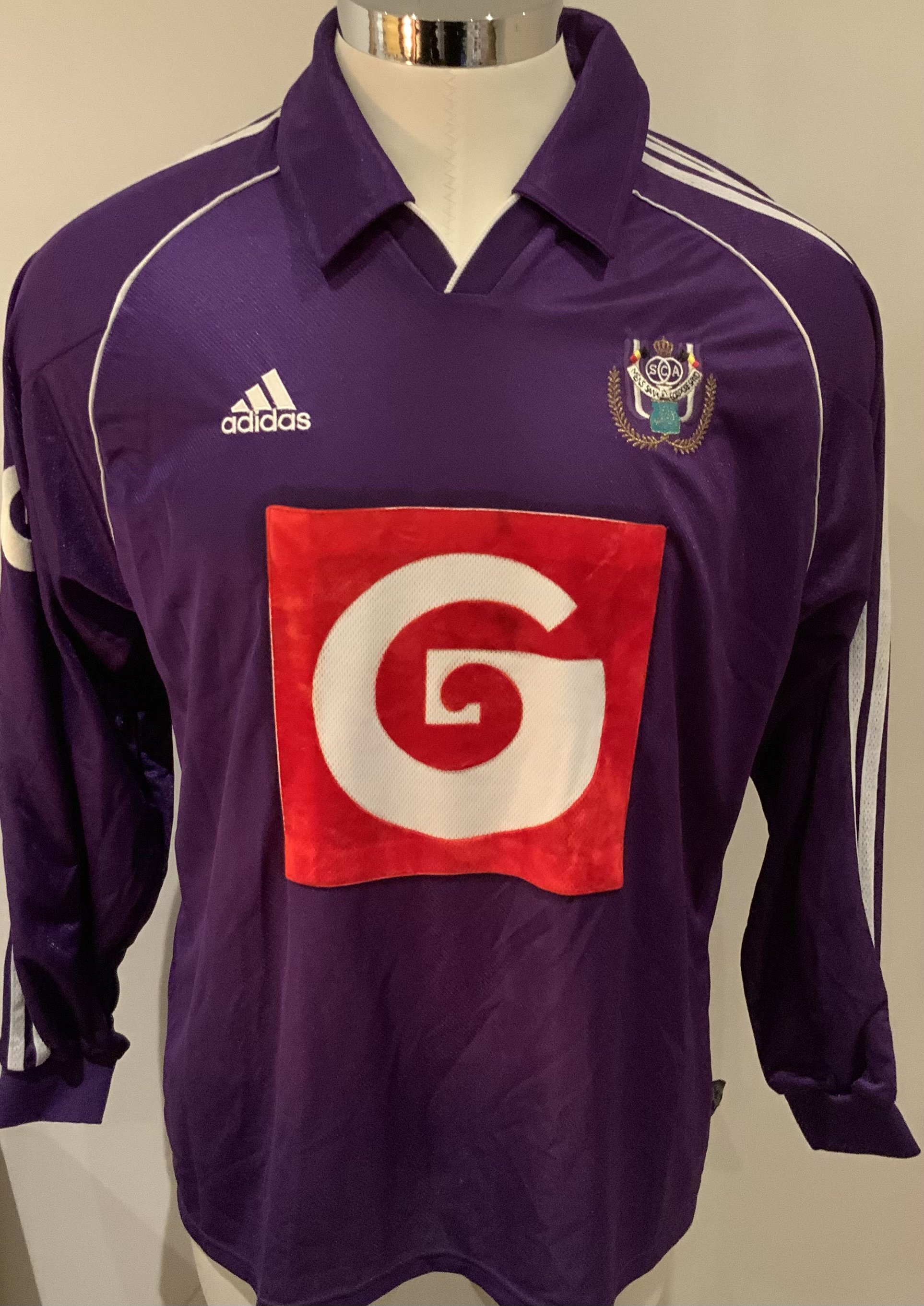 Anderlecht 1999 - 2000 Away Match Worn Football Shirt: Purple long sleeve Adidas shirt with Kounenakis 32 to rear. Anderlecht were champions this season.