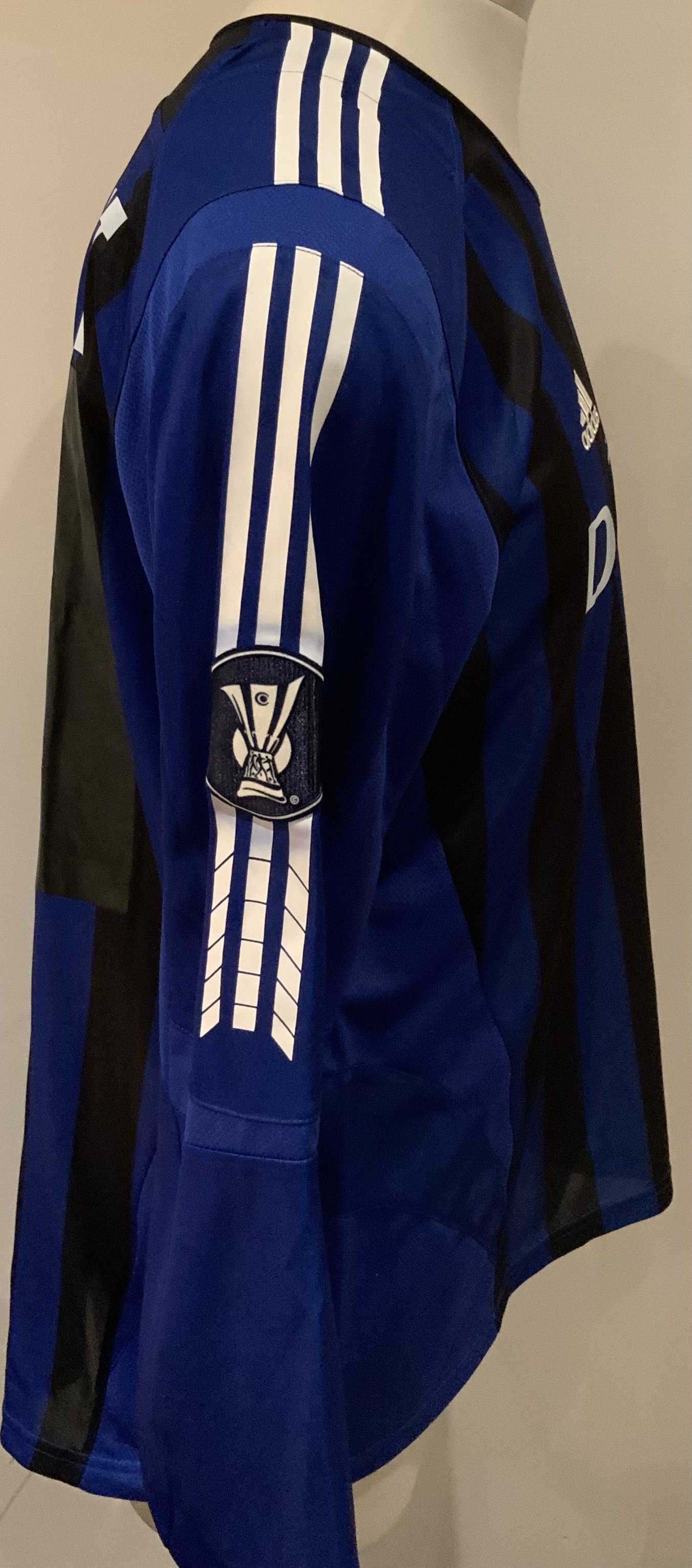 Club Bruges 2006 - 2007 Match Worn Football Shirt: Blue and black long sleeve shirt with Europa badge to sleeve. Vermant 3 to rear. Worn v Tottenham in the Europa League on 2 November 2006.
