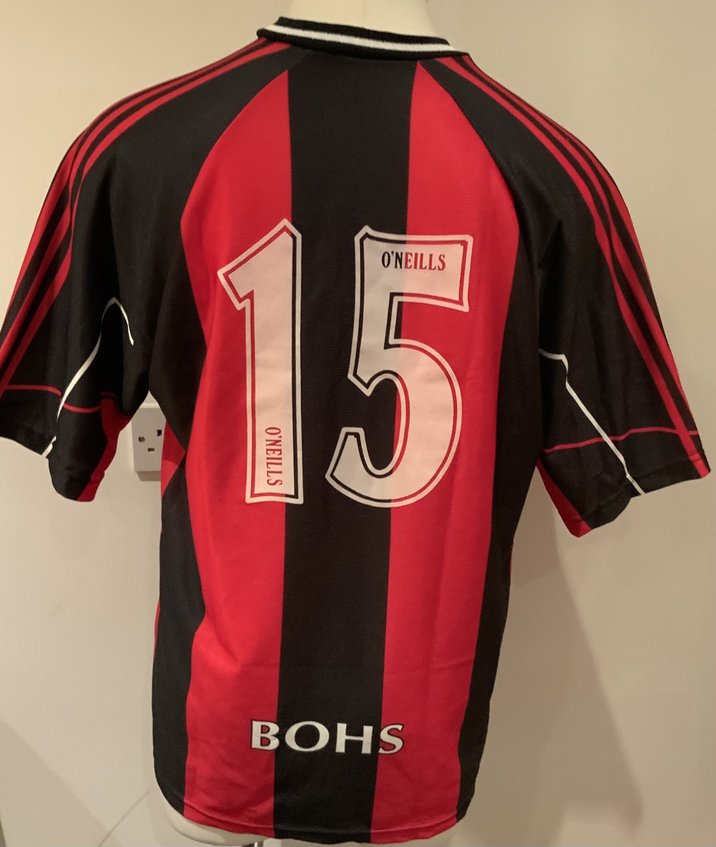 Bohemians 2003 Match Issued Football Shirt: Red and black short sleeve shirt with number 15 to rear. Issued for the friendly v Tottenham on 4 March 2003. Bohemians won 3-1.
