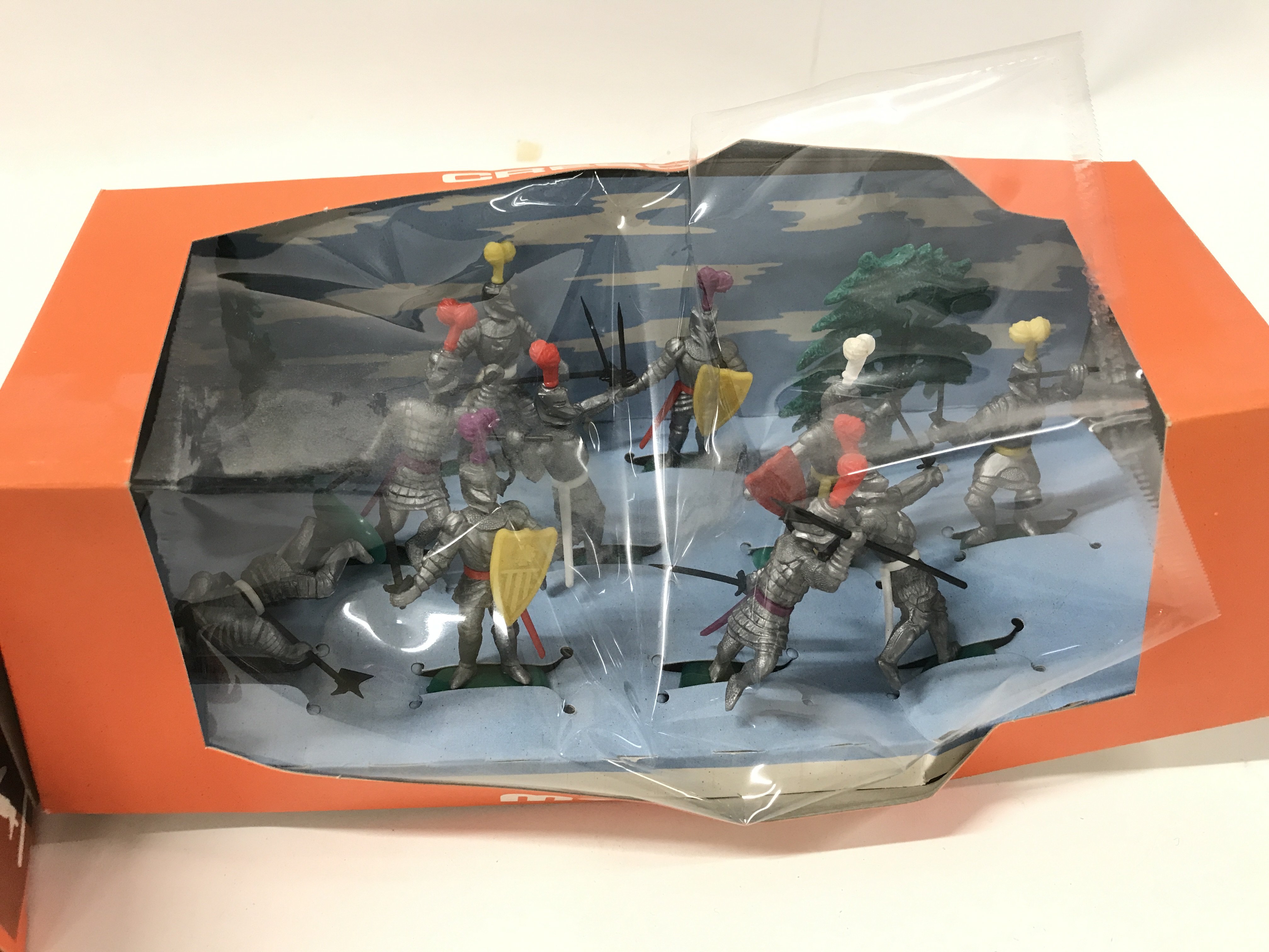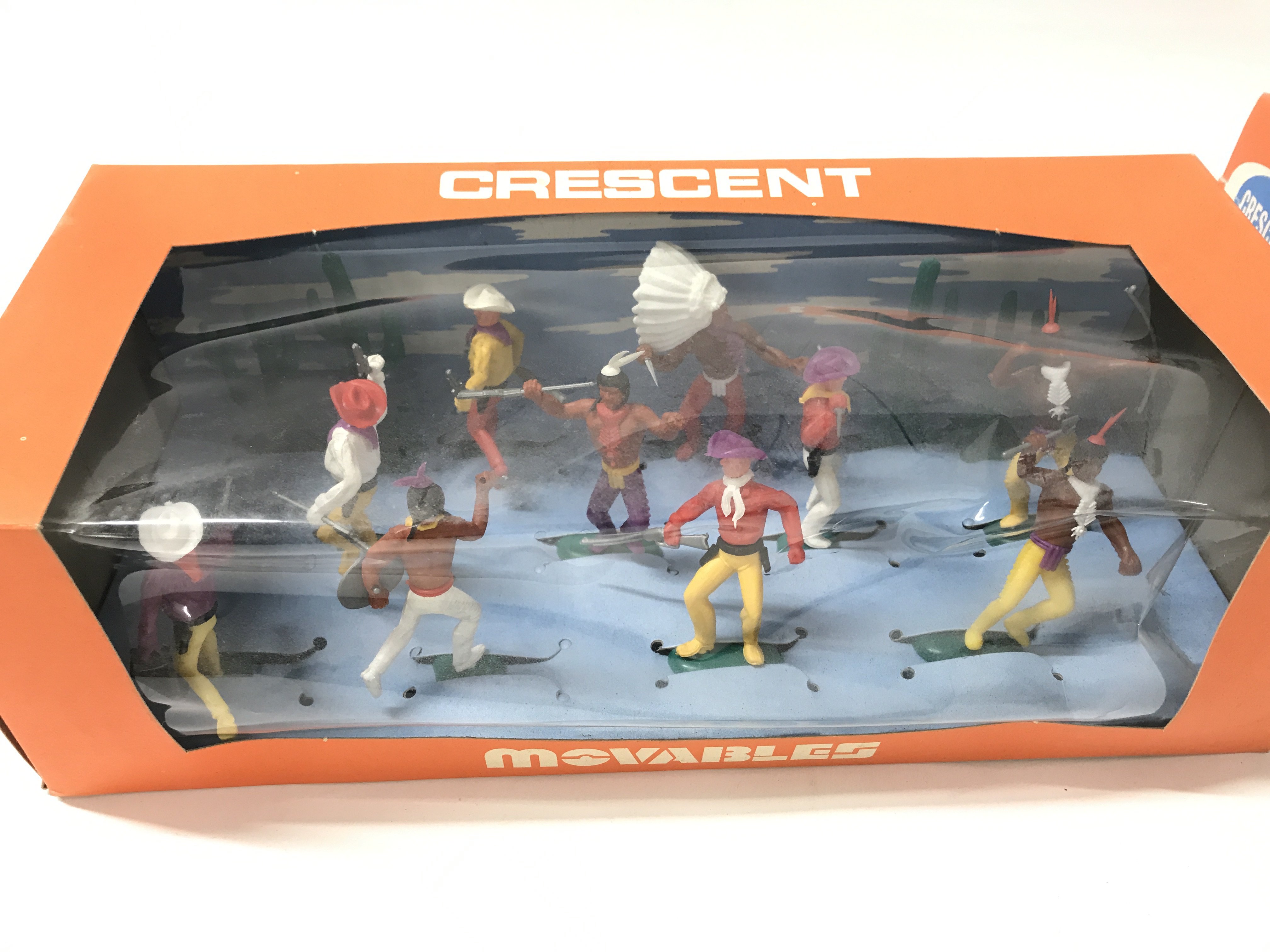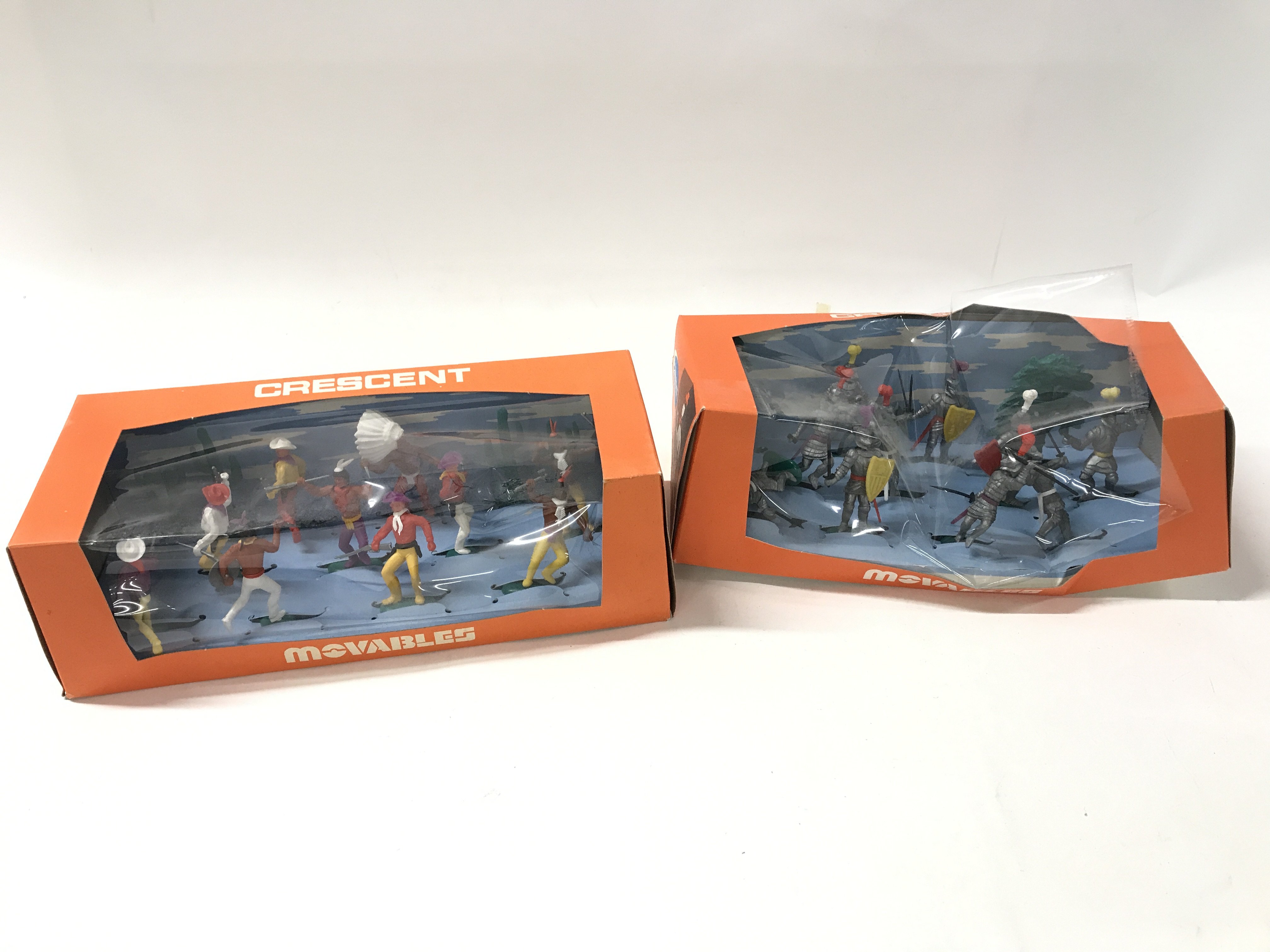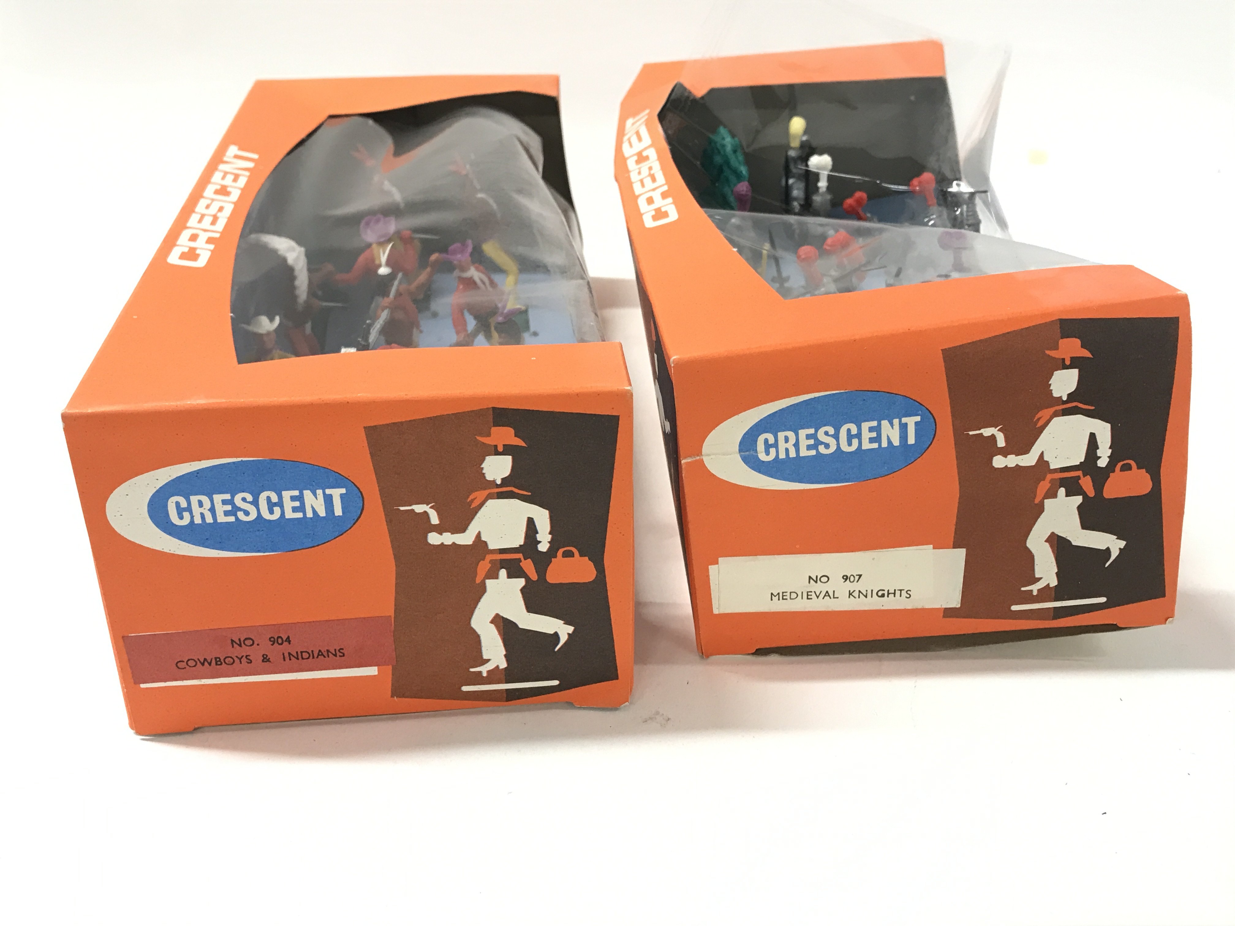 A box of crescent cowboys and Indians and a box of medieval knights (box is damaged) No reserve.