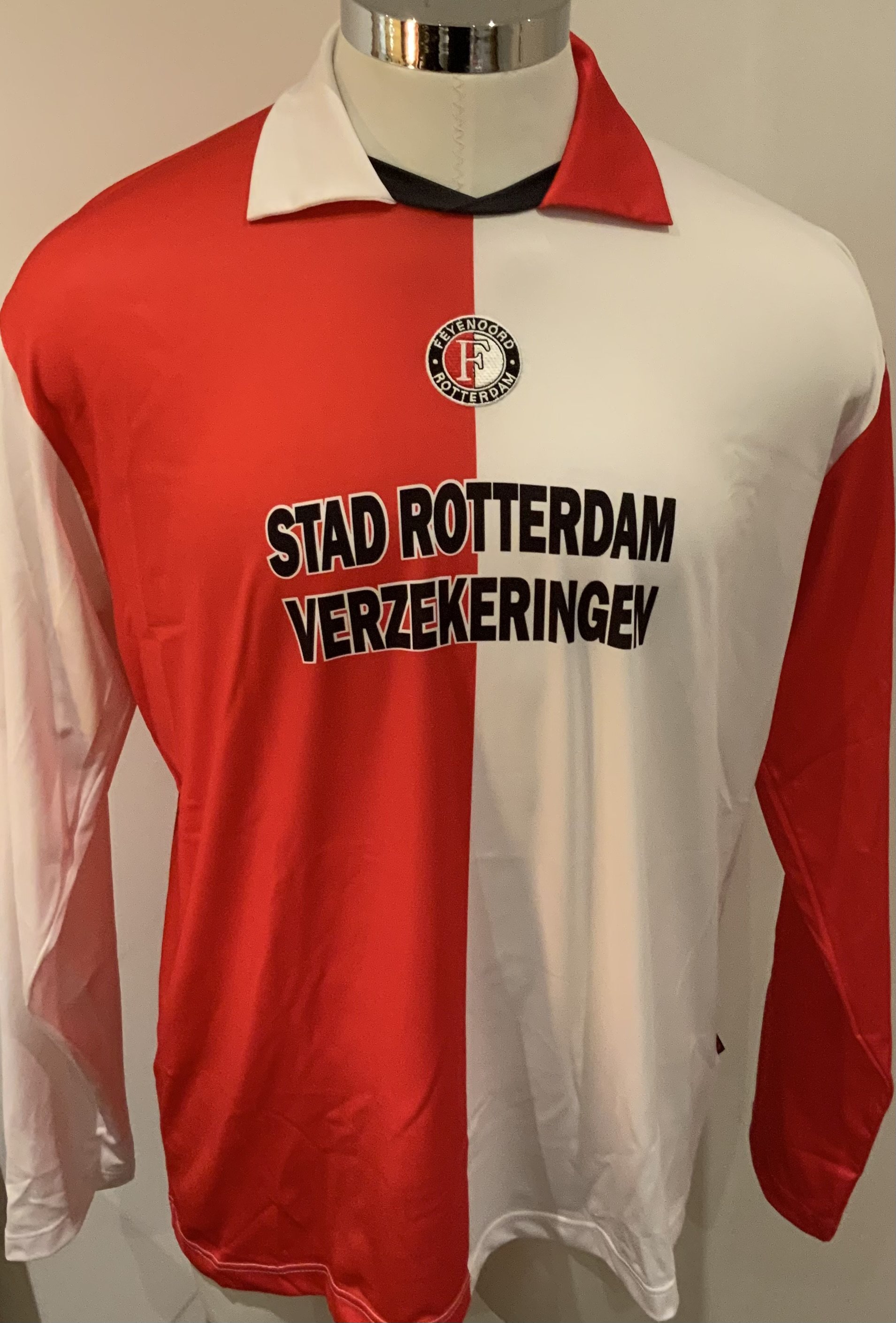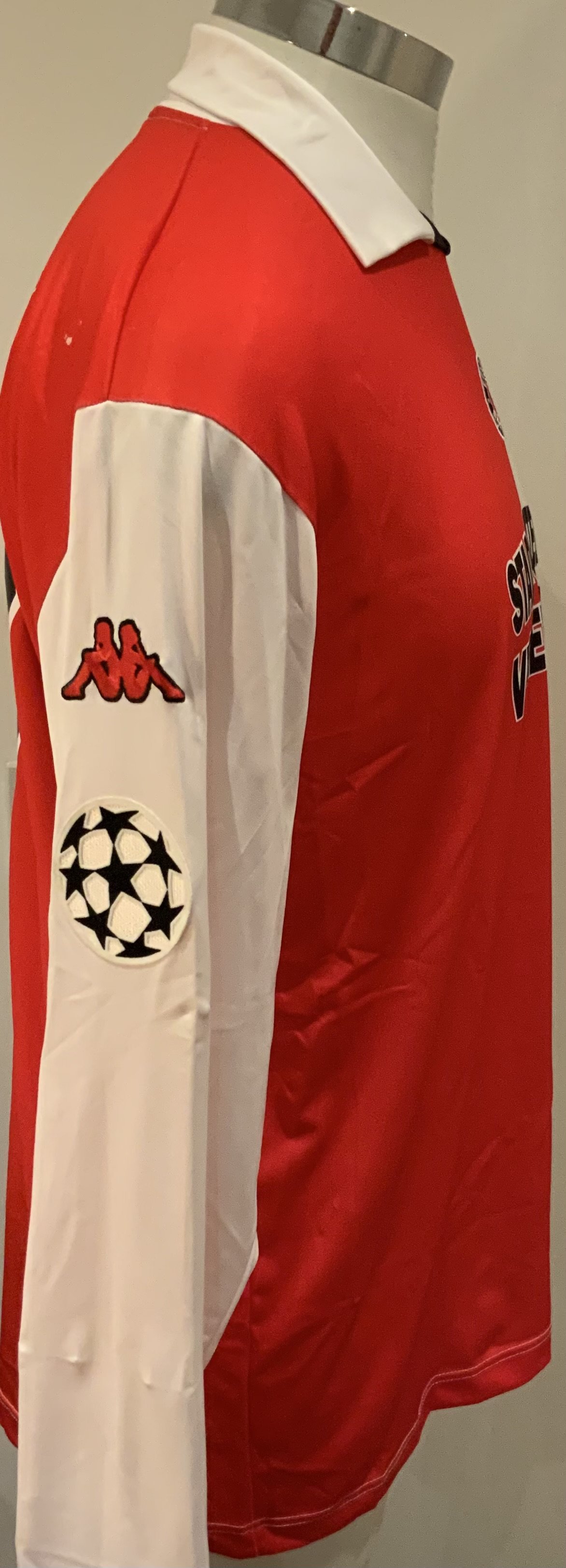 Feyenoord 2001 - 2002 Match Worn Football Shirt: Red and white long sleeve shirt with Champions League badge to sleeve. Loovens 27 to rear. Worn in the campaign group stage.