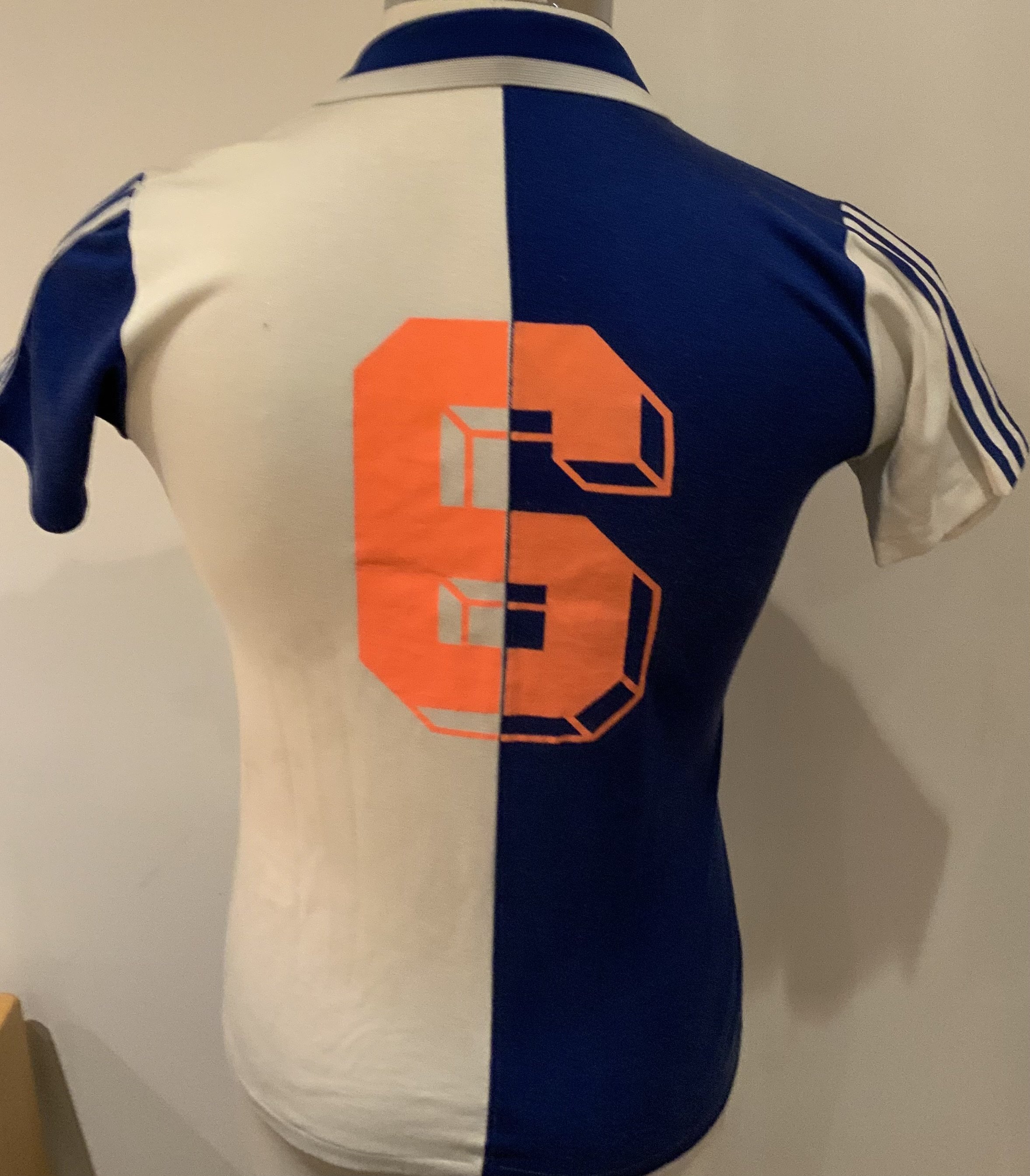 Grasshopper Zurich 1982 - 1983 Match Worn Football Shirt: Blue and white short sleeve shirt with number 6 to rear. Zurich won the championship this season.