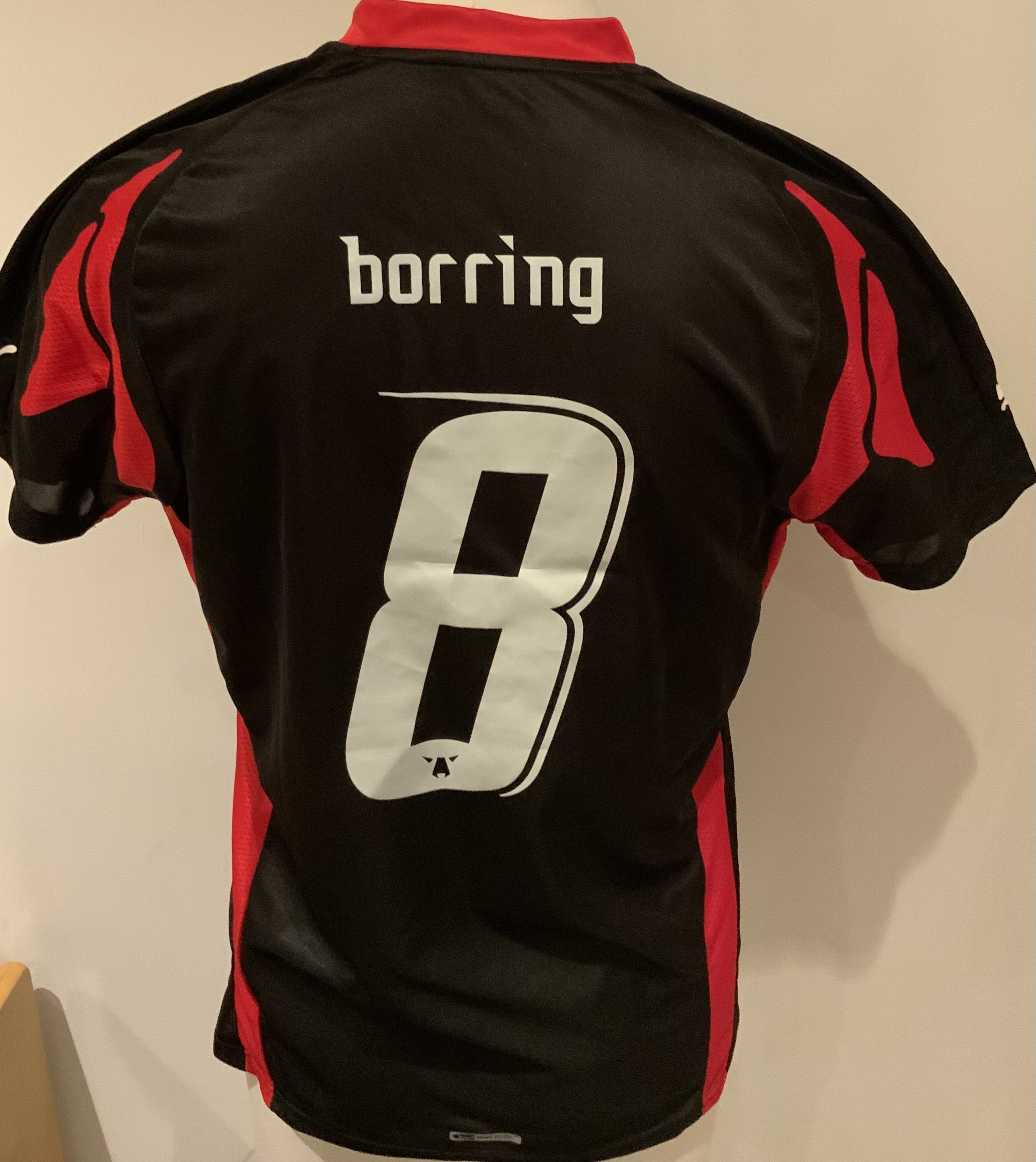 Midtjylland 2008 - 2009 Match Worn Football Shirt: Black short sleeve shirt with Borring 8 to rear. Worn during the season. No shirt badges were used during the season.