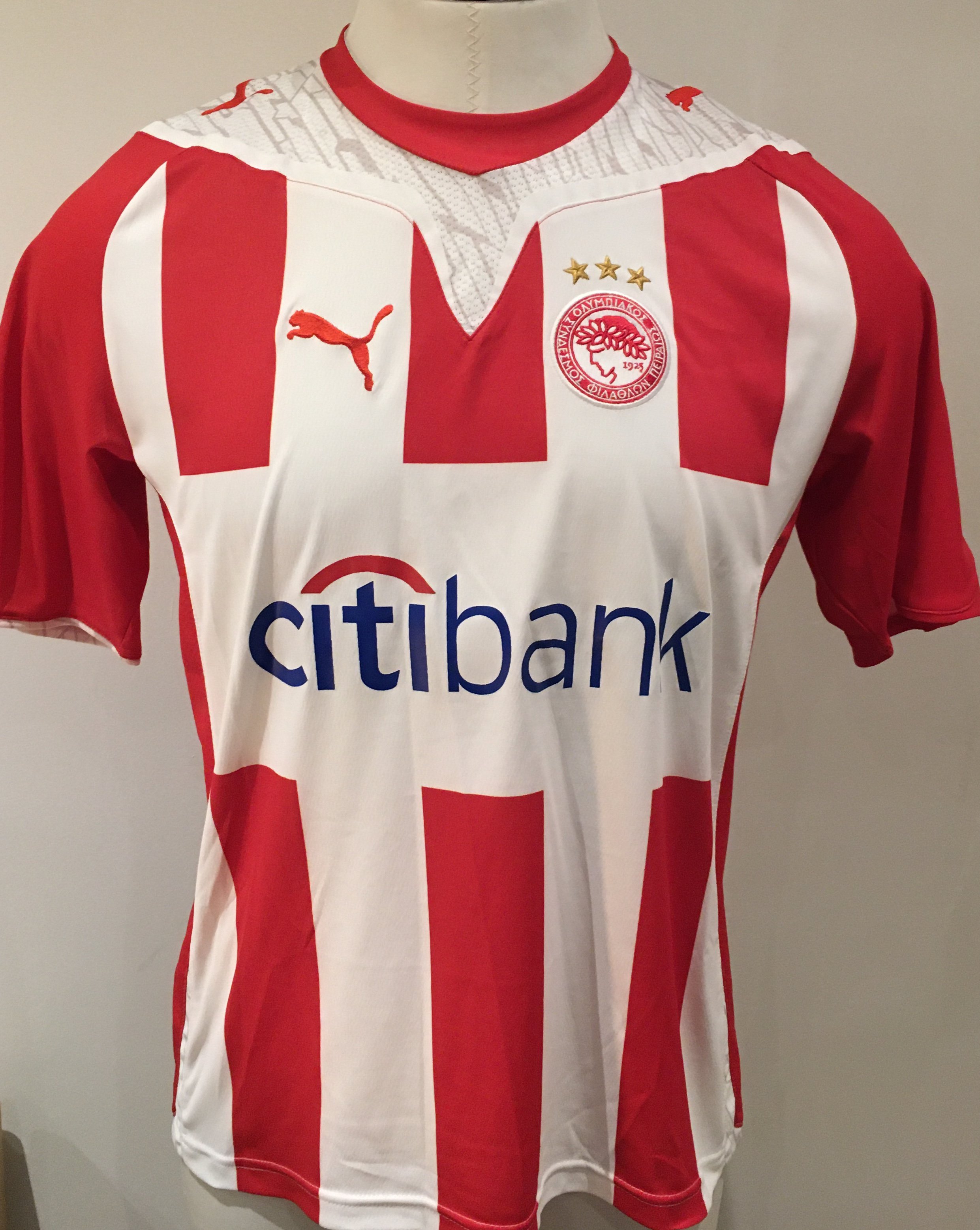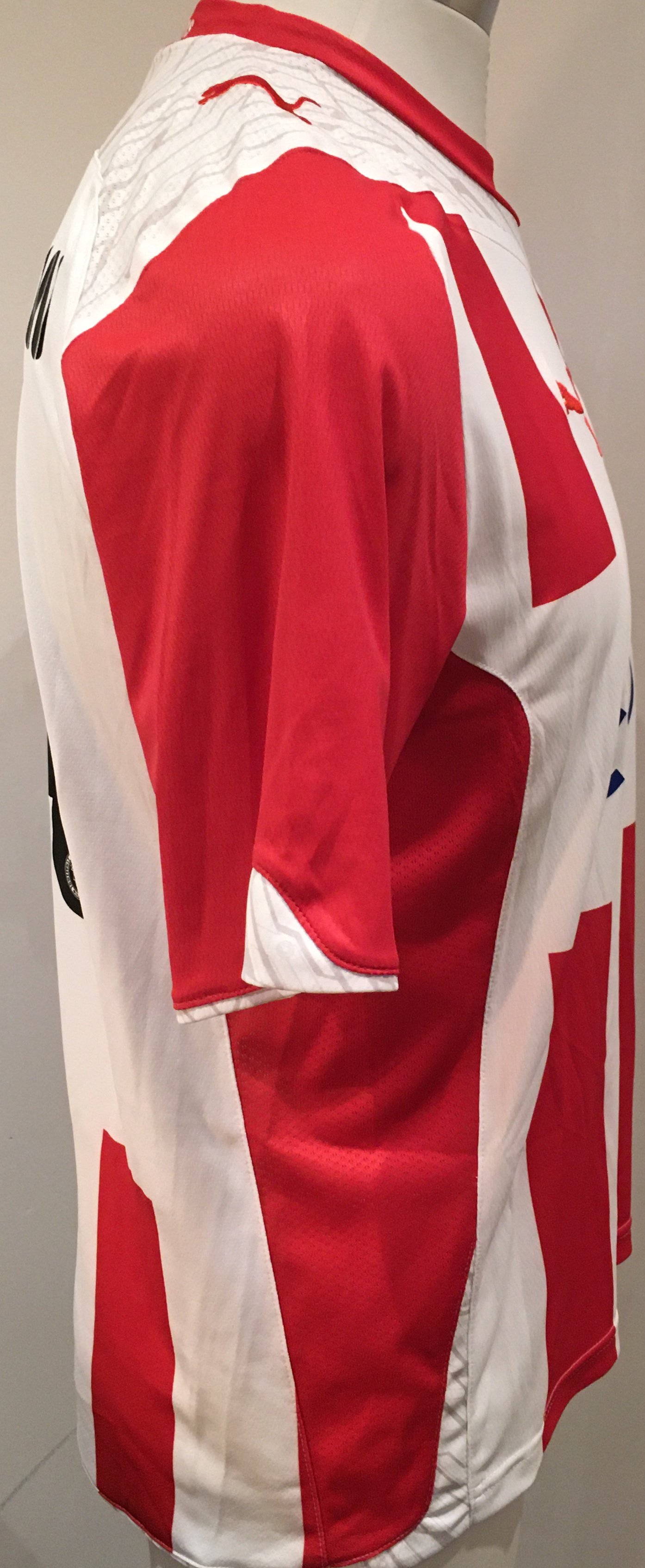 Olympiakos 2009 - 2010 Match Worn Football Shirt: Red and white short sleeve shirt with Zewlakow 14 to rear. Worn v Tottenham on 9 August 2009 in a friendly match.