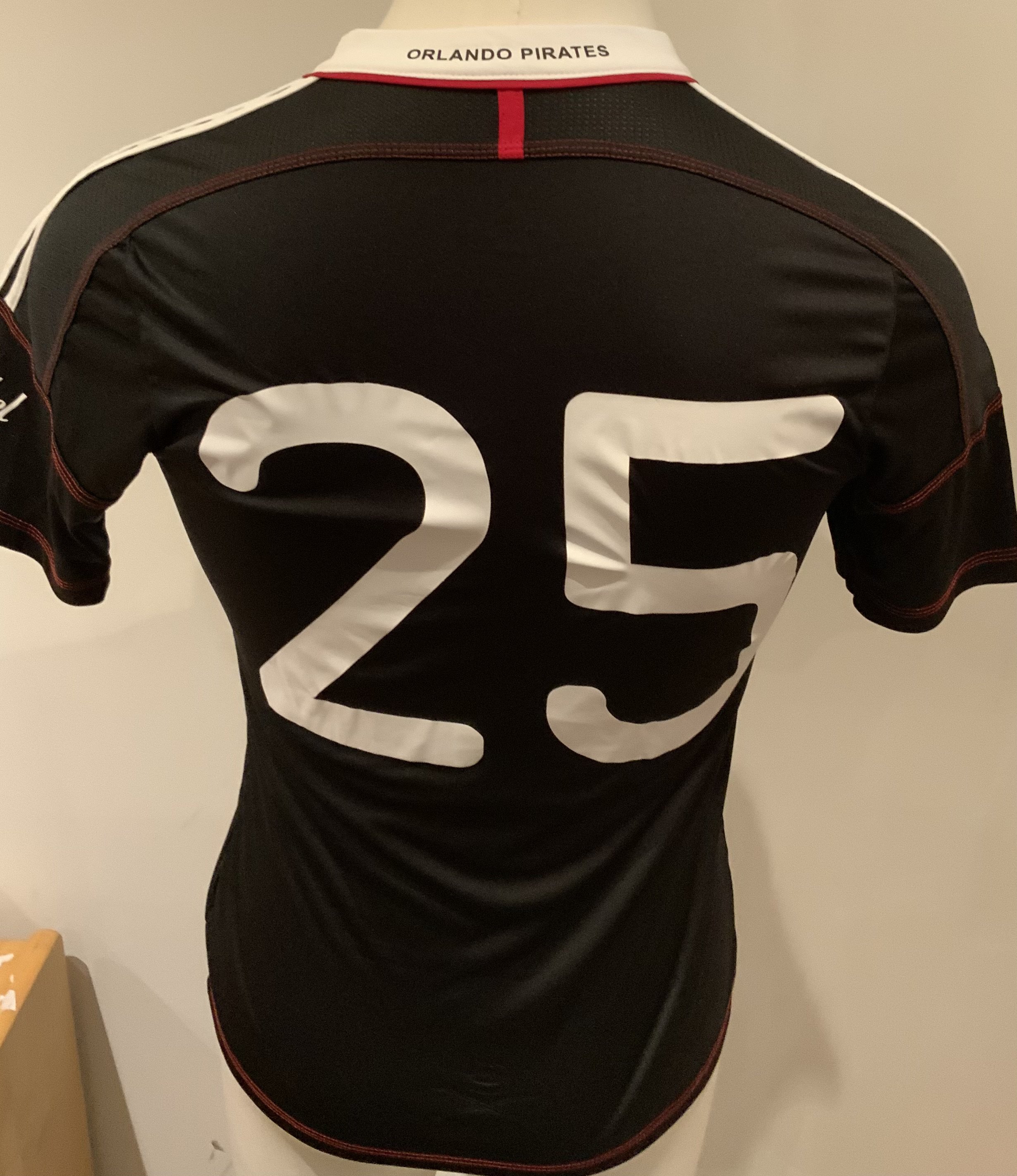 Orlando Pirates 2011 Match Worn Football Shirt: Black short sleeve shirt with number 25 to rear. Worn by Rudolf Bester v Tottenham on 23 July 2011 in the Vodacom Challenge Cup final.